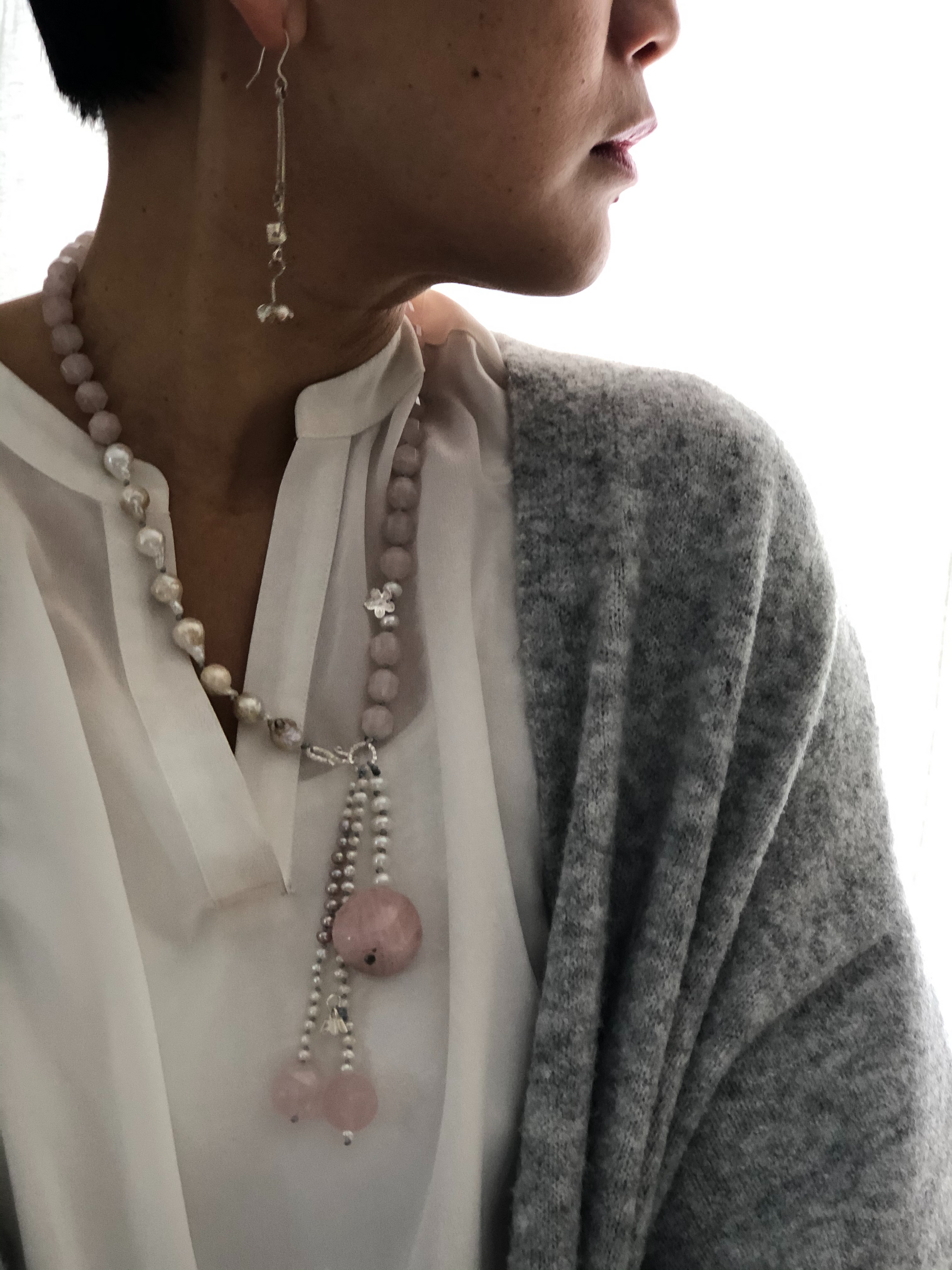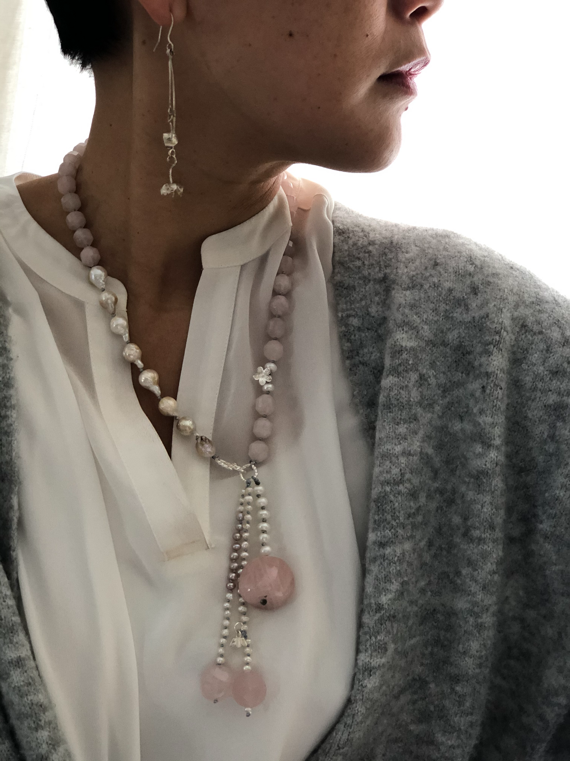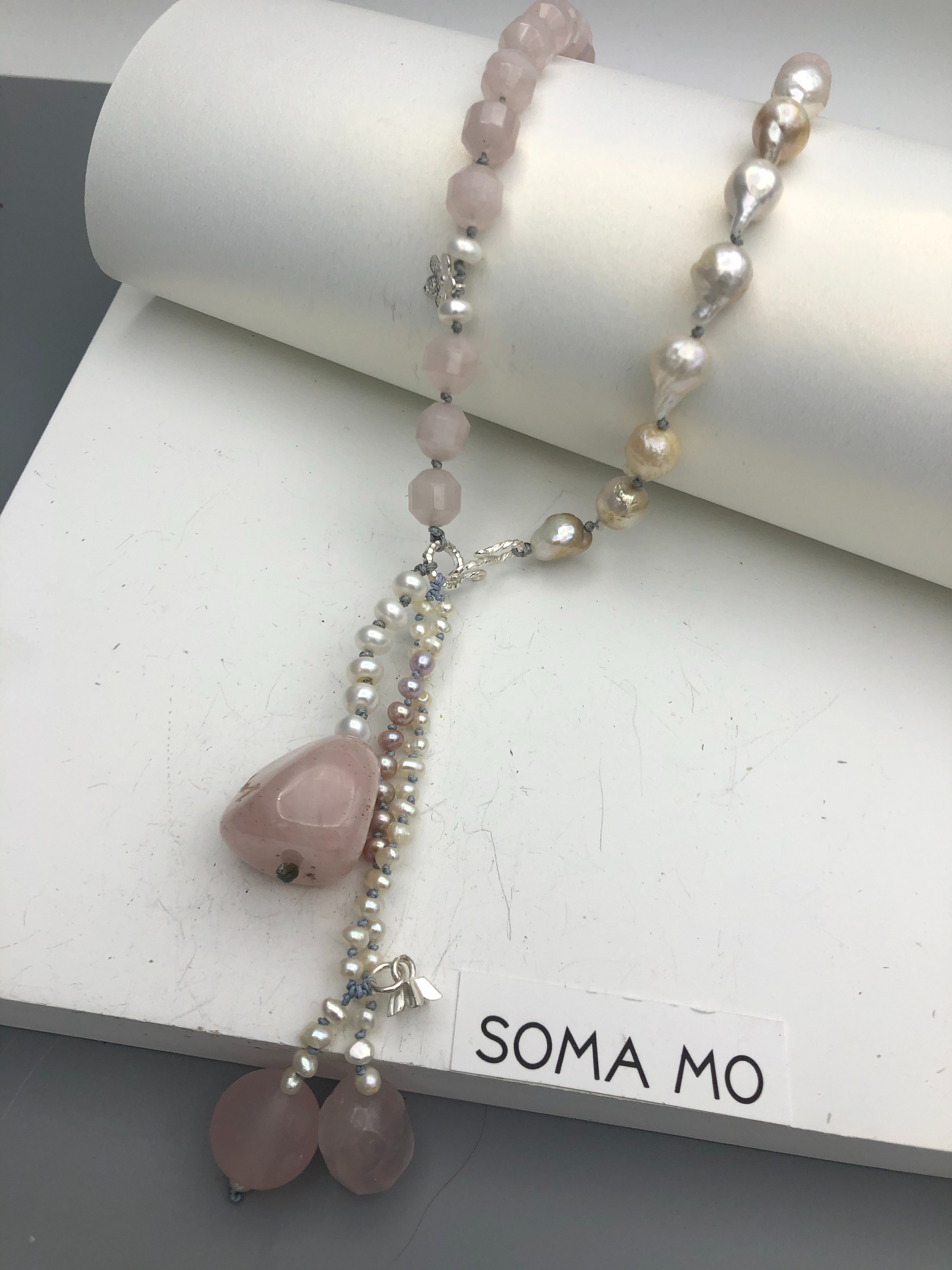 Very gentle pink rose quartz. Hand knotted between each beads, can be resized for special request.