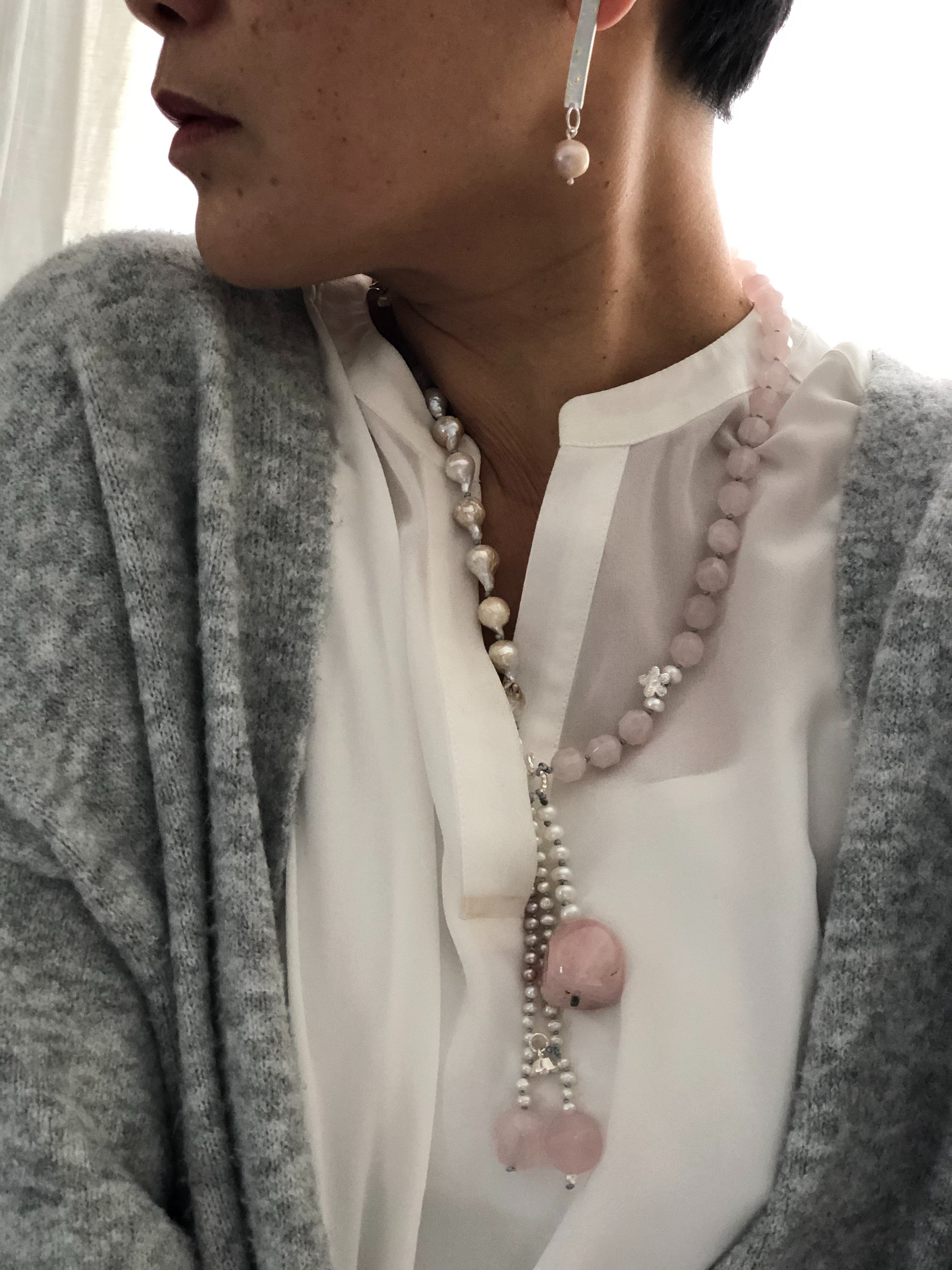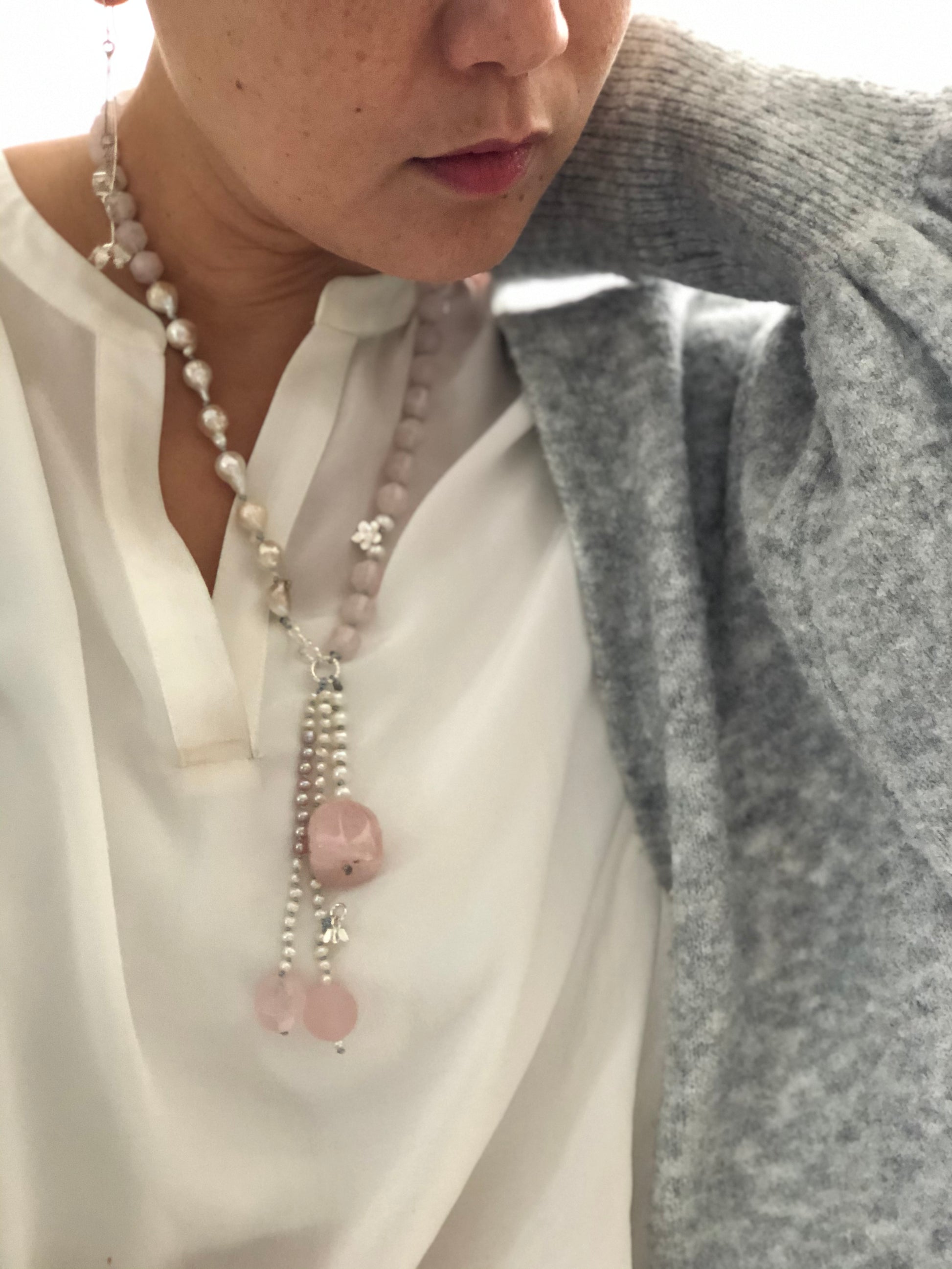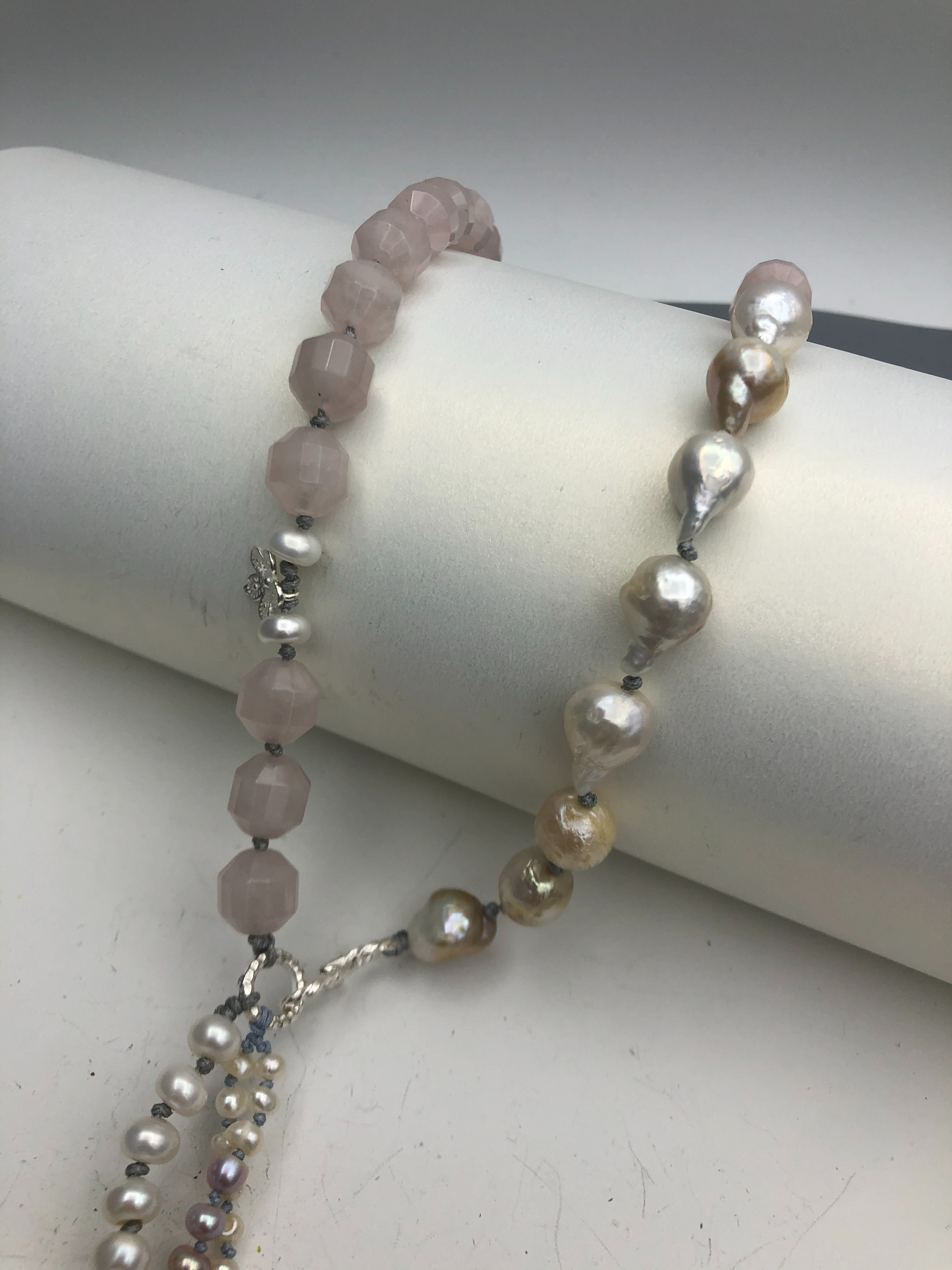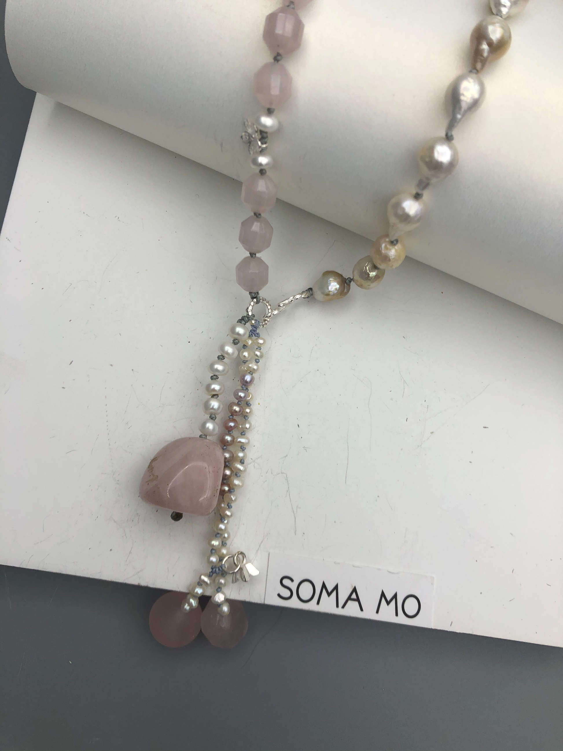 Very gentle pink rose quartz. Hand knotted between each beads, can be resized for special request.