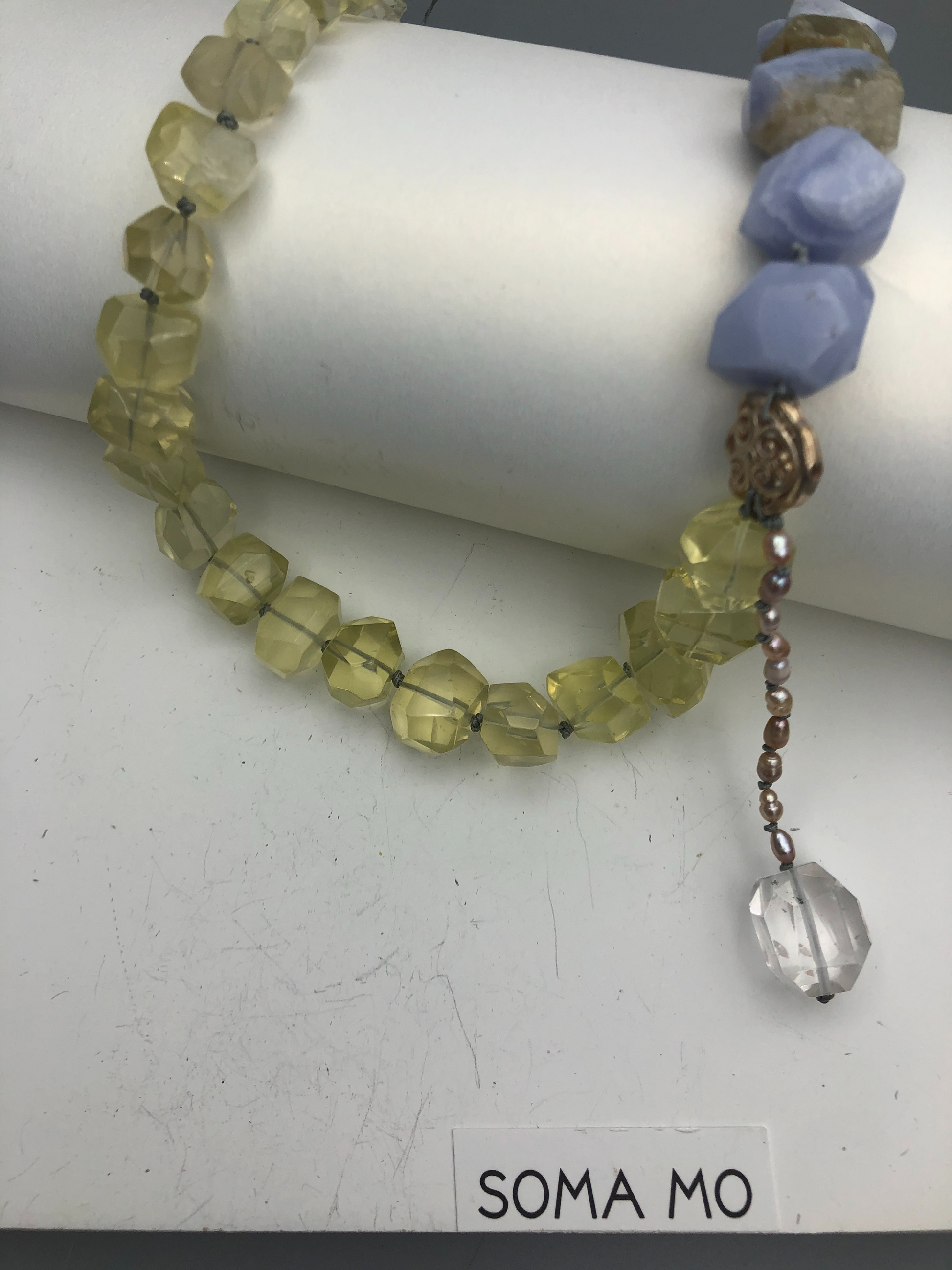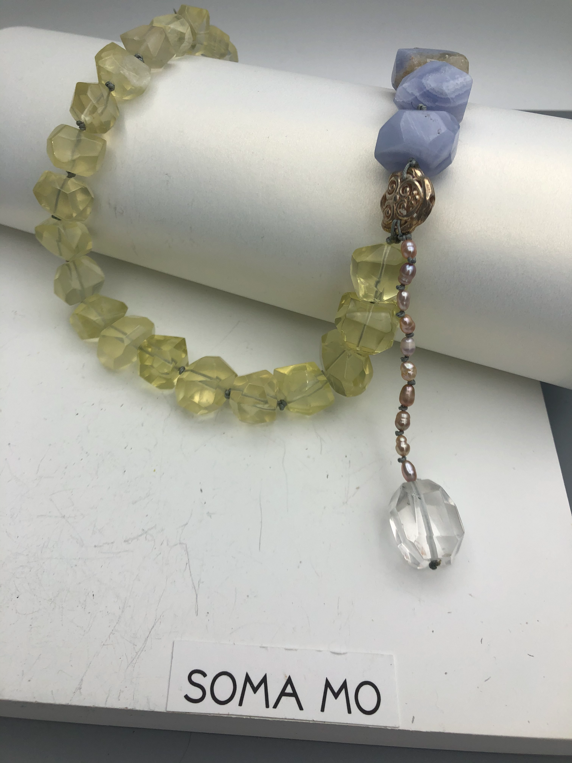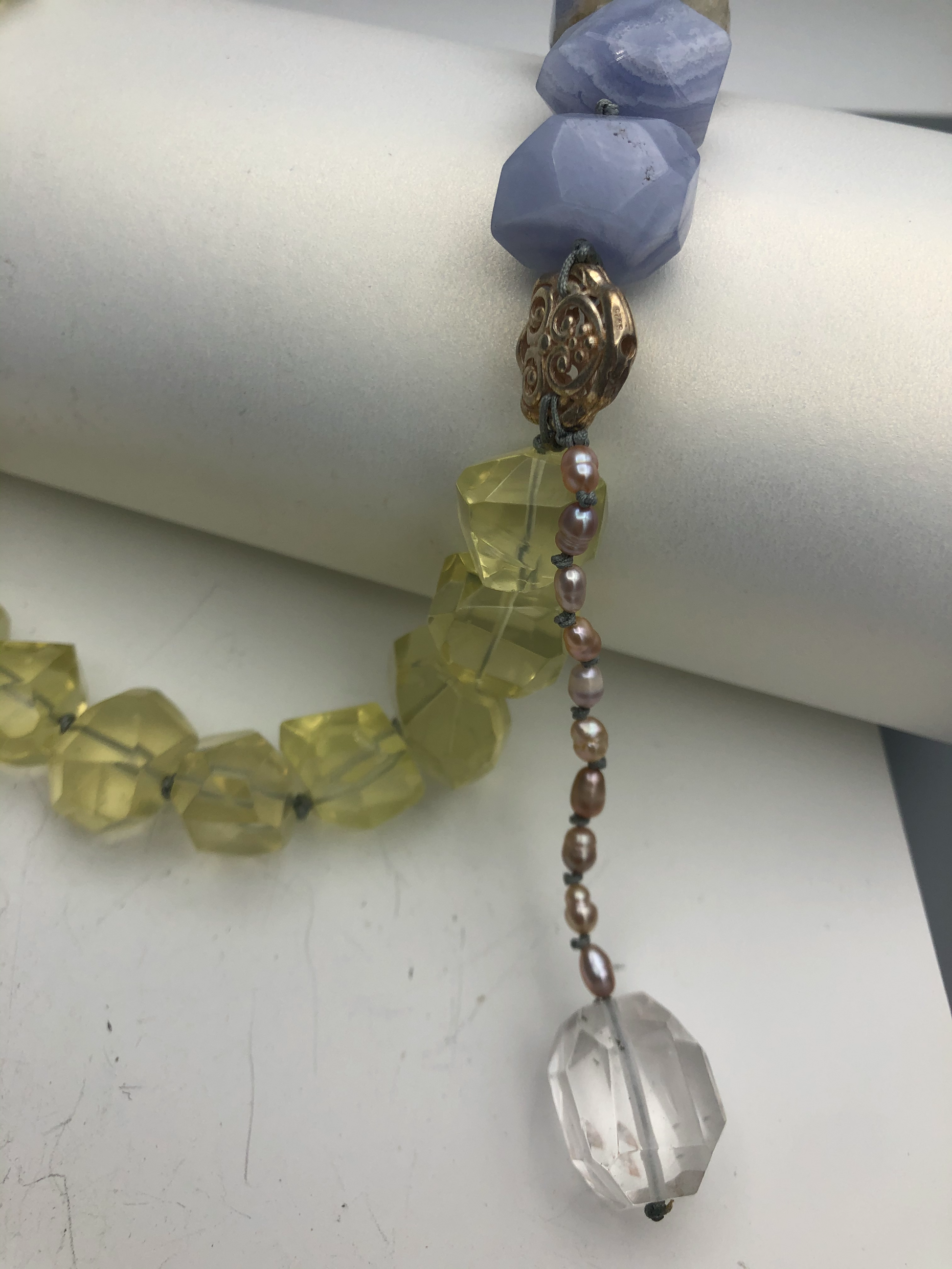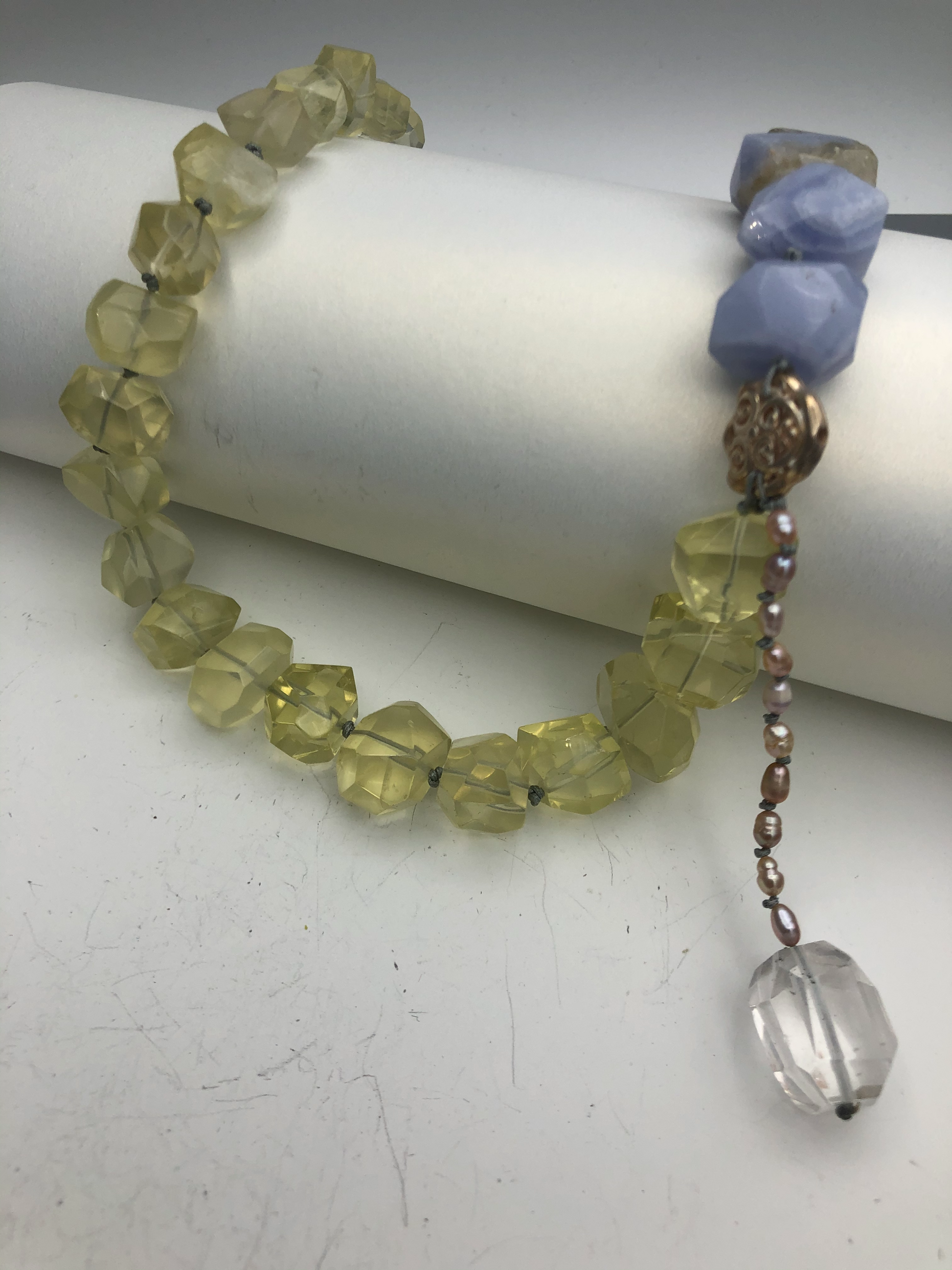 Materials : Lemon quartz, blue lace agate, silver, clear quartz