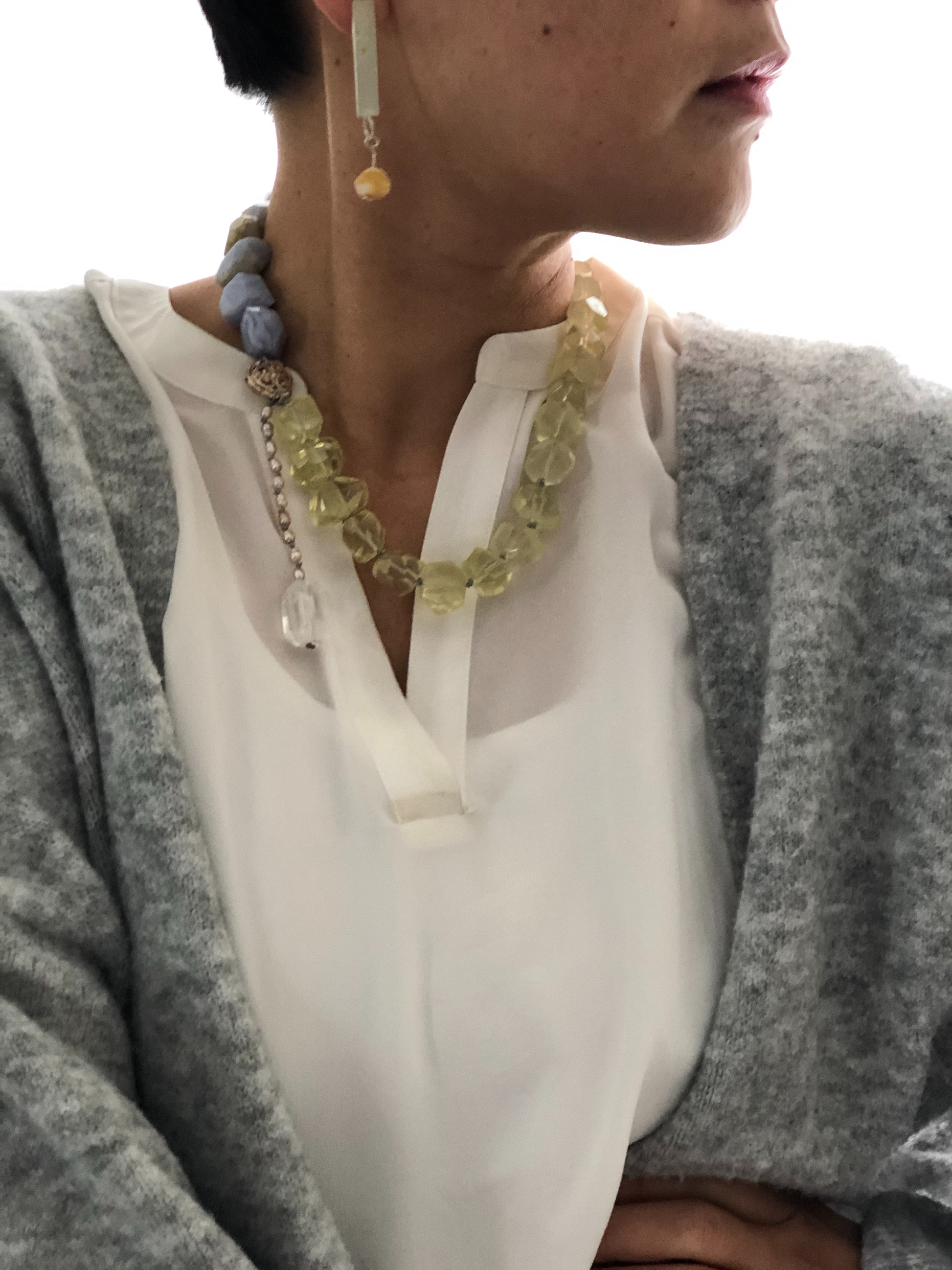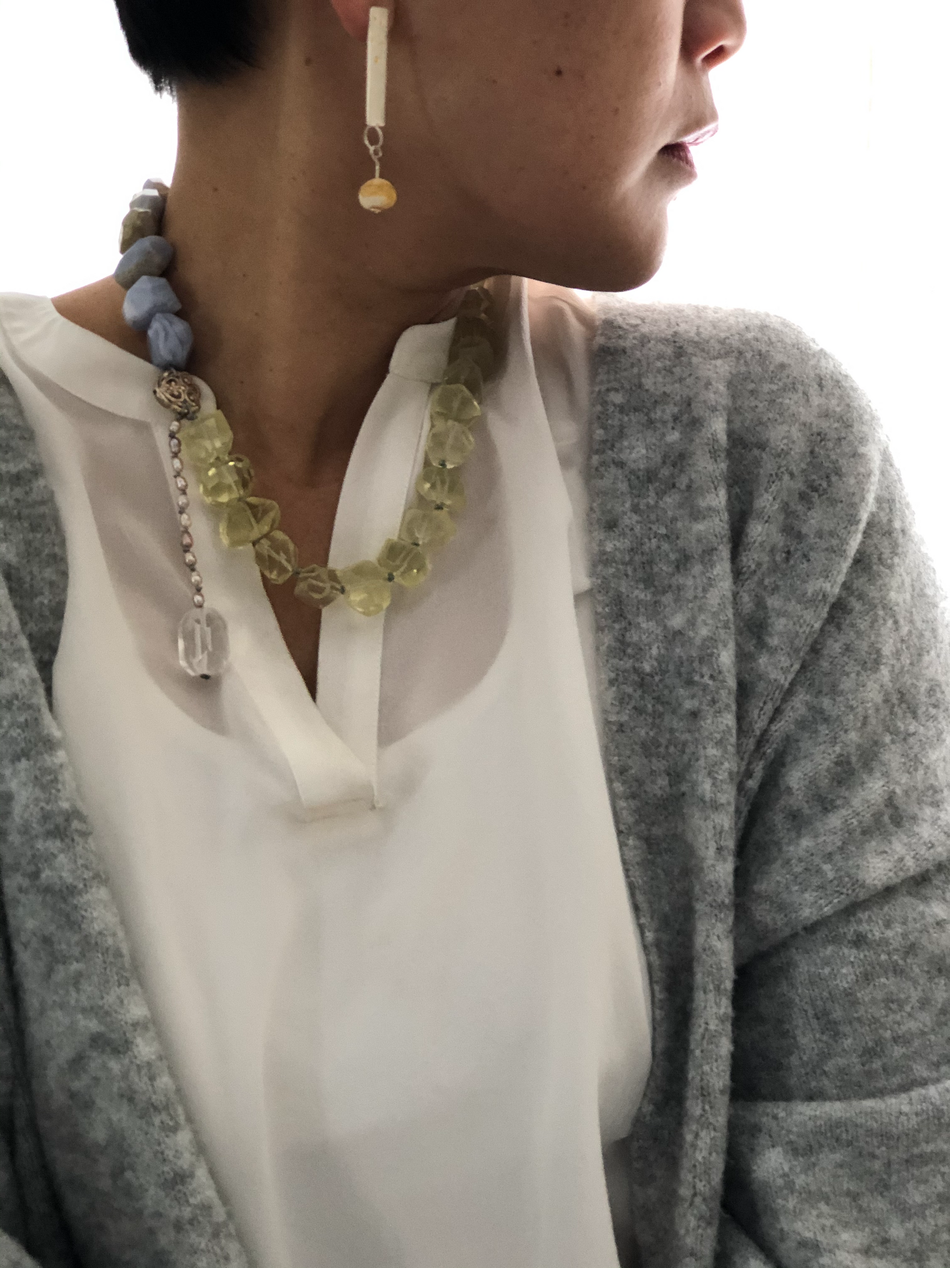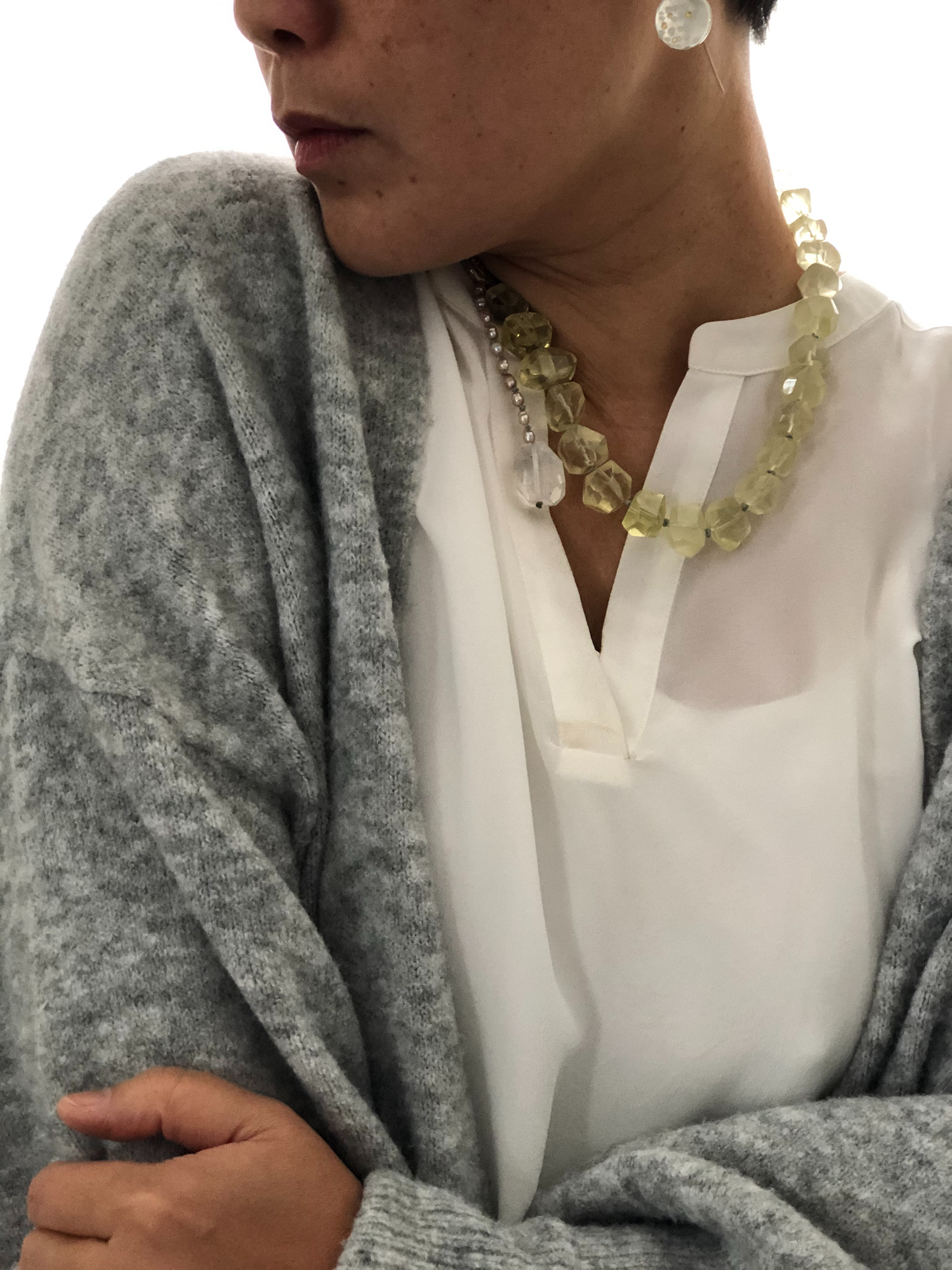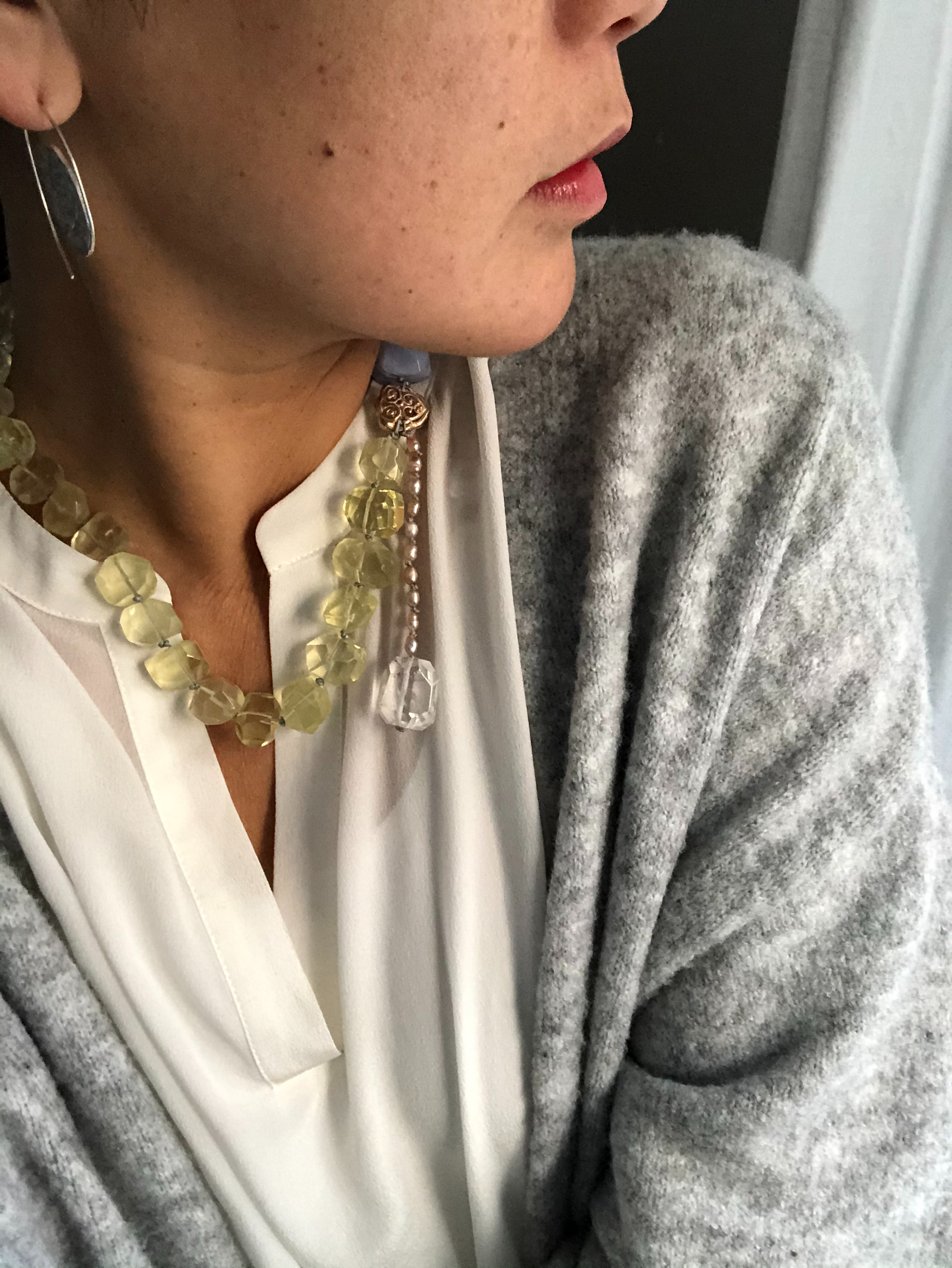 Materials : Lemon quartz, blue lace agate, silver, clear quartz