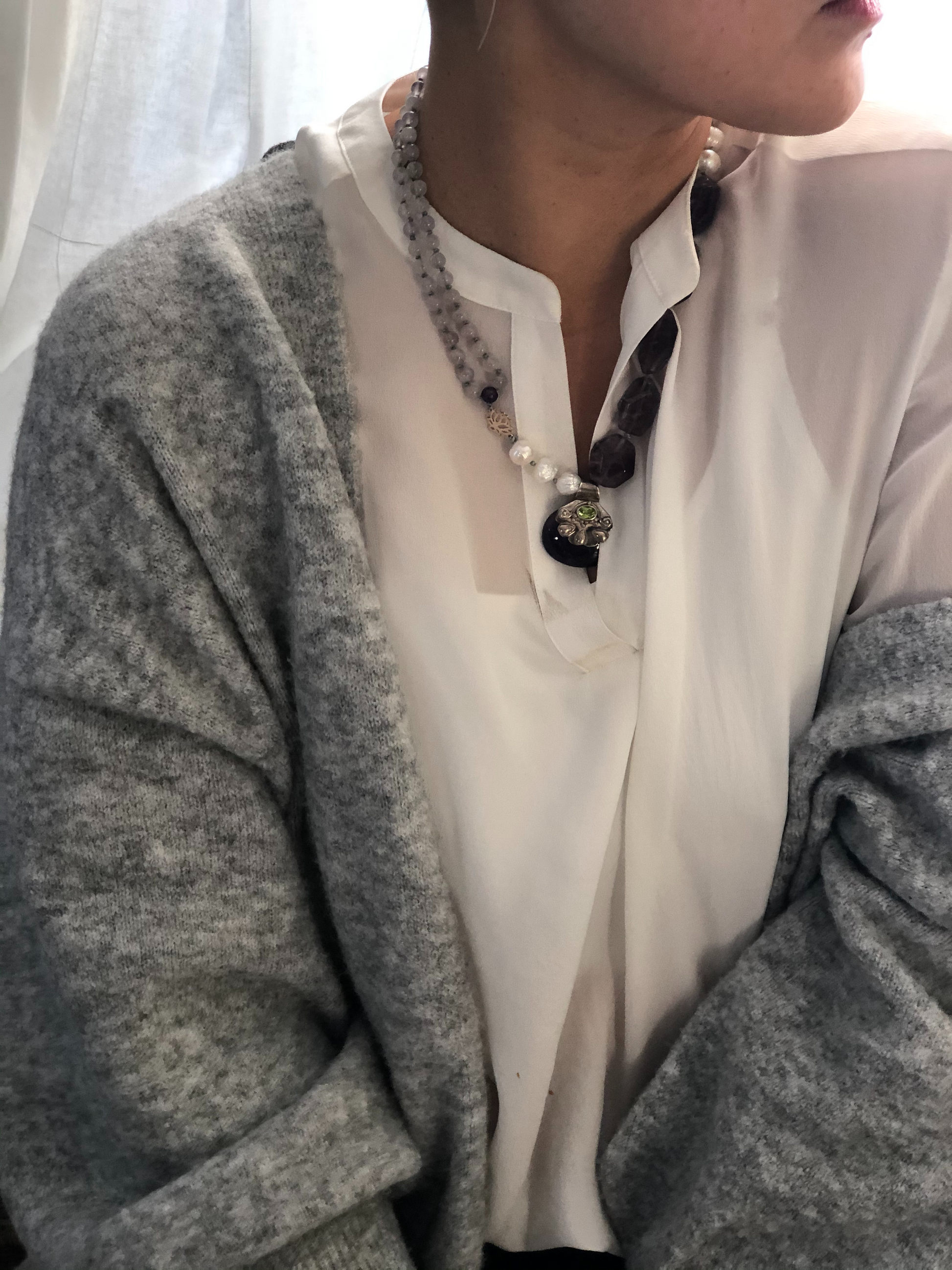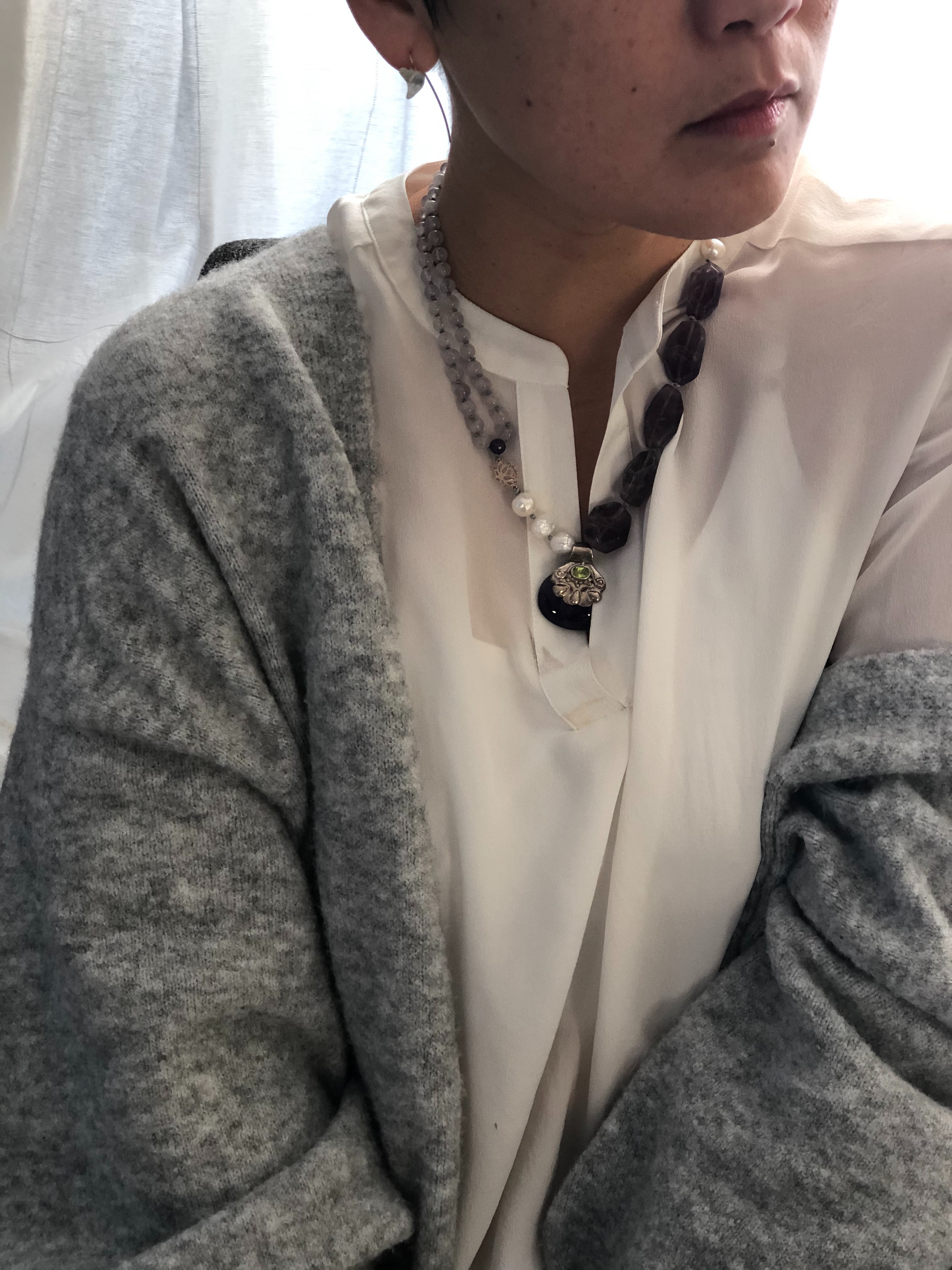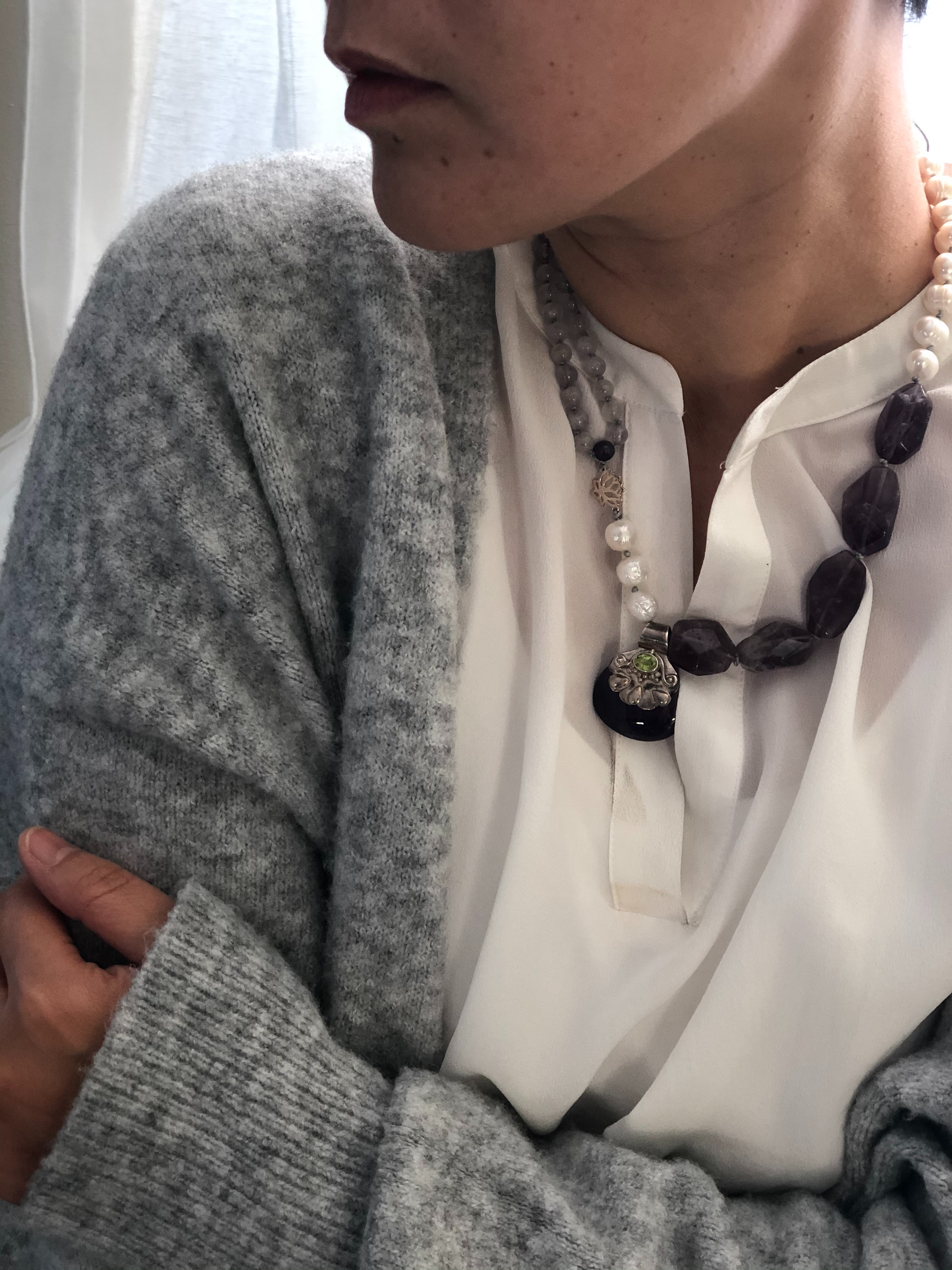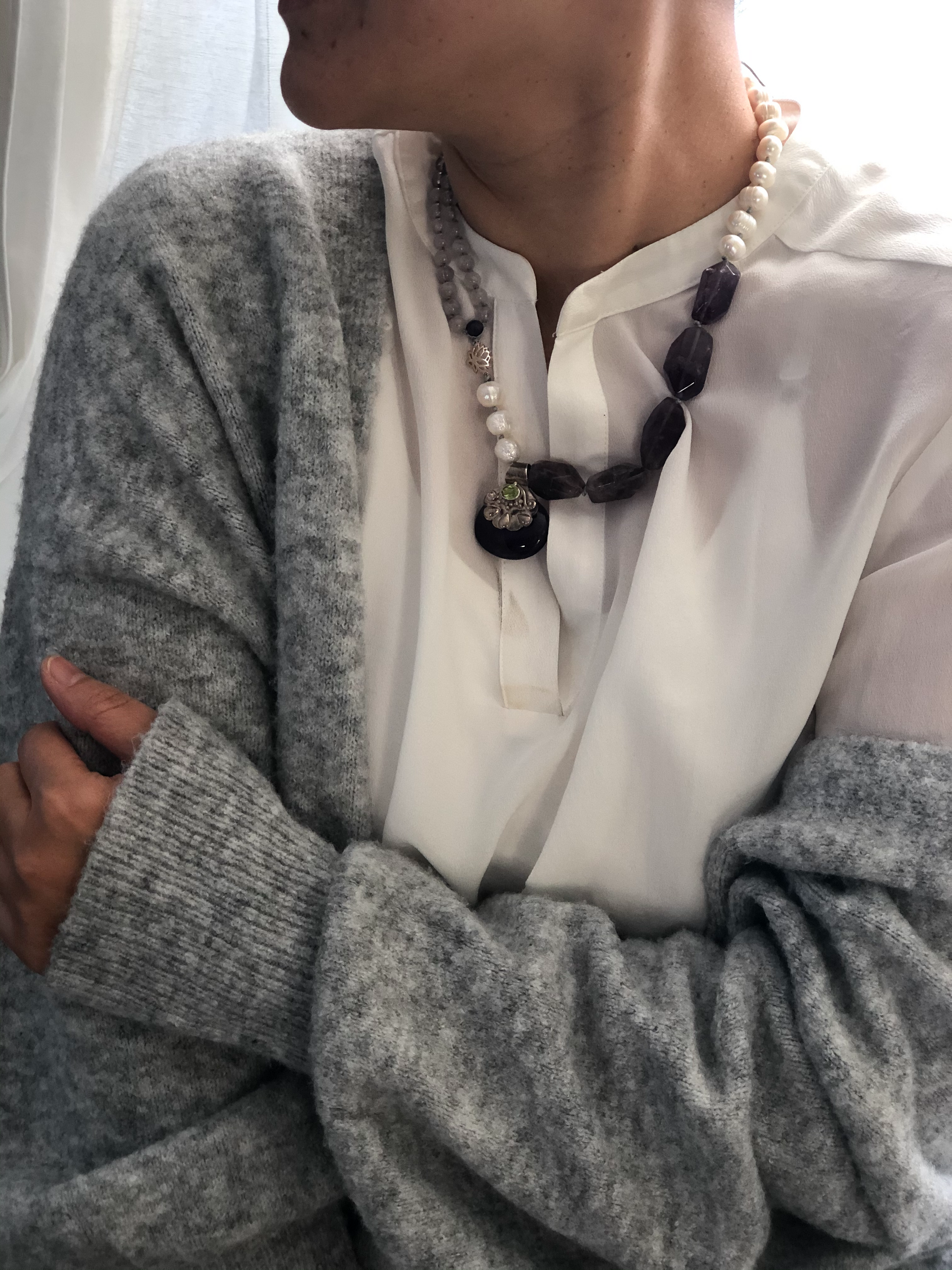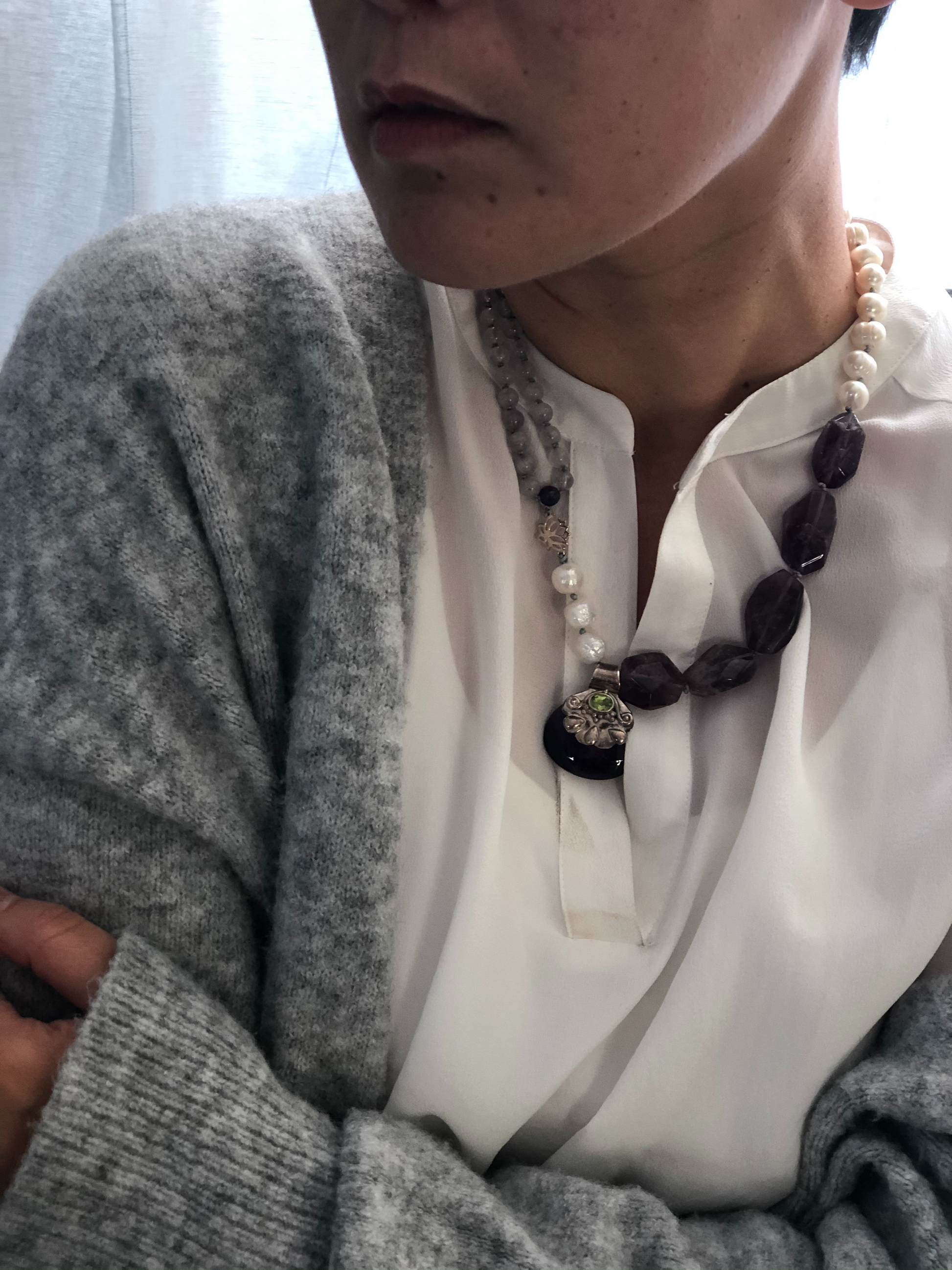 Materials : Amethyst, fresh water pearl, sterling silver pendent with amethyst and peridot