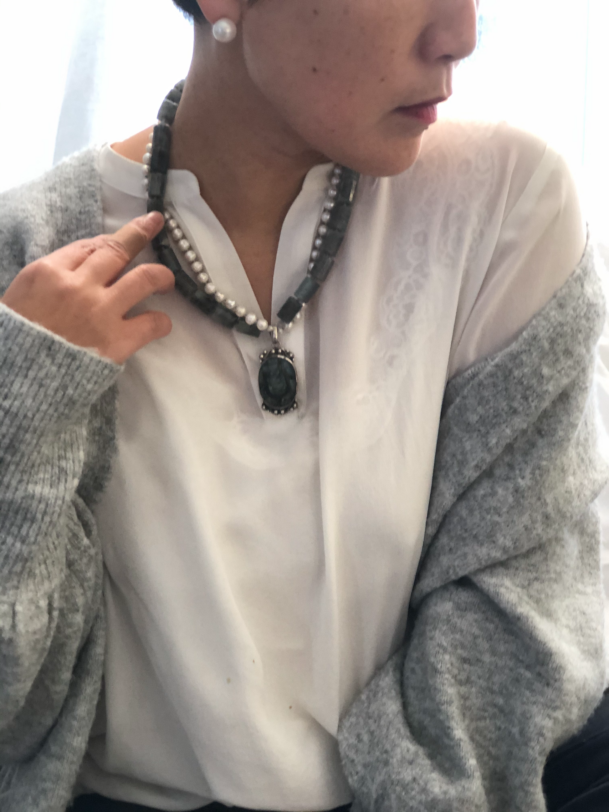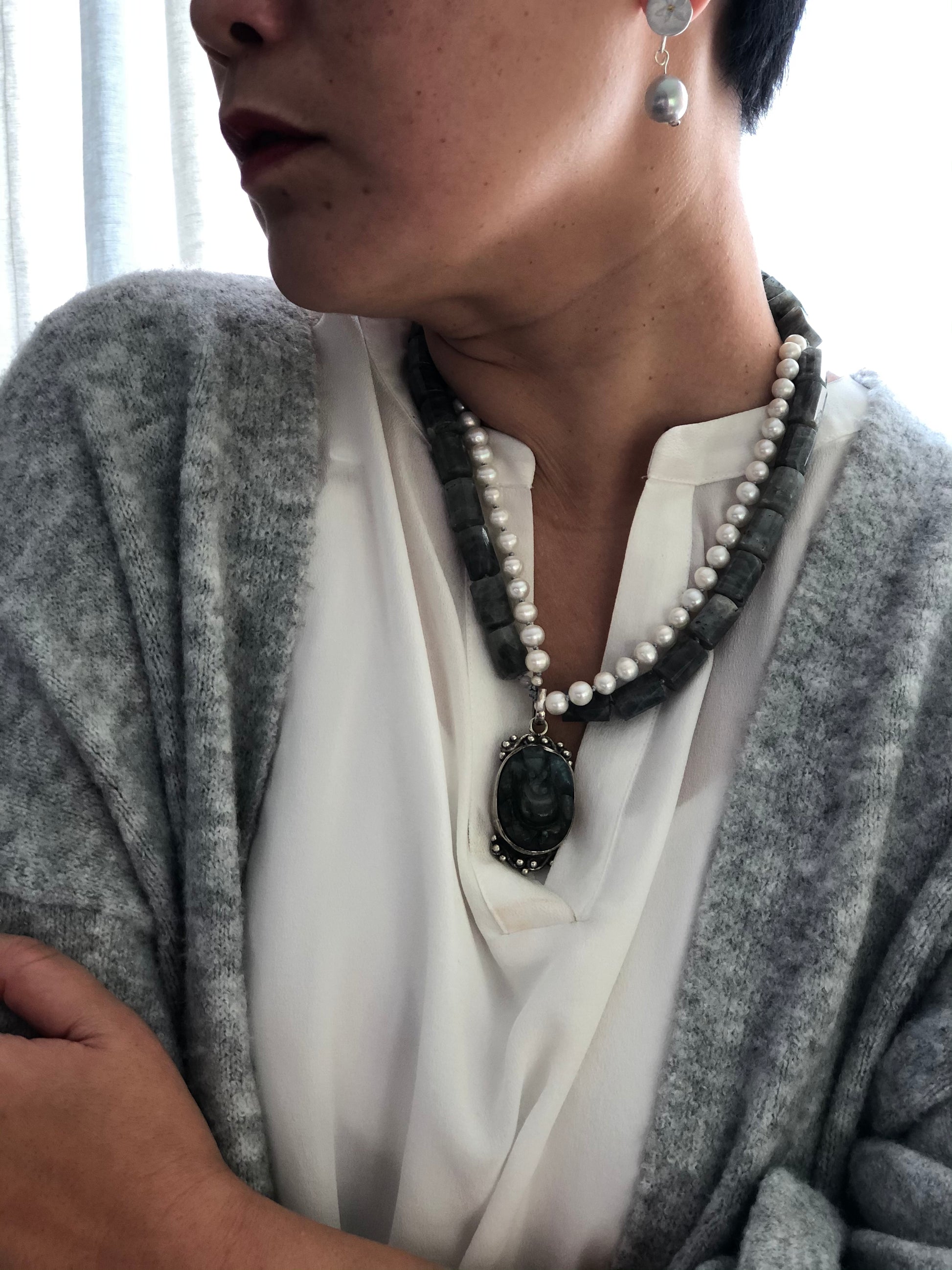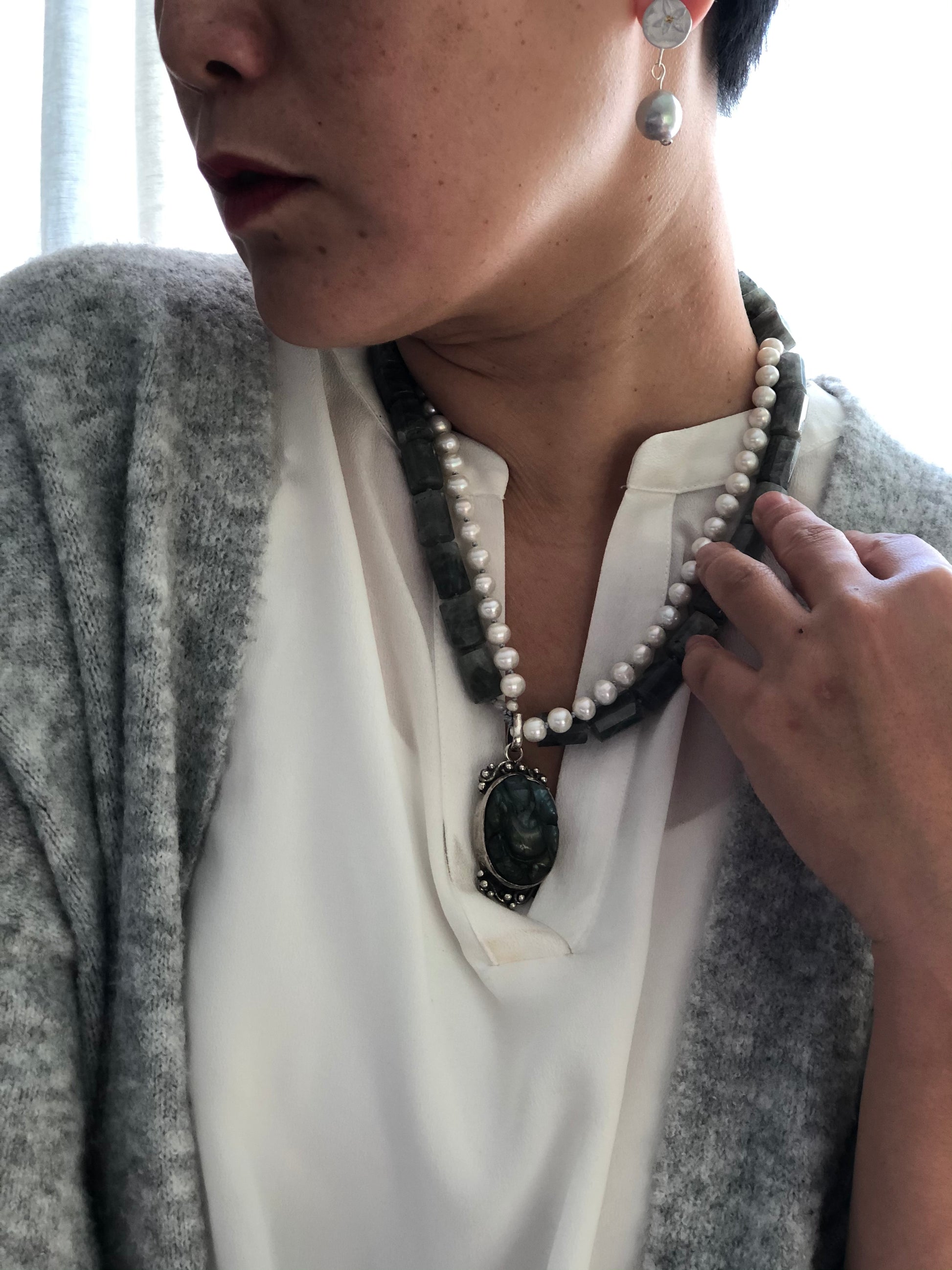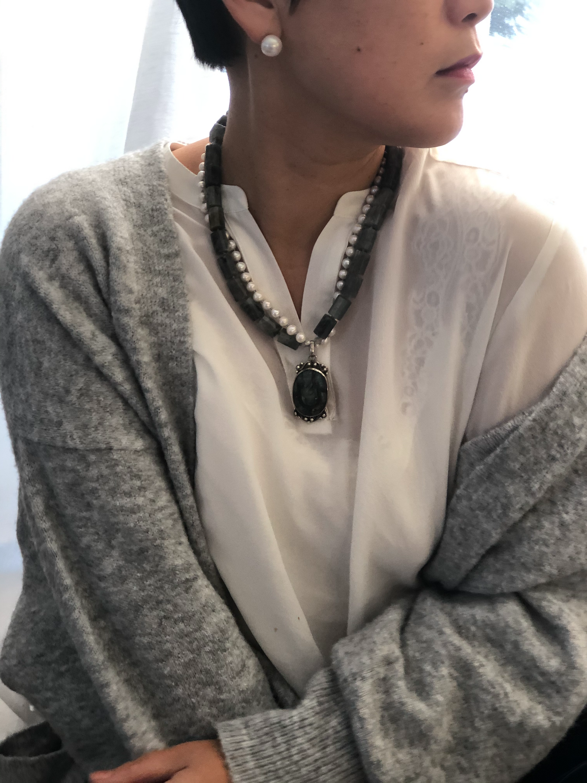 Materials : Labrodrite, fresh water pearl, silver pendent .