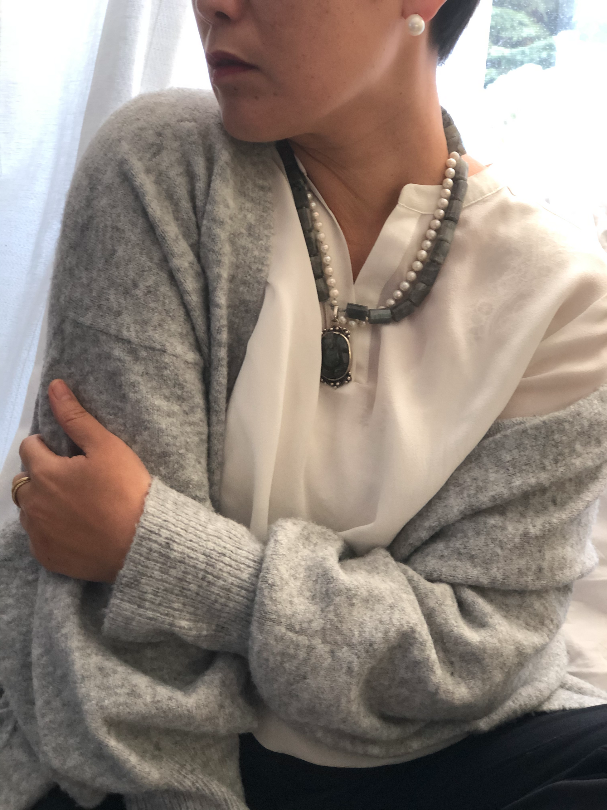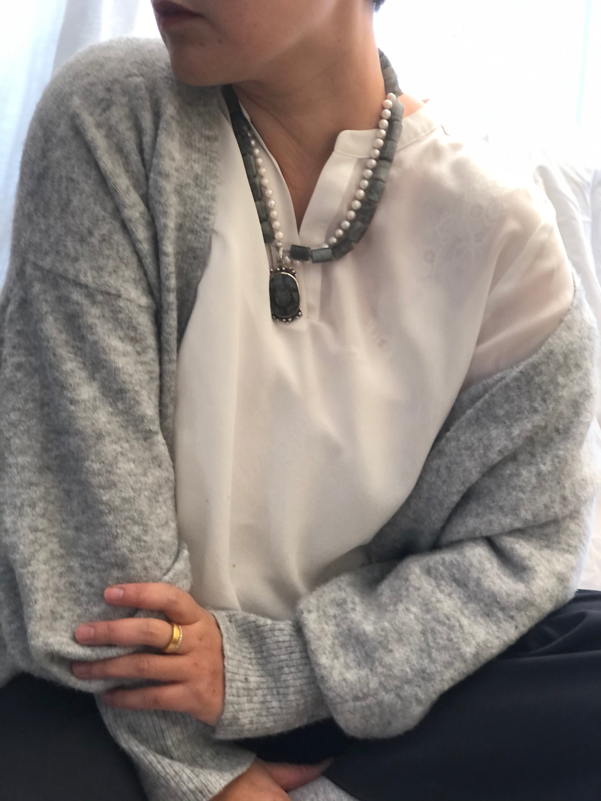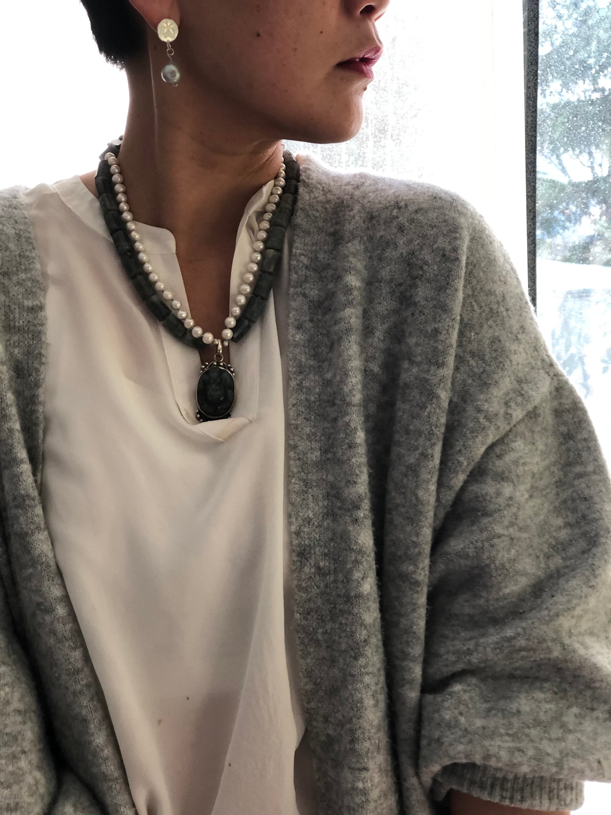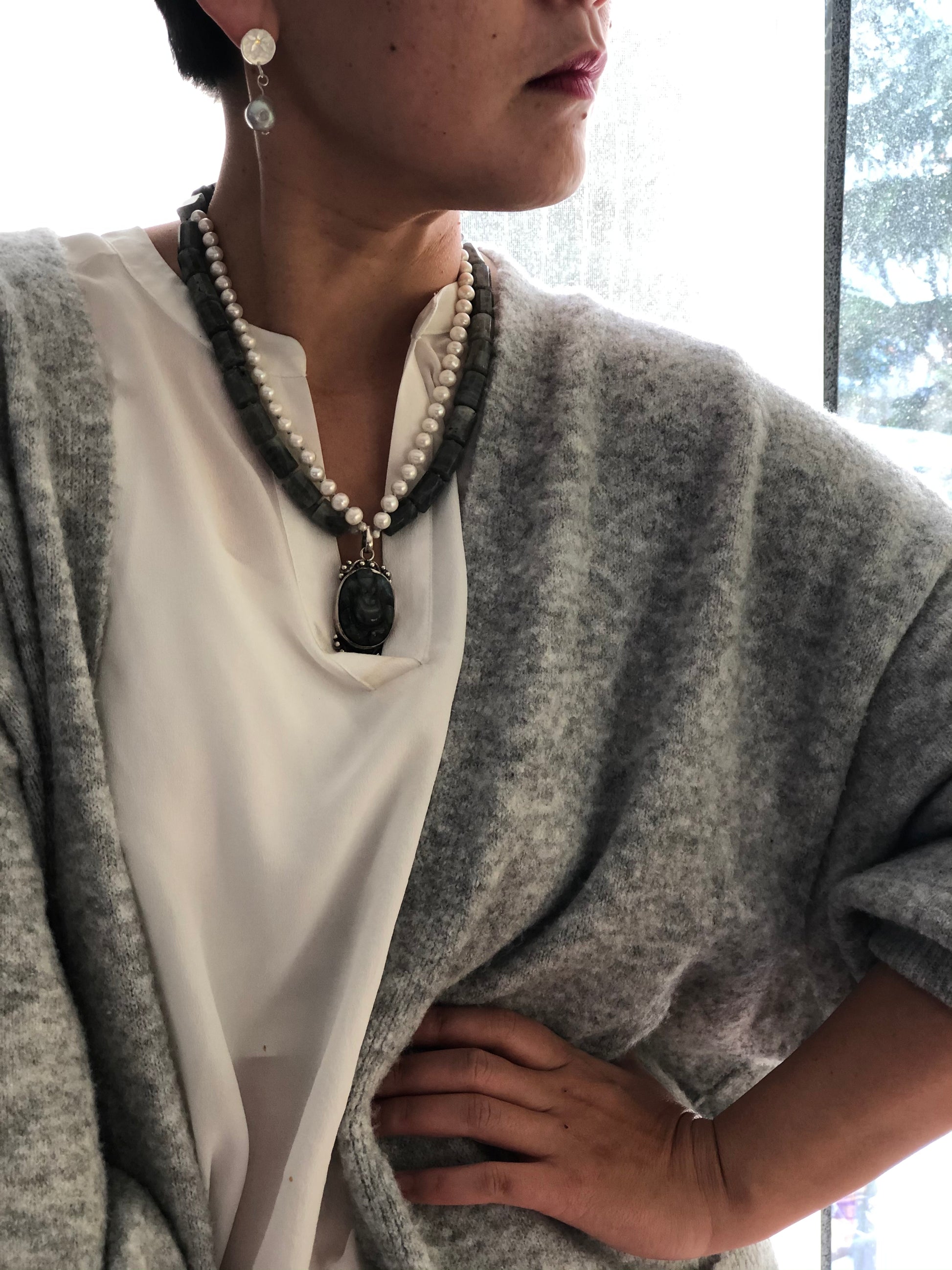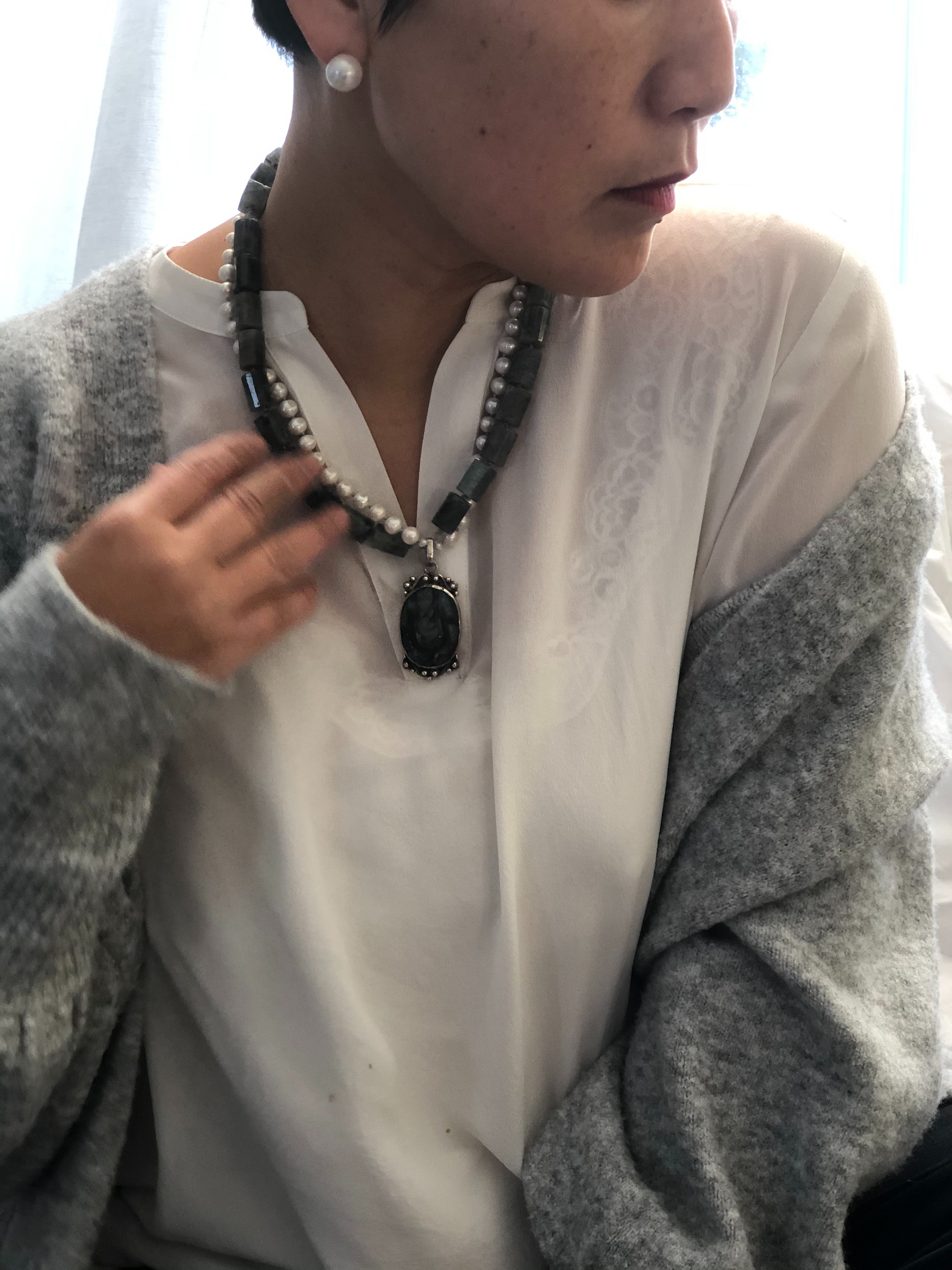 Materials : Labrodrite, fresh water pearl, silver pendent .
