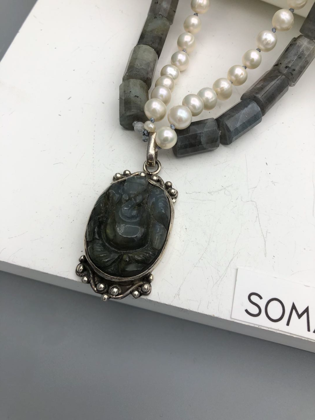 Silver pendent with labrodrite garnasha . Hand knotted between each beads, can be resized for special request.