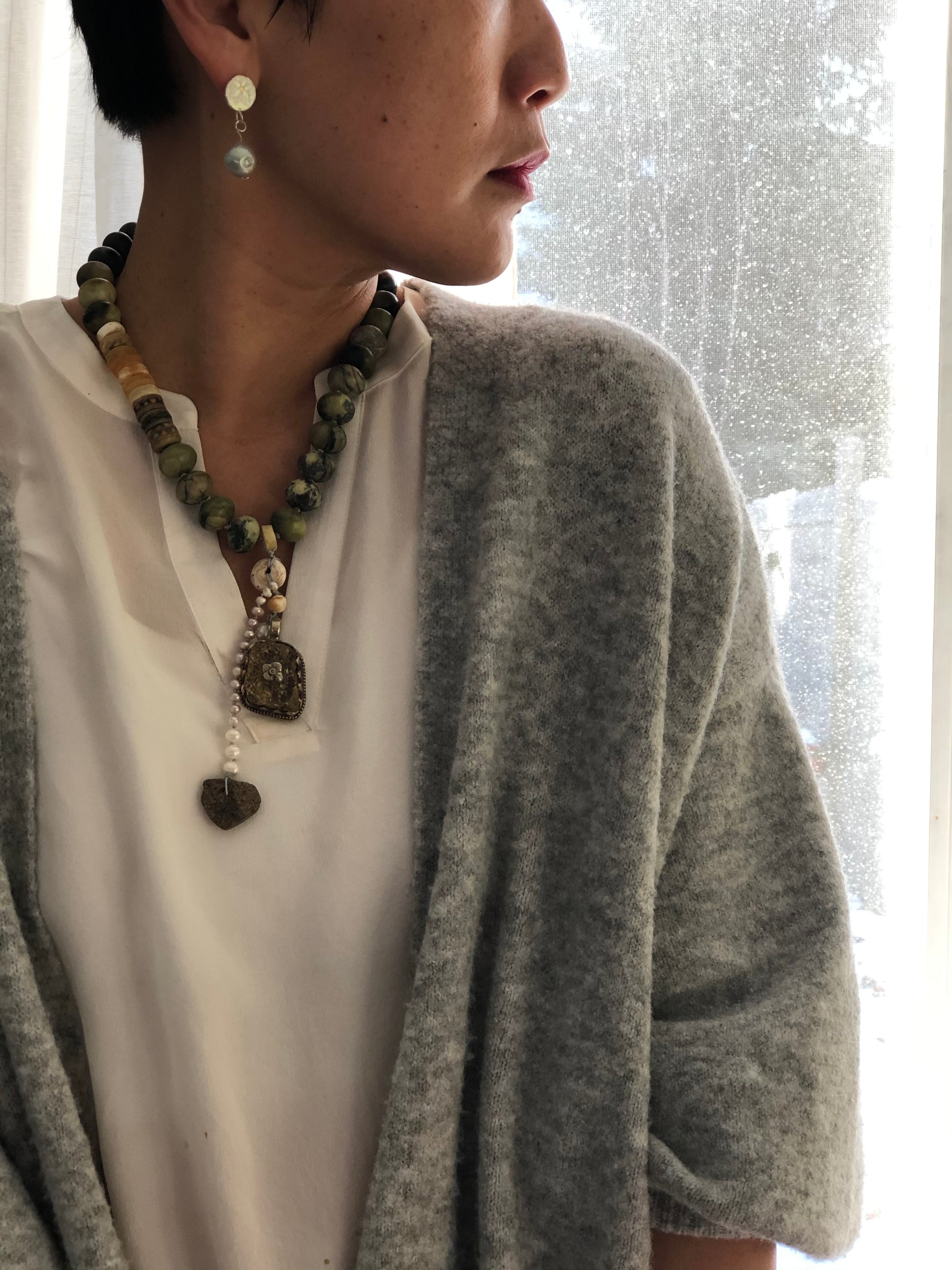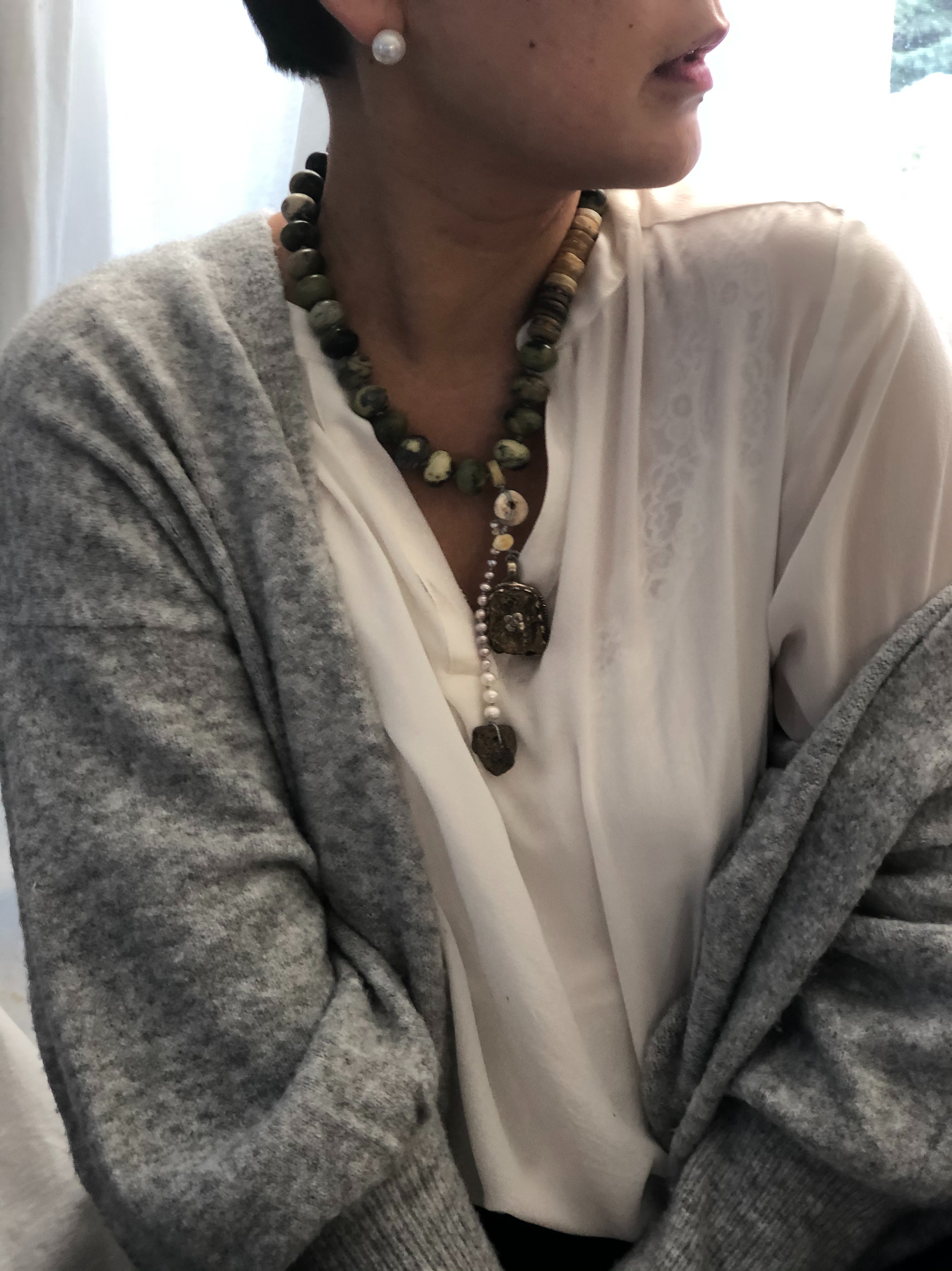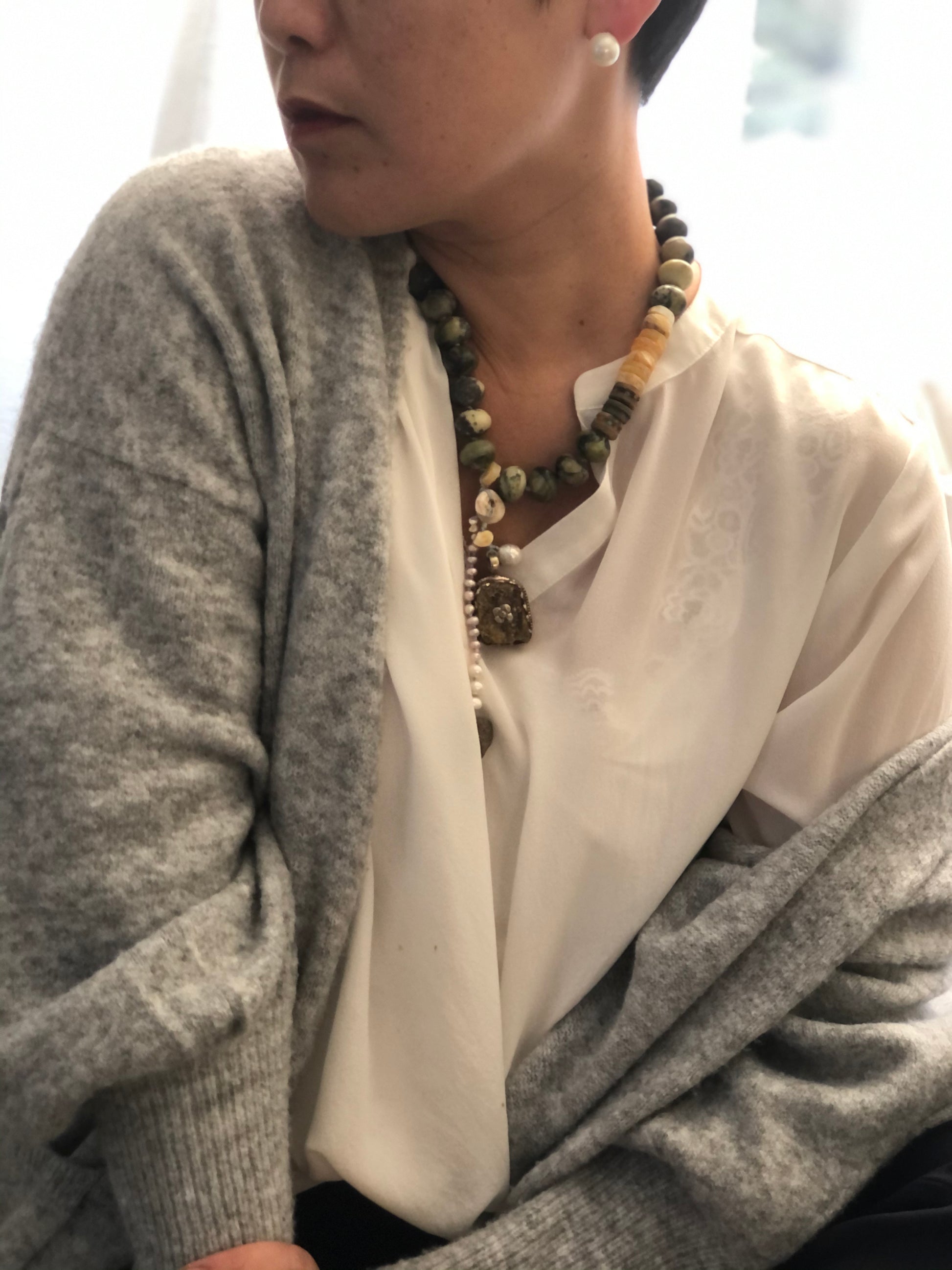 Materials : Jasper, Tibetan silver pendent with amber, baltic amber