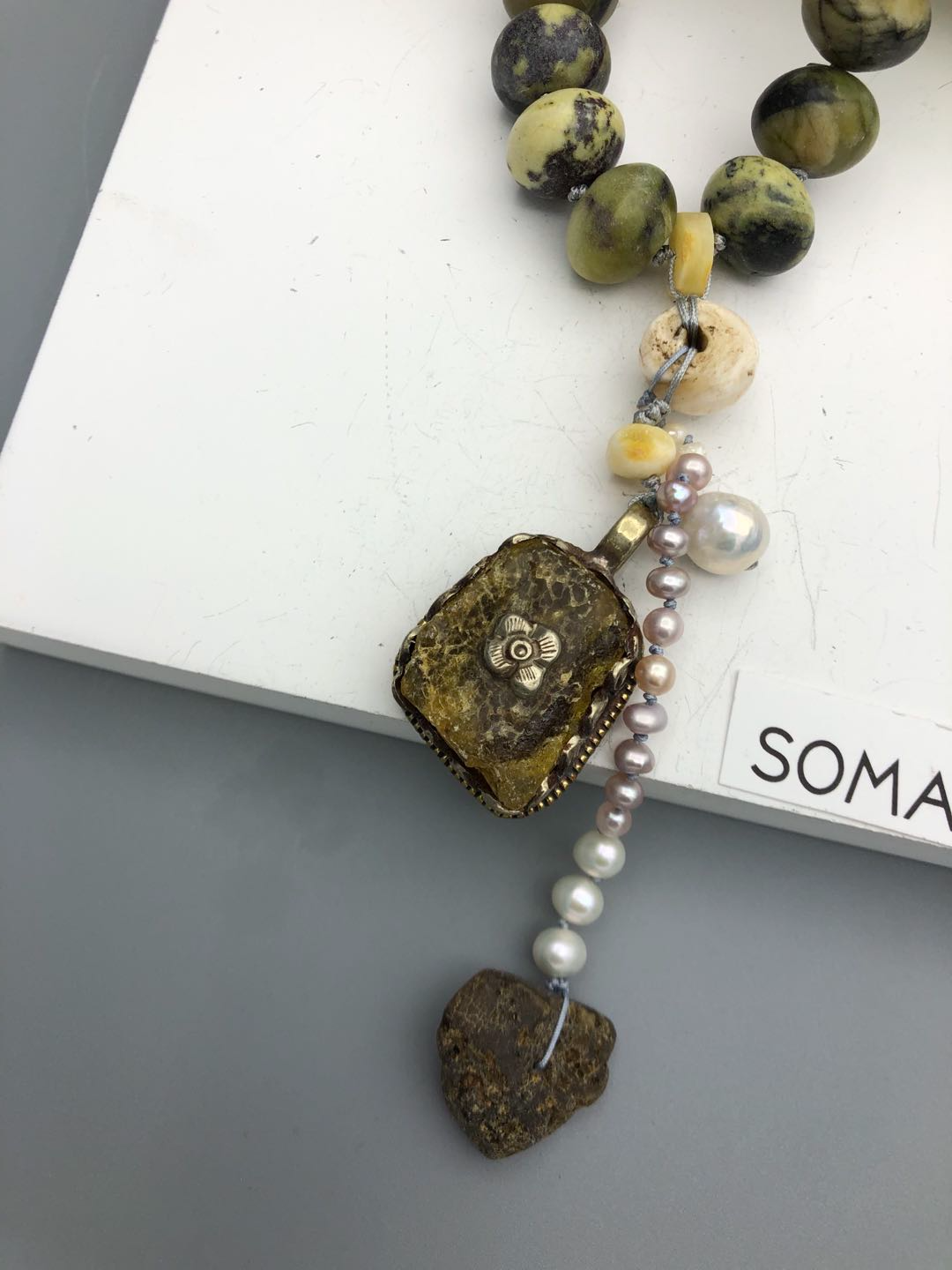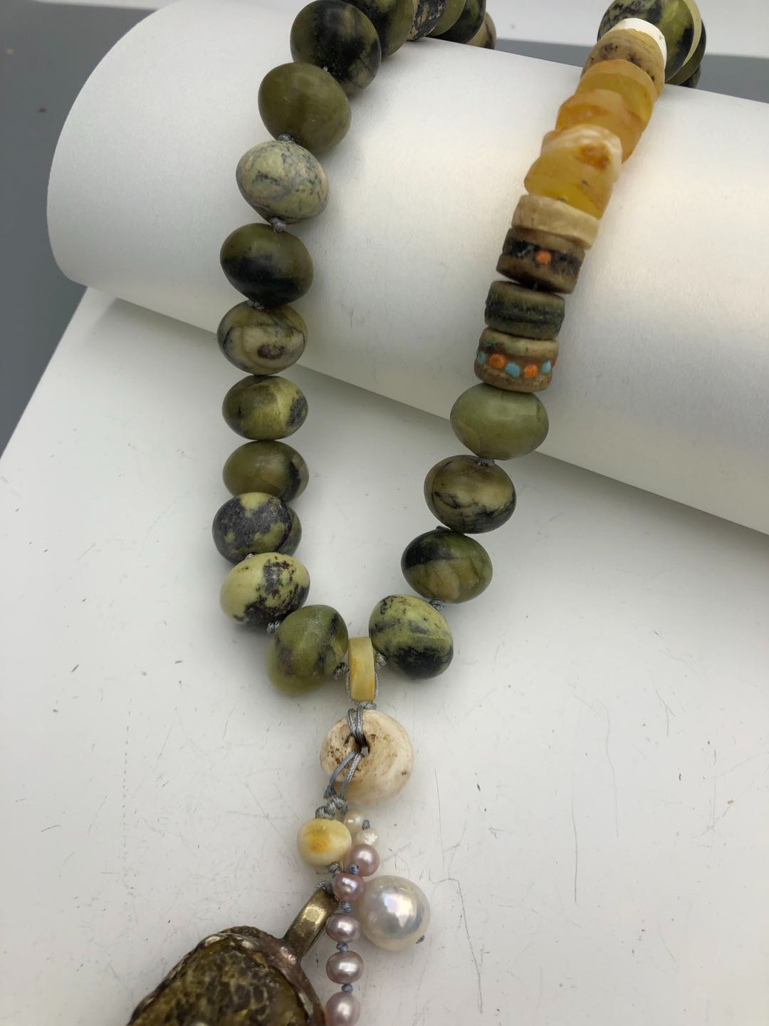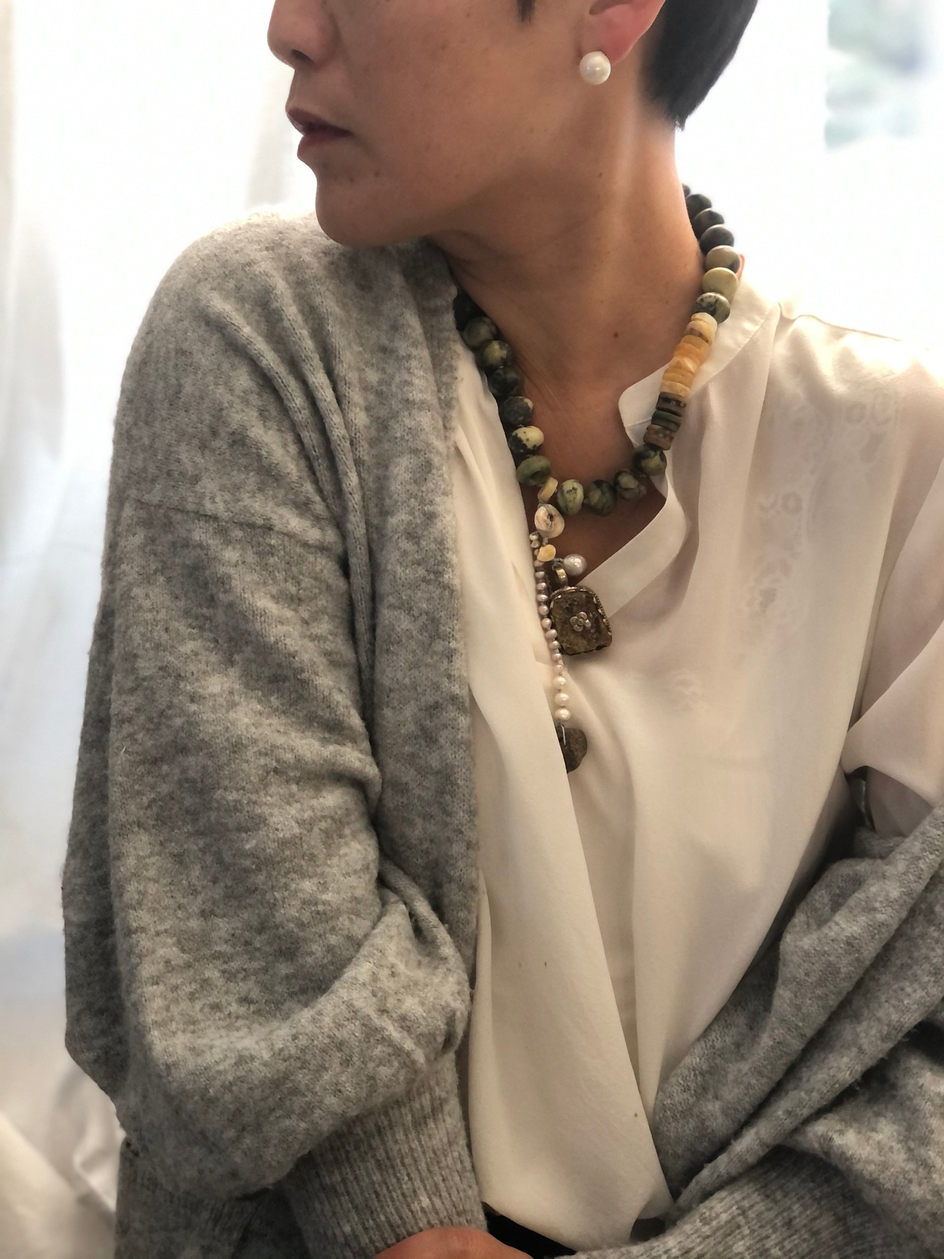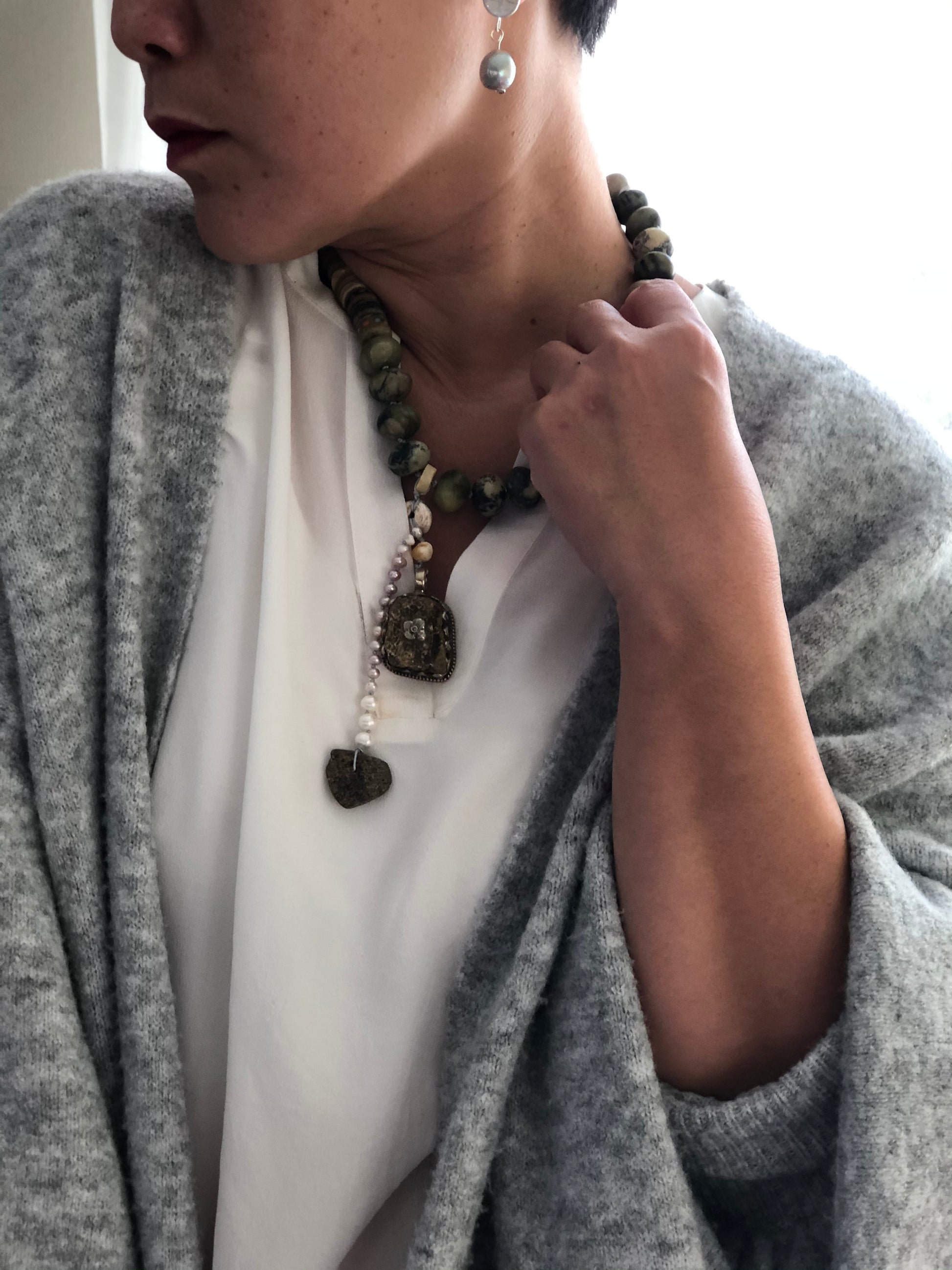 Materials : Jasper, Tibetan silver pendent with amber, baltic amber