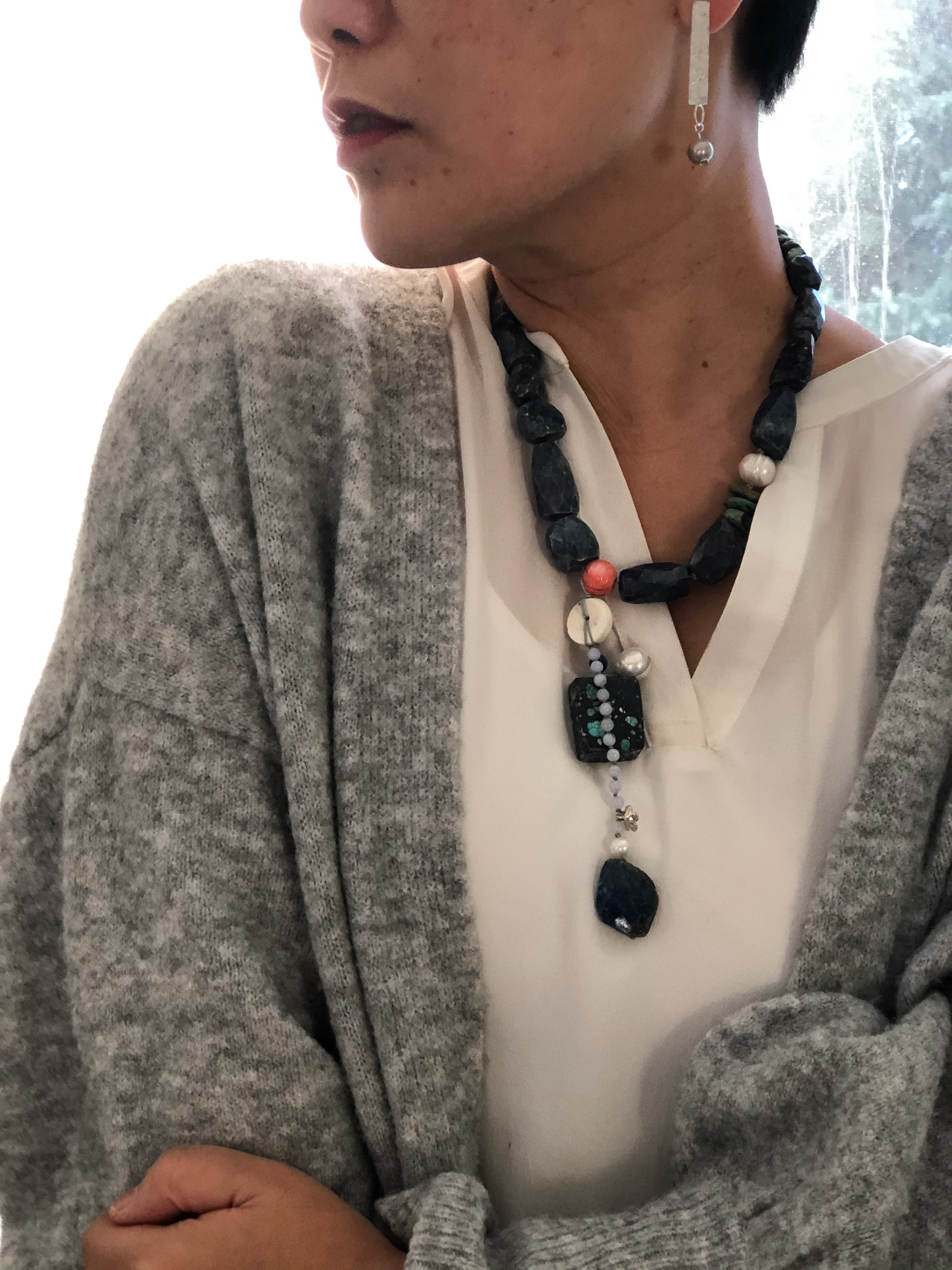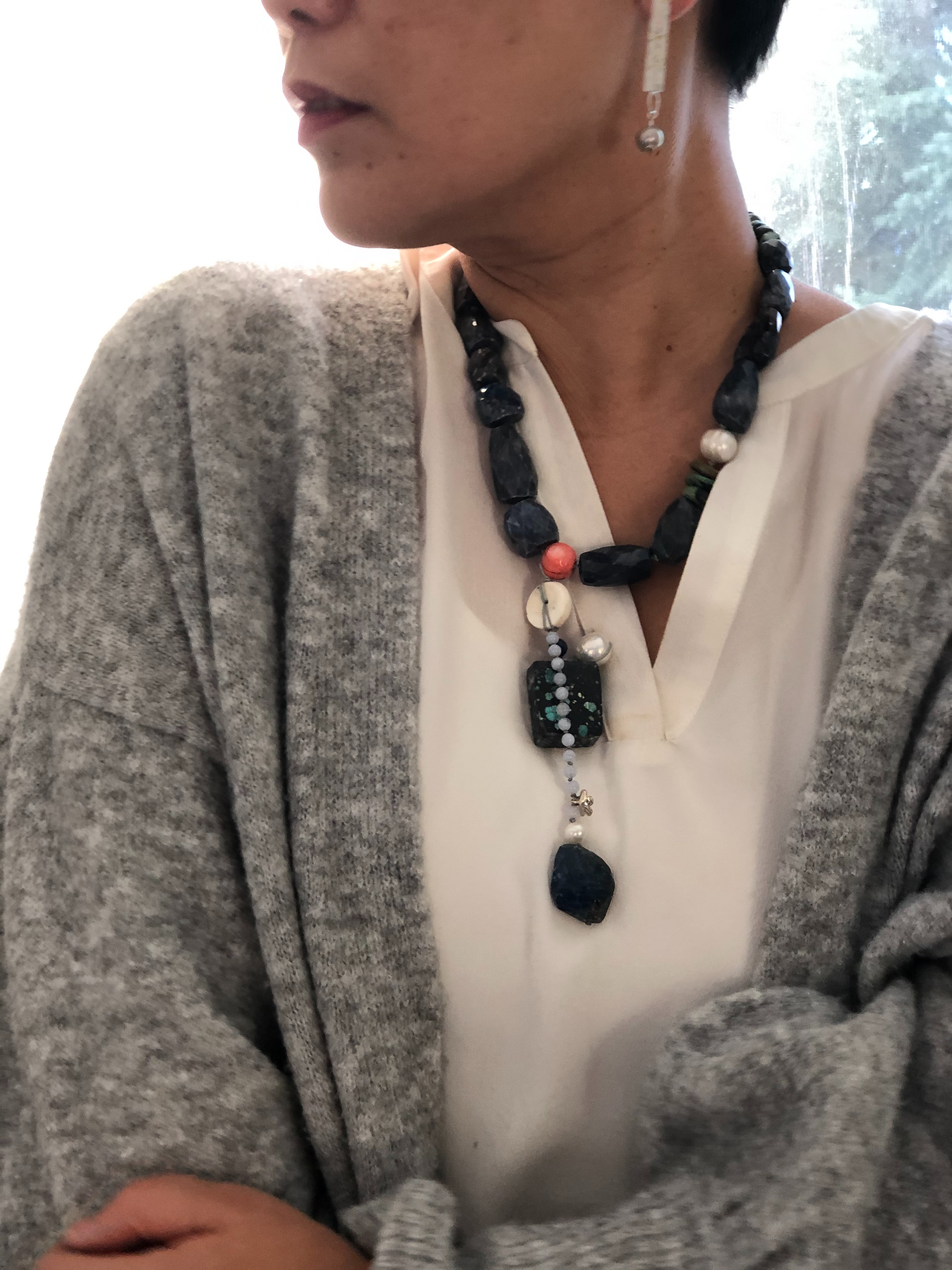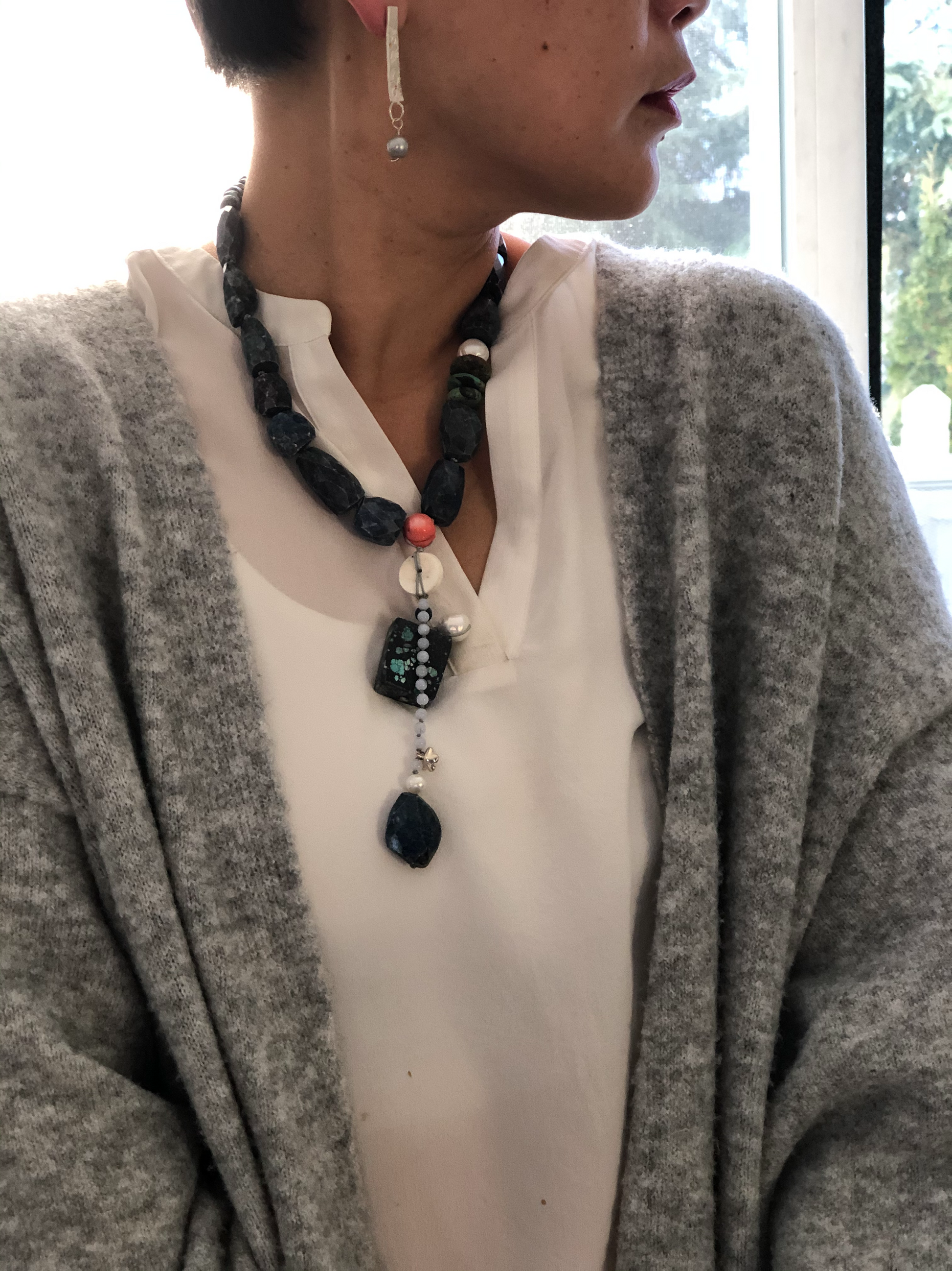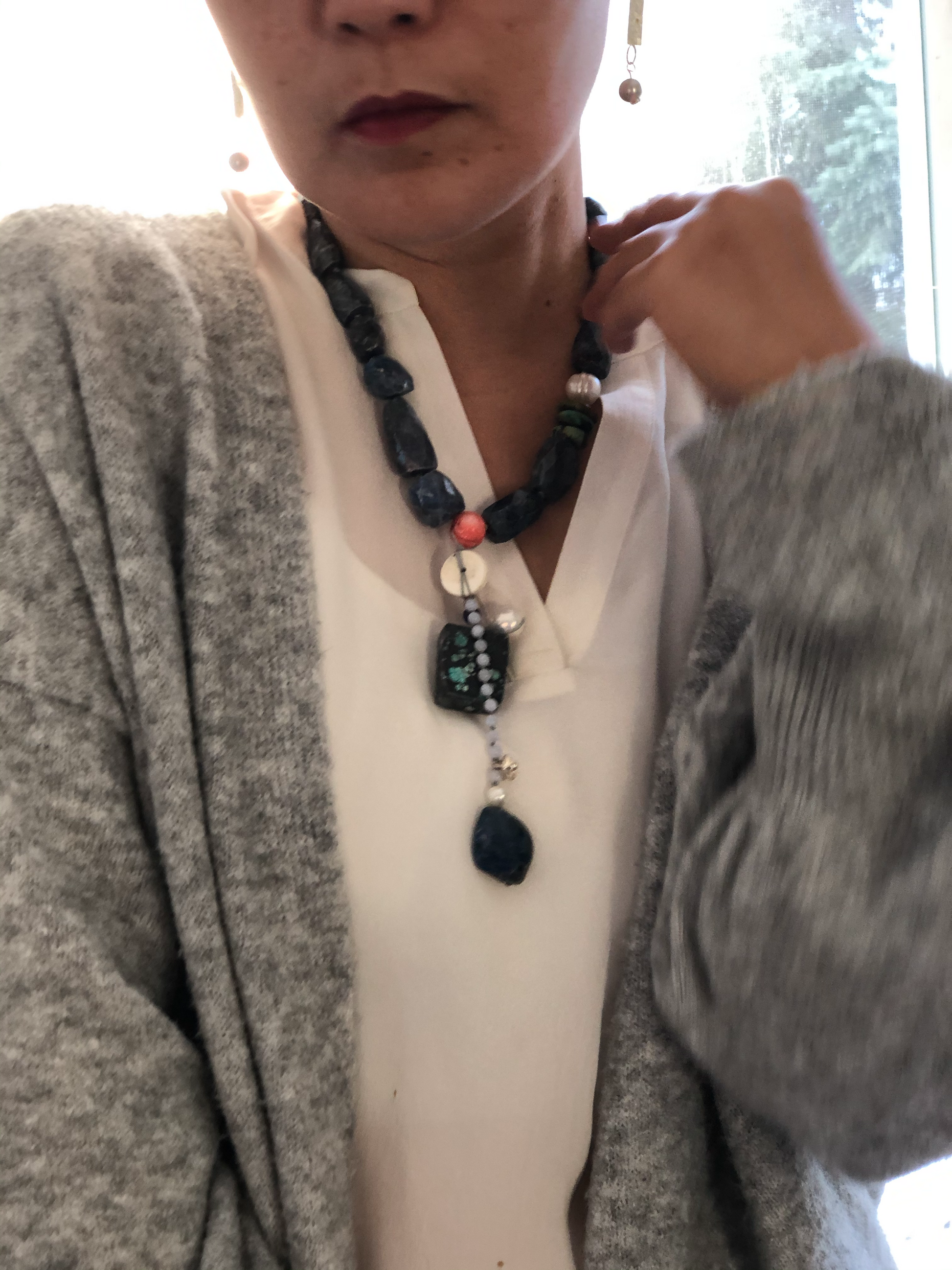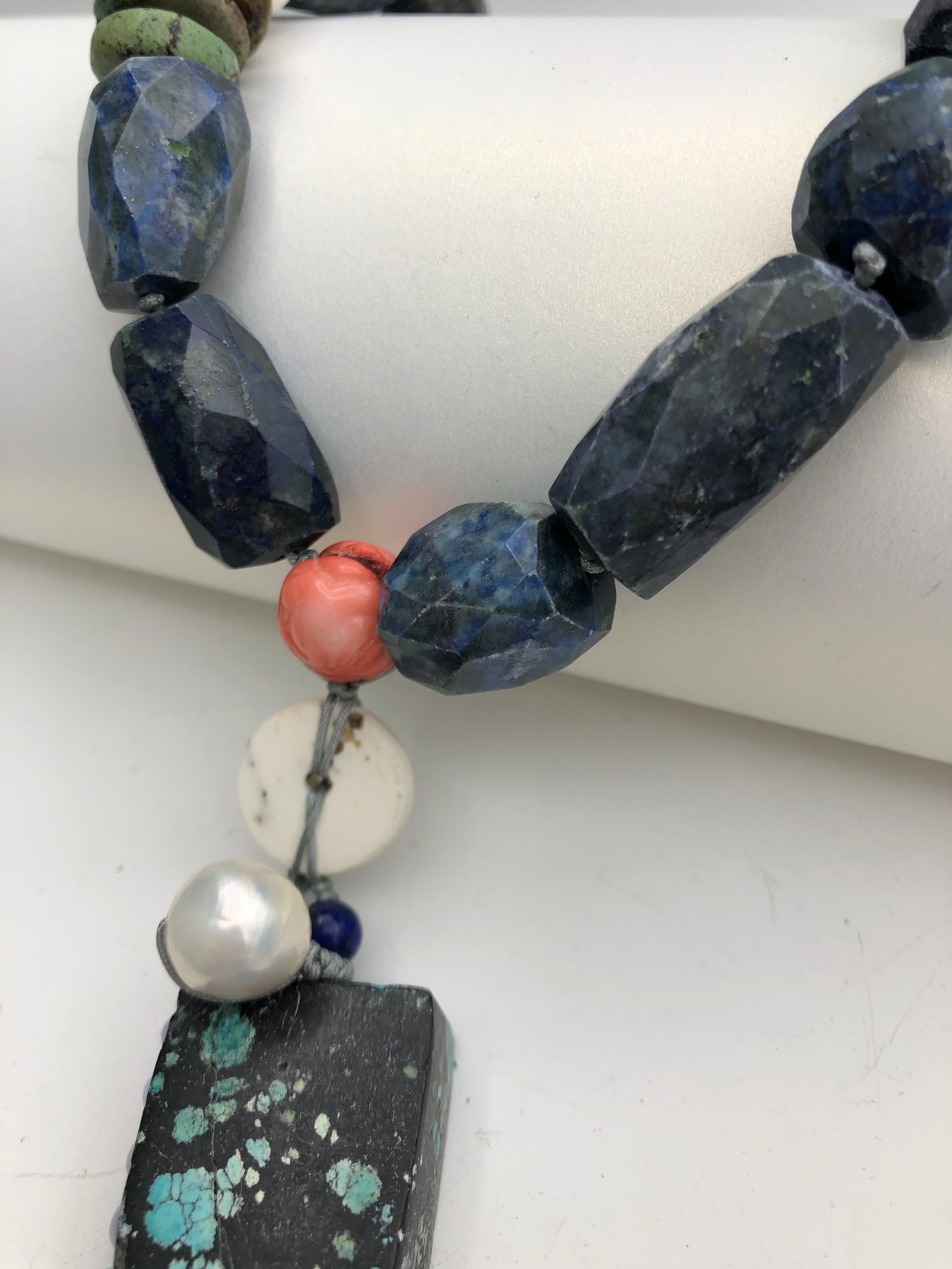 Materials : Lapis, coral , turquoise , fresh water pearl