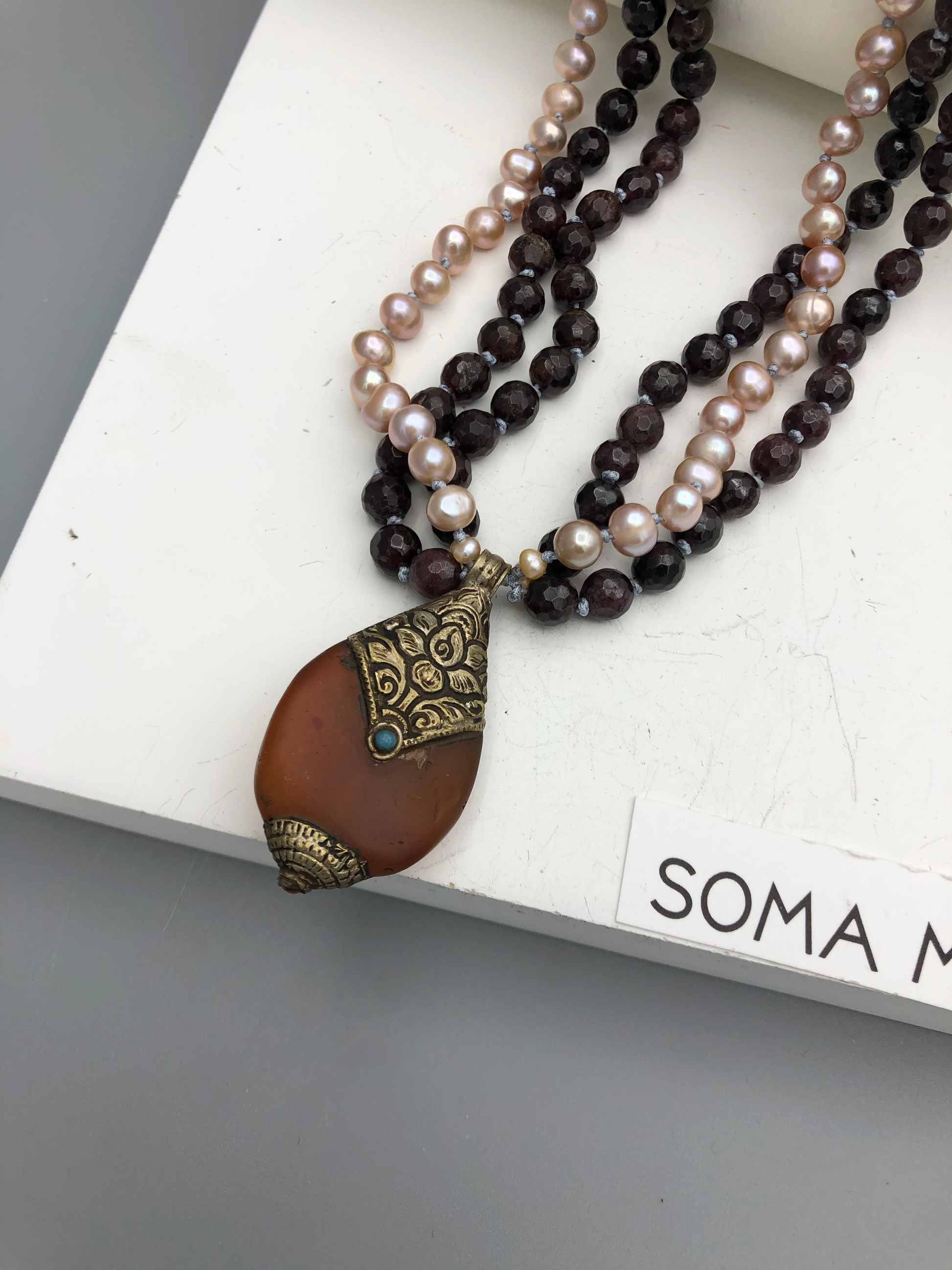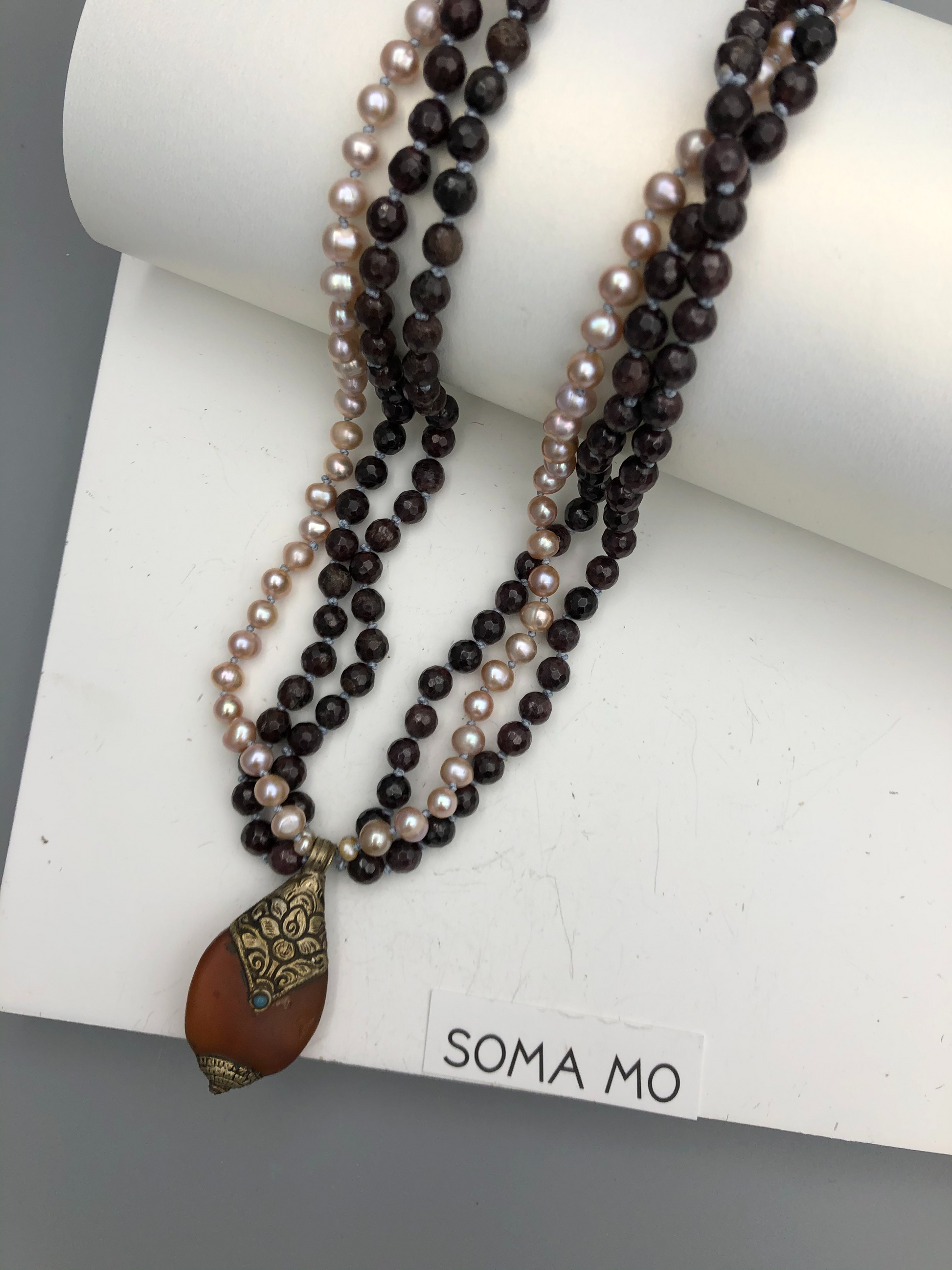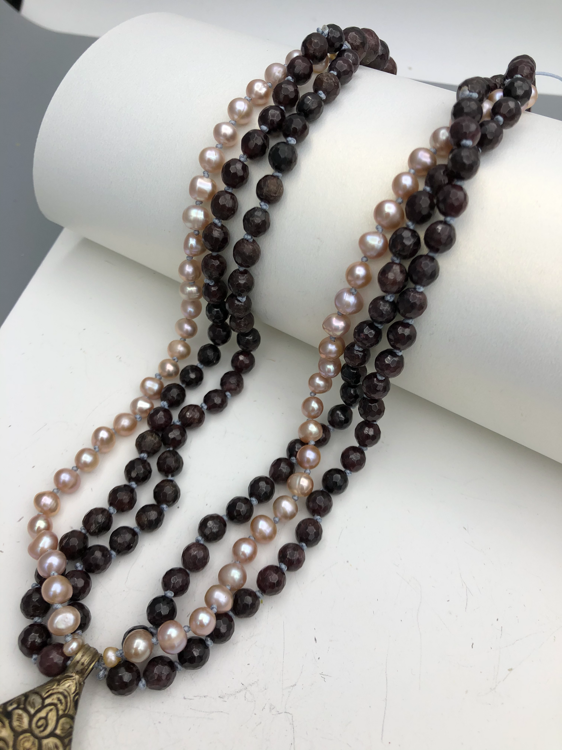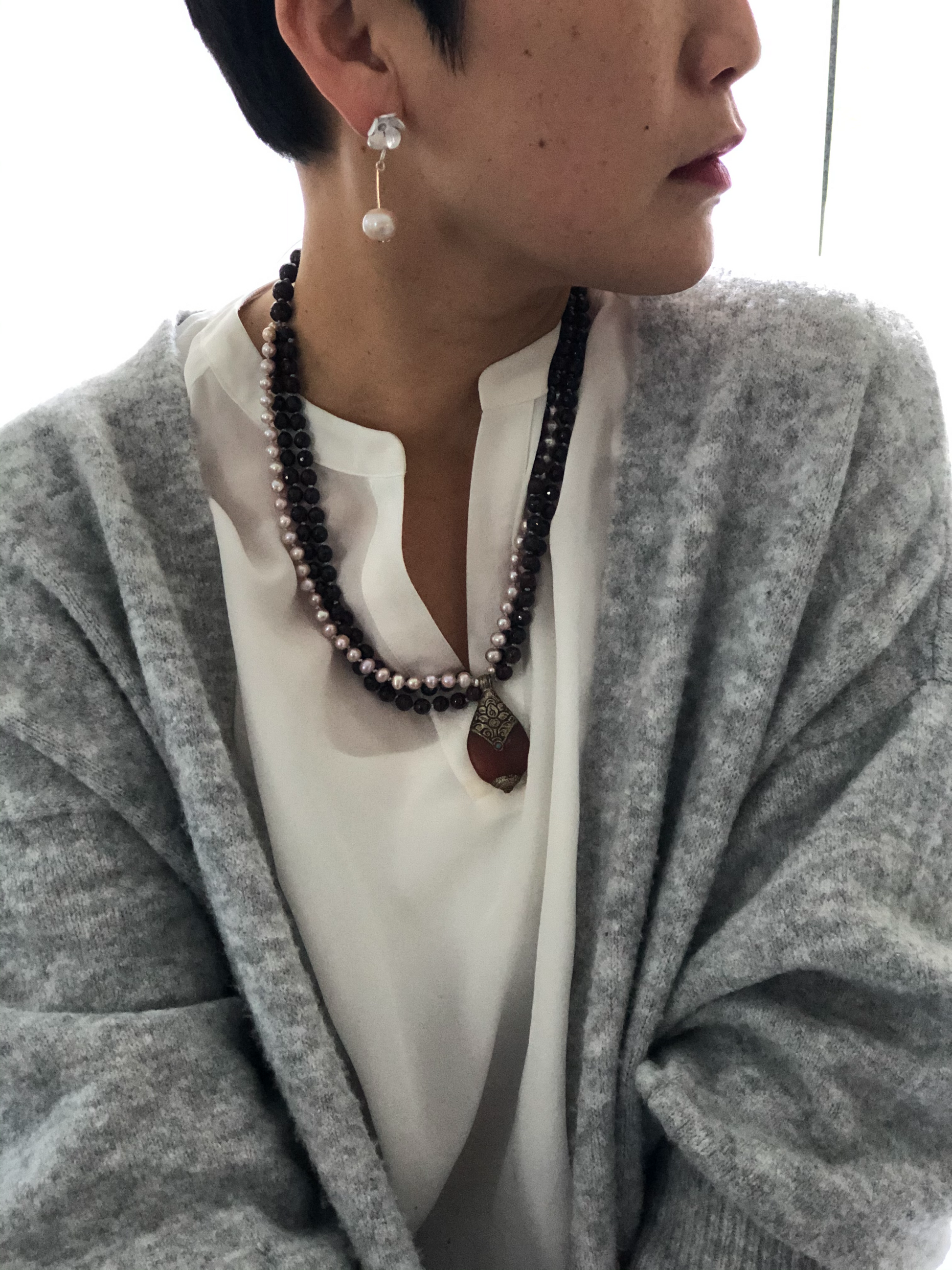 Materials : Garnet, fresh water pearl, Tibetan carnelian pendent