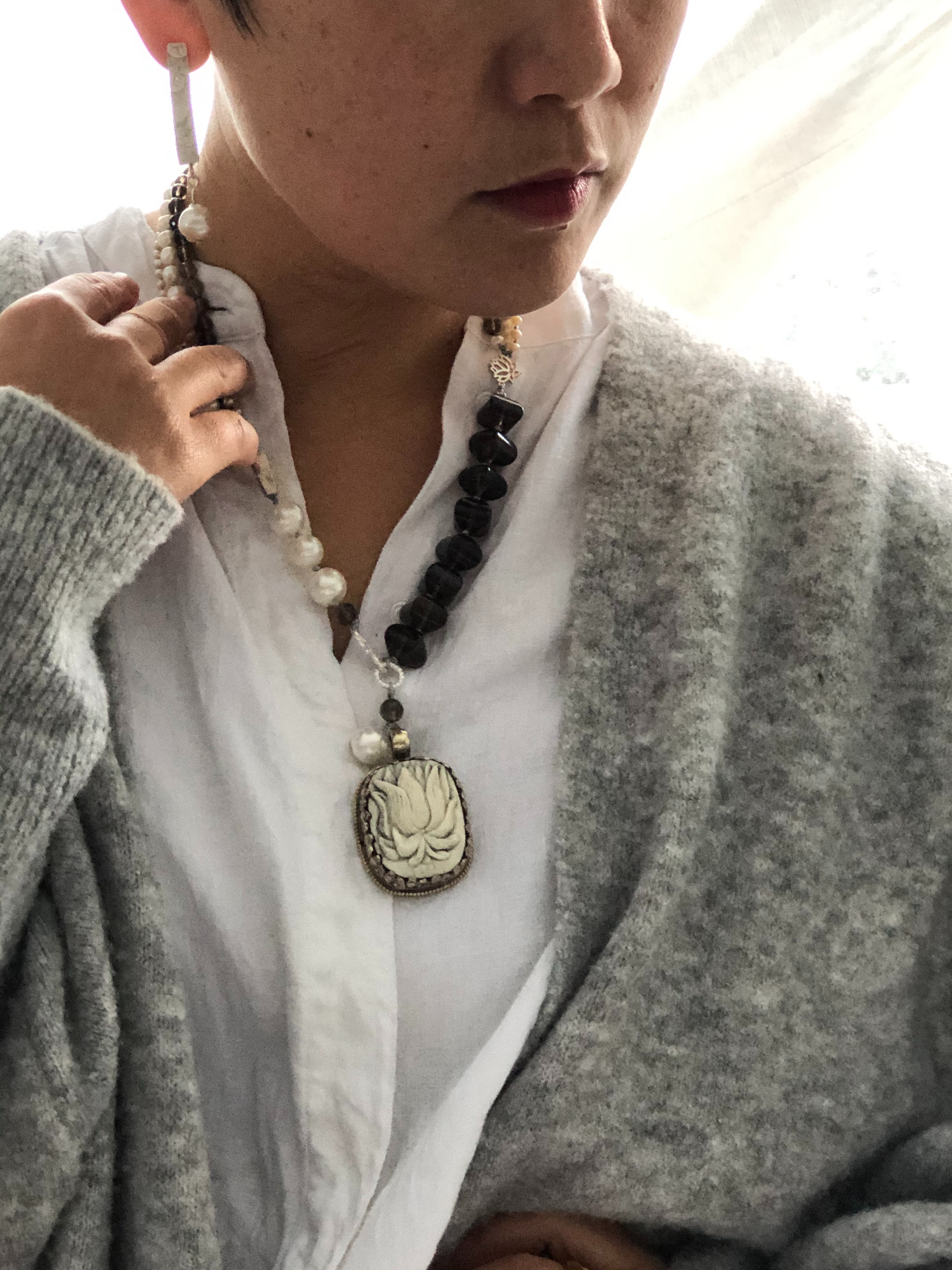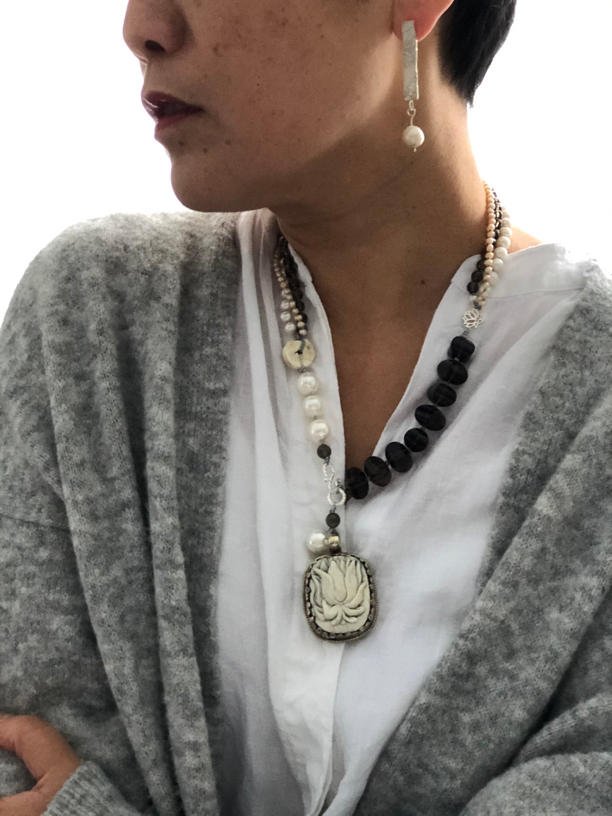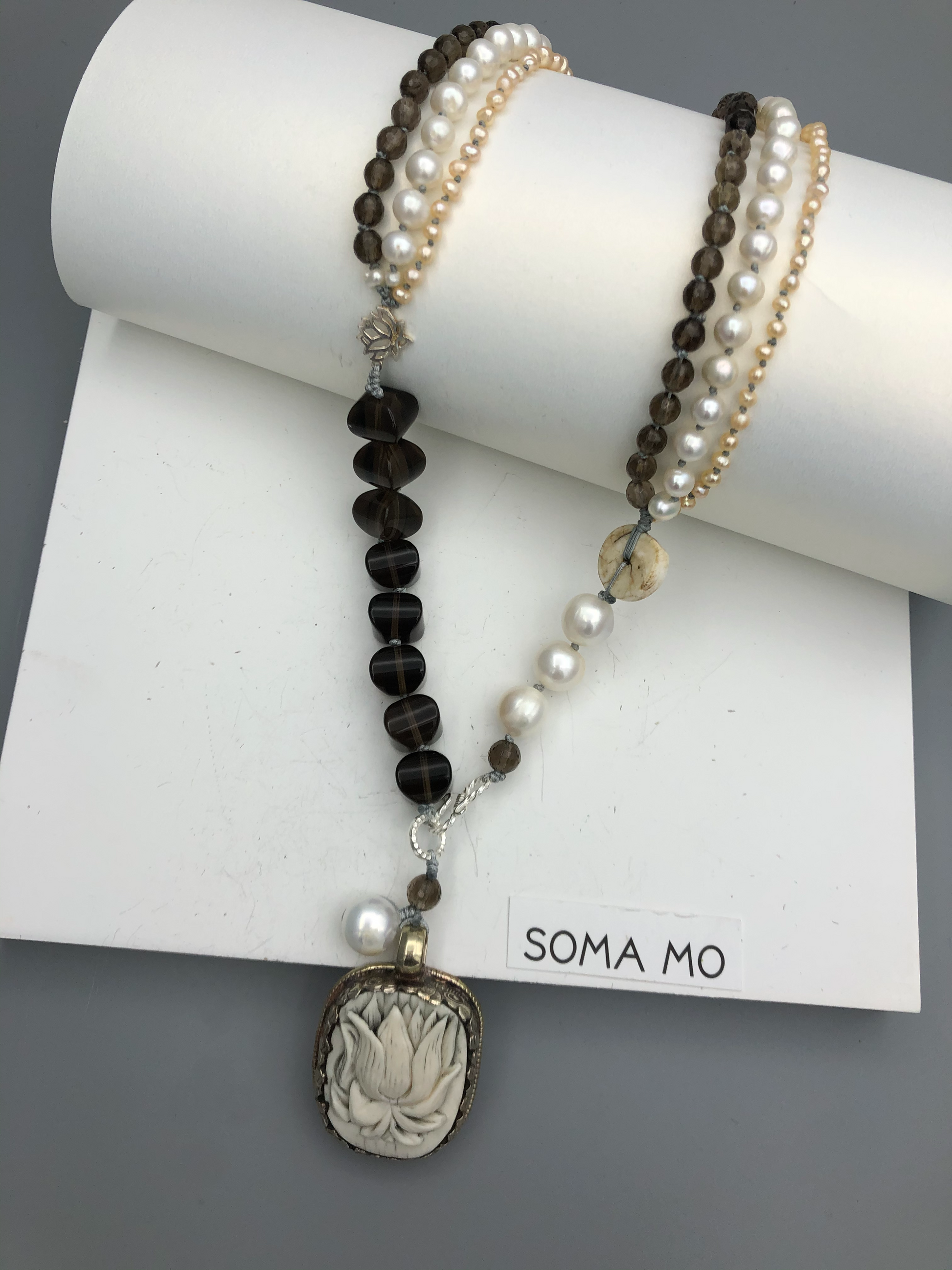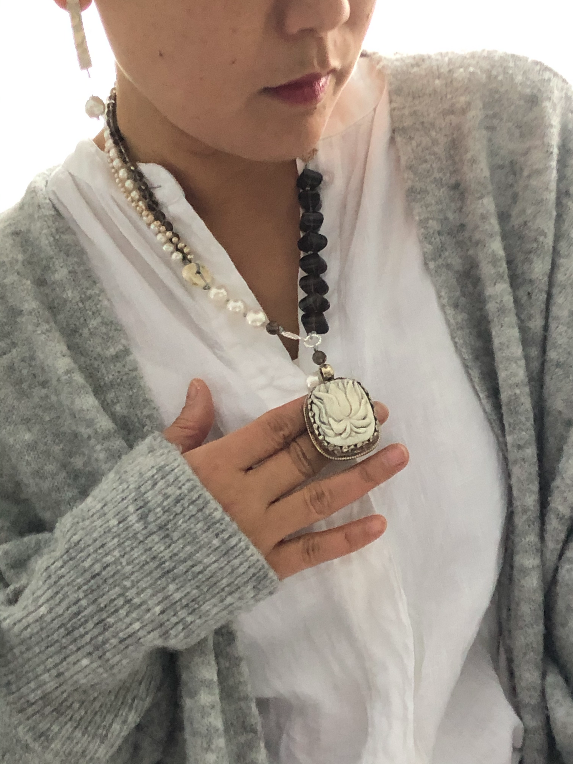 Materials : Smoky quartz, fresh water pearl, Tibetan silver pendent