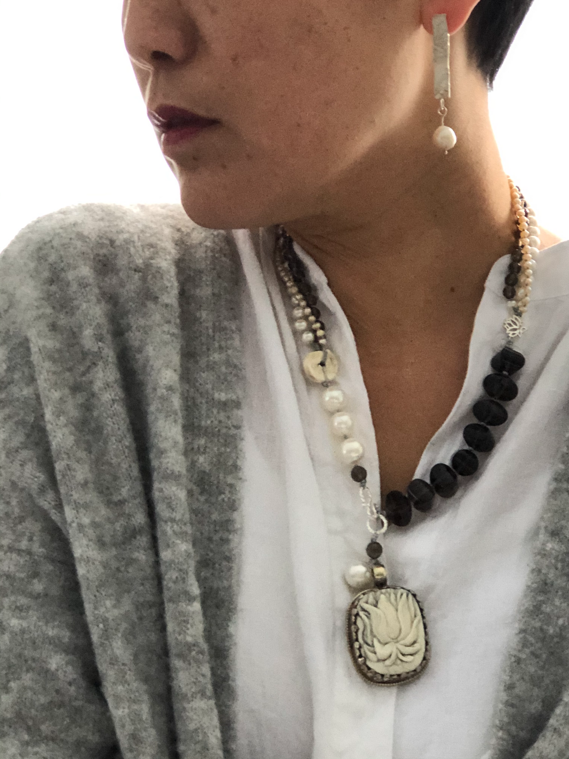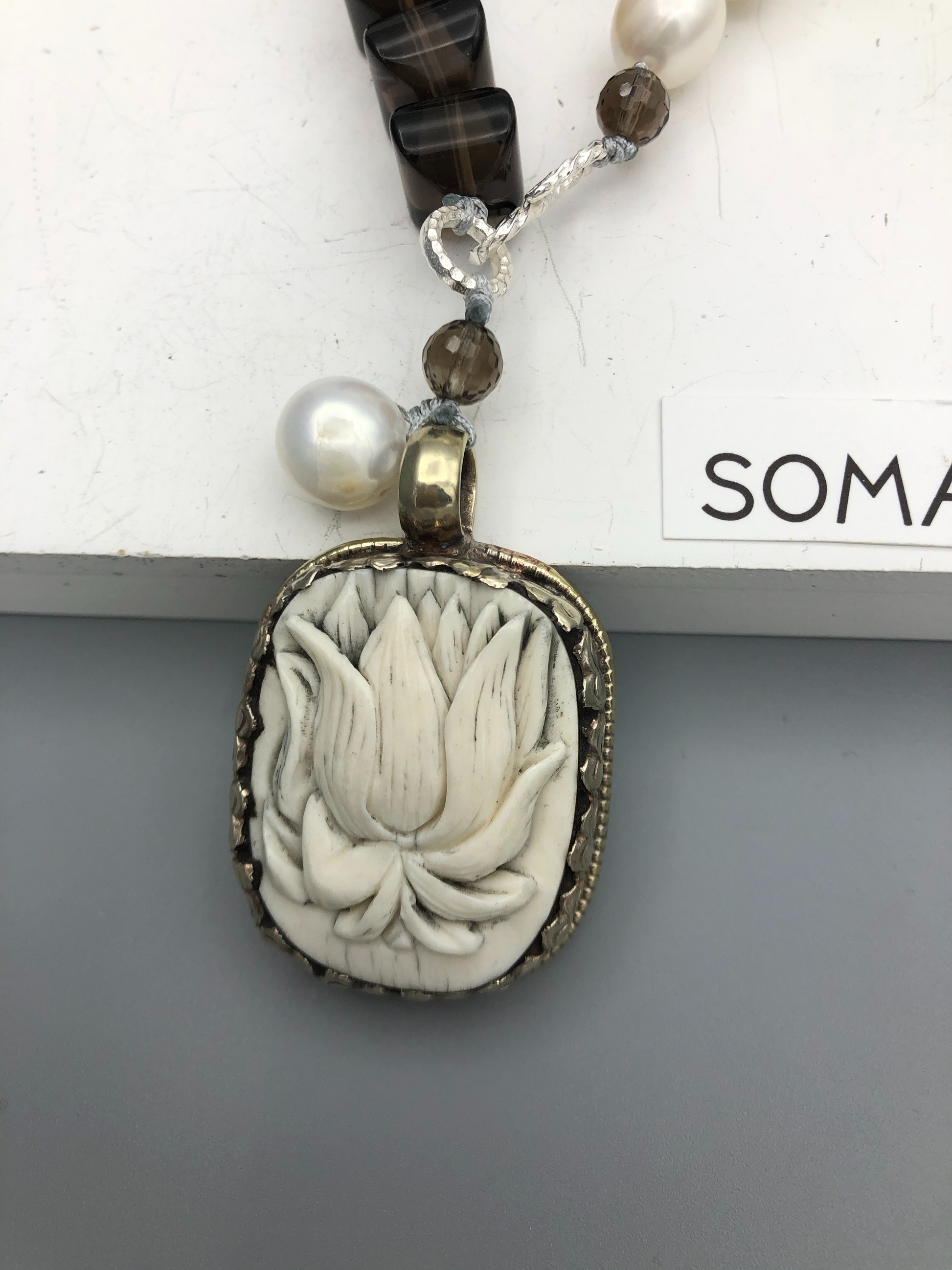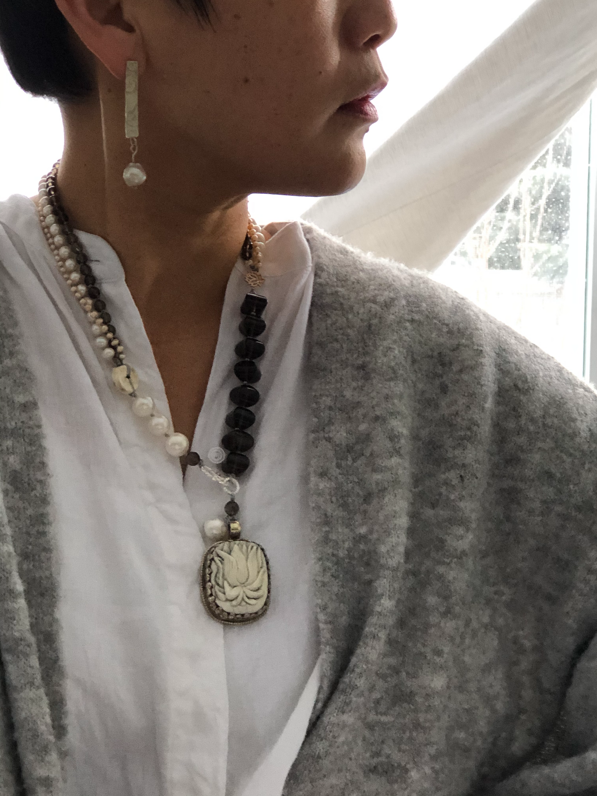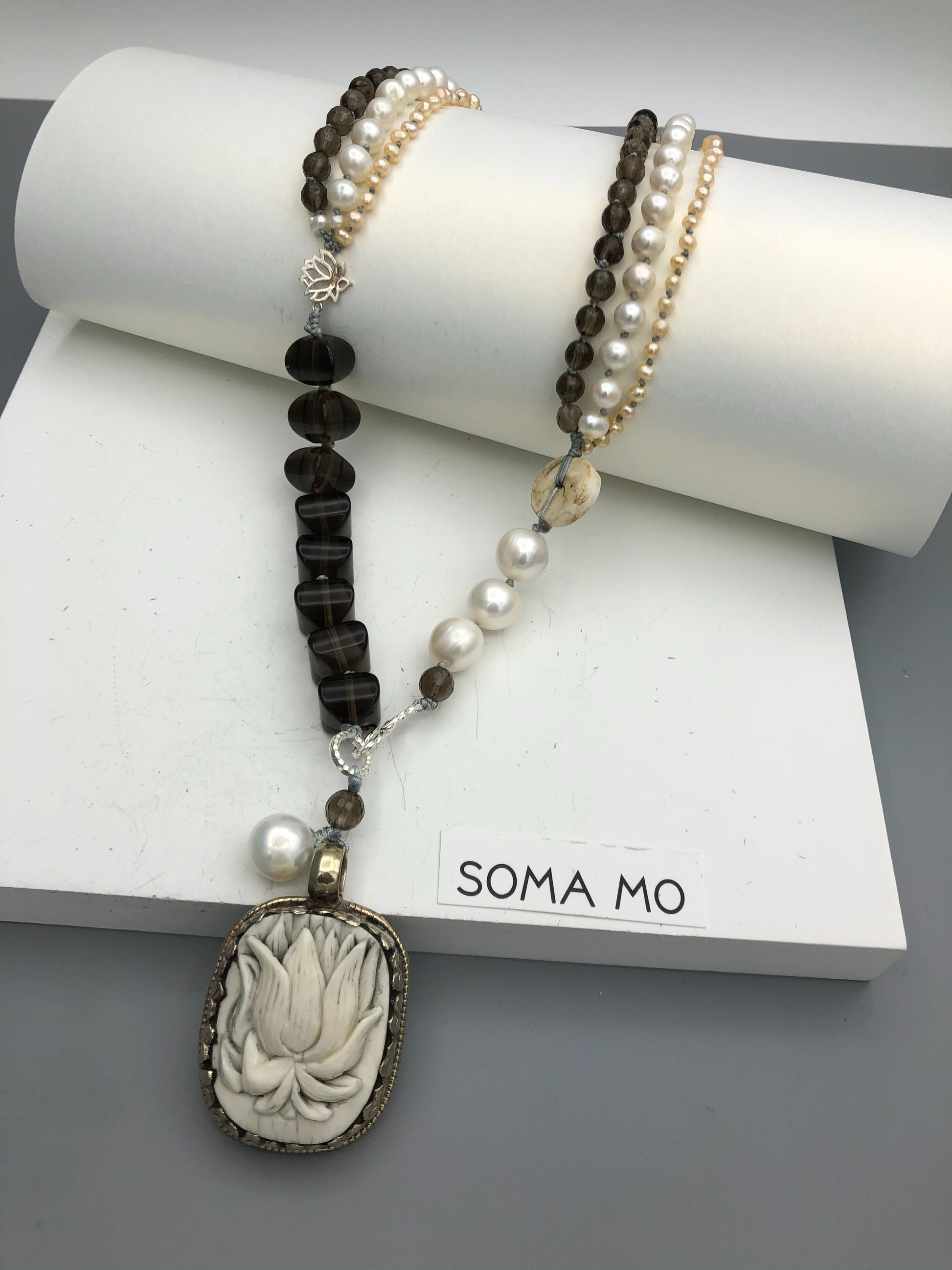 Materials : Smoky quartz, fresh water pearl, Tibetan silver pendent