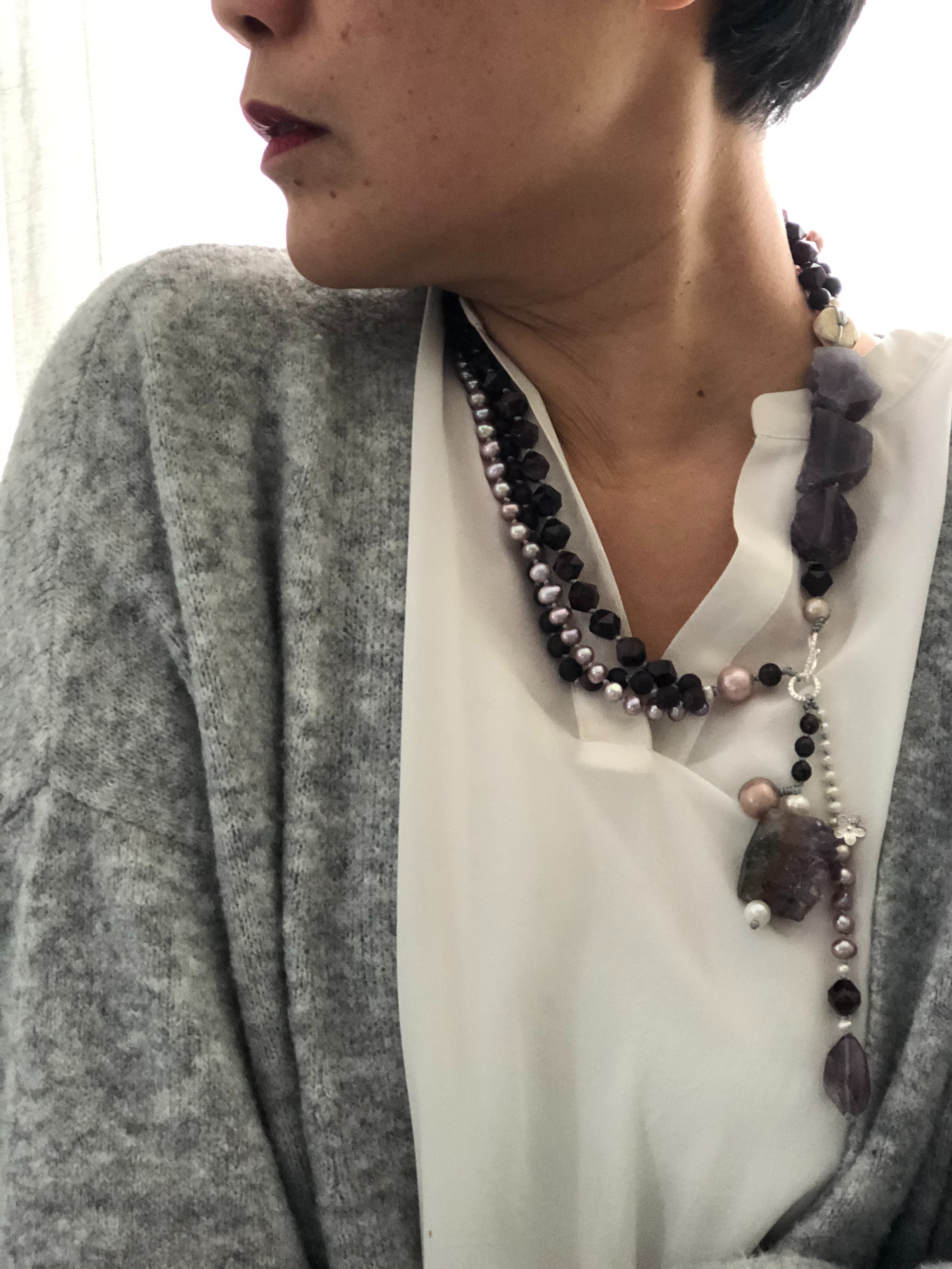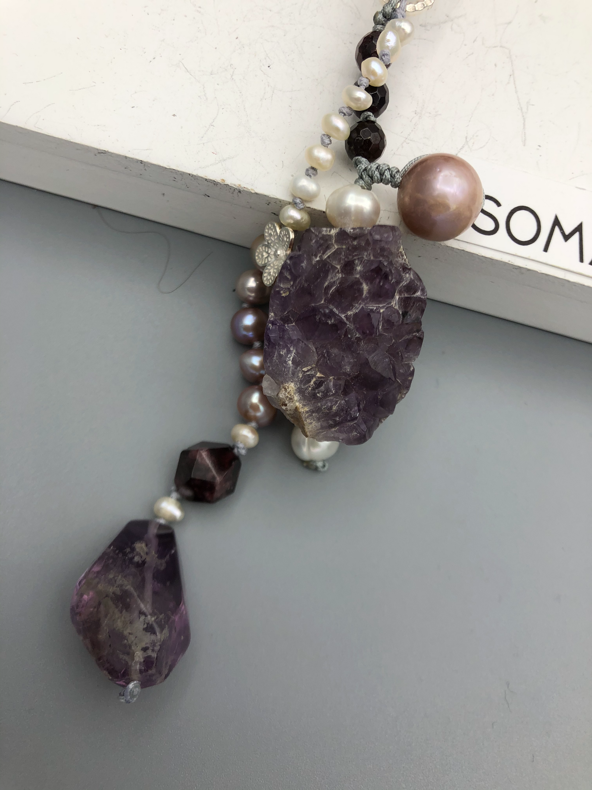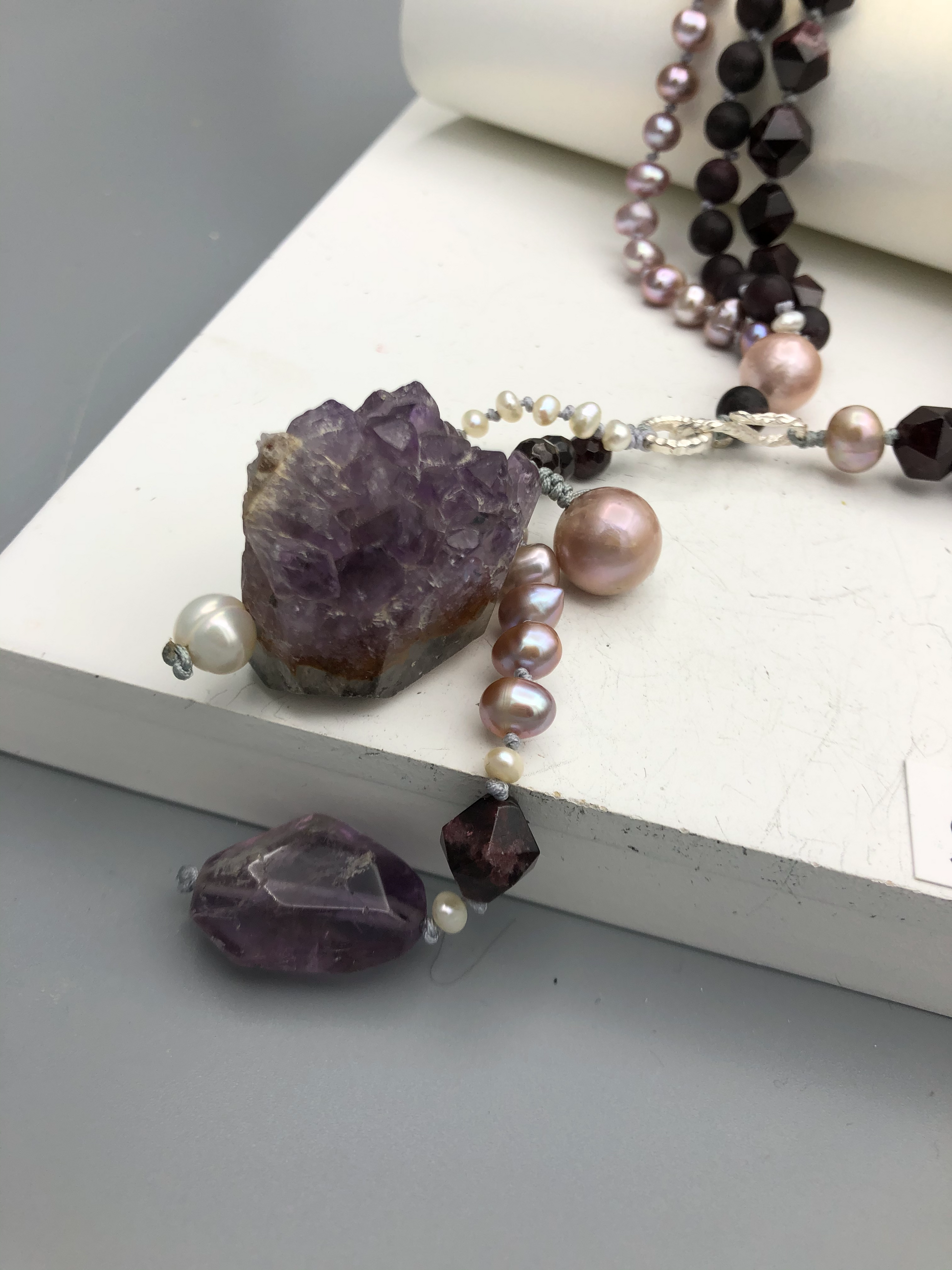Materials : Garnet, amethyst chunk, amethyst, fine silver , fresh water pearl