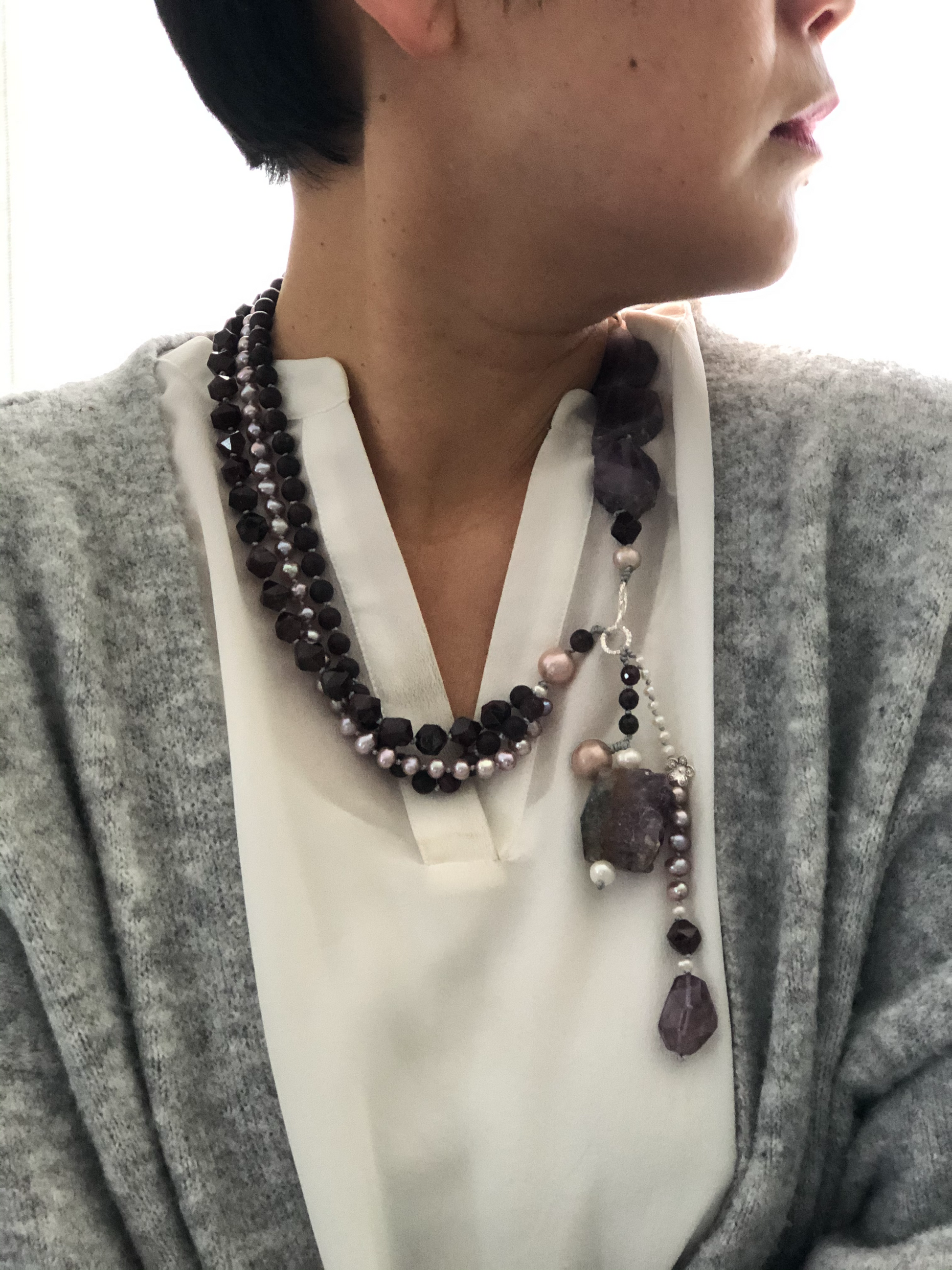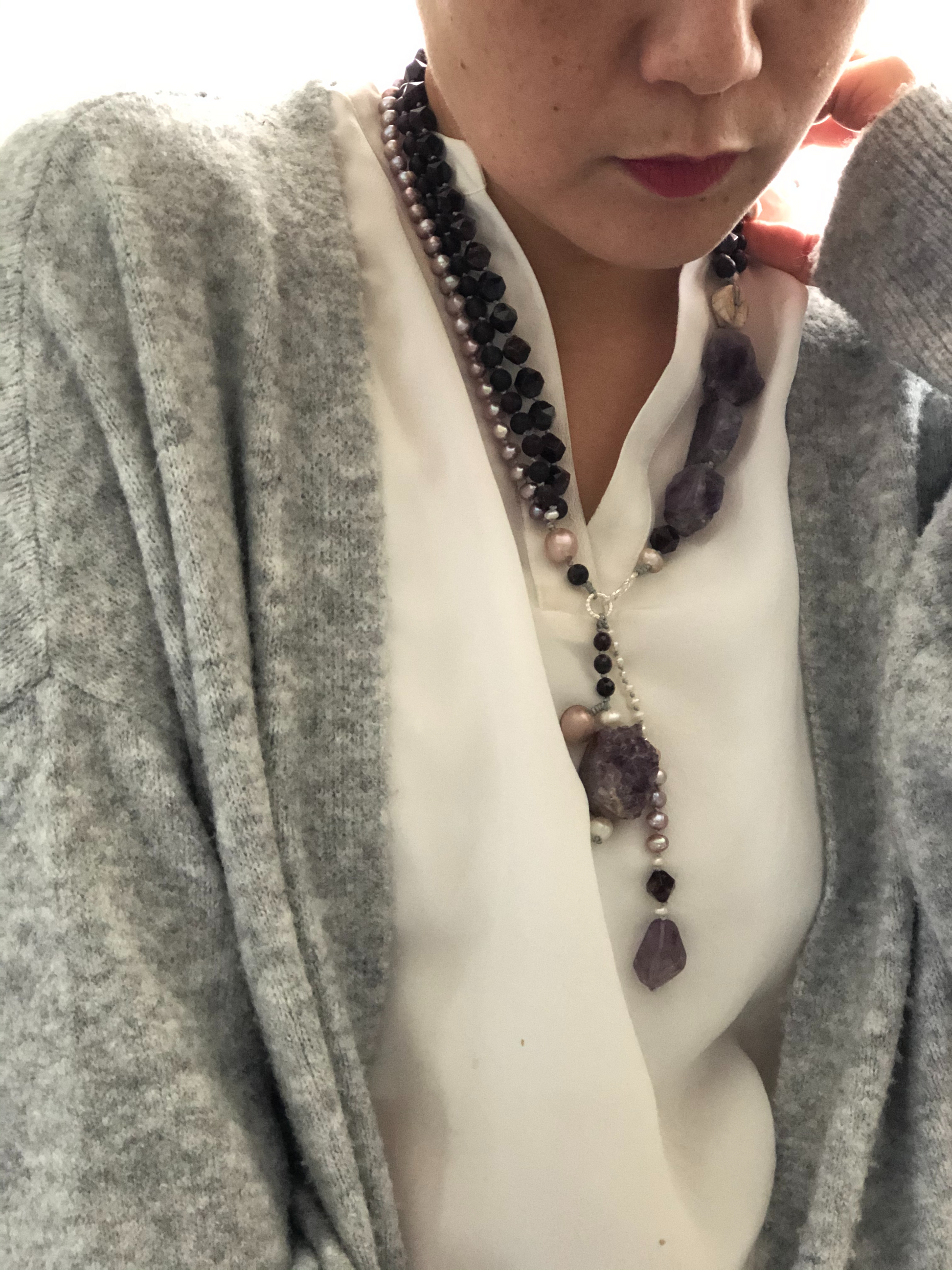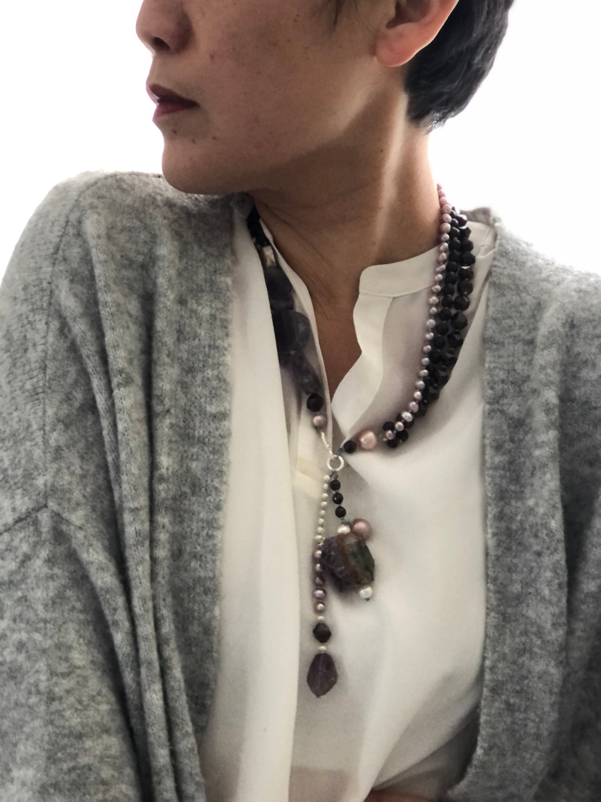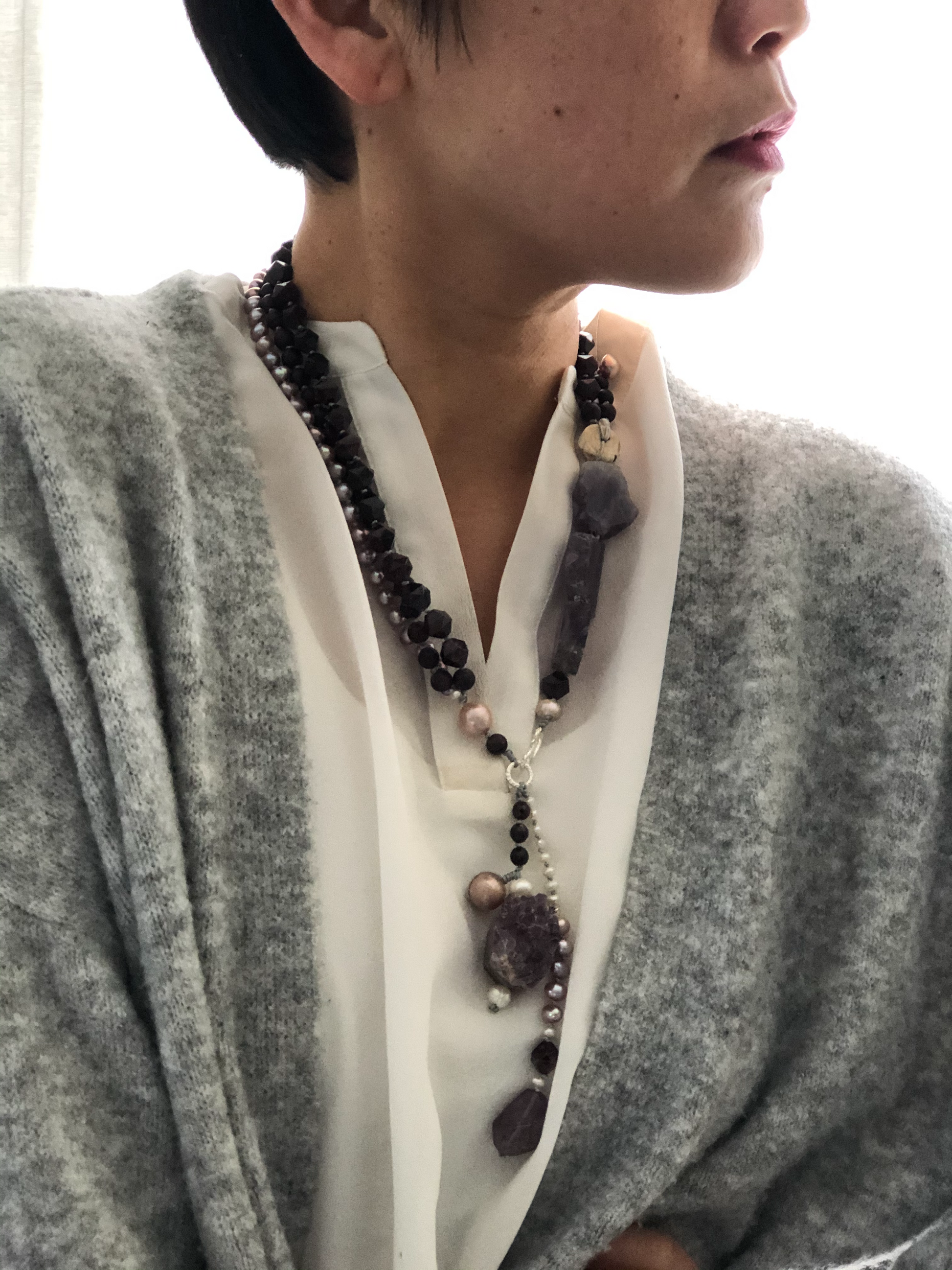 Materials : Garnet, amethyst chunk, amethyst, fine silver , fresh water pearl