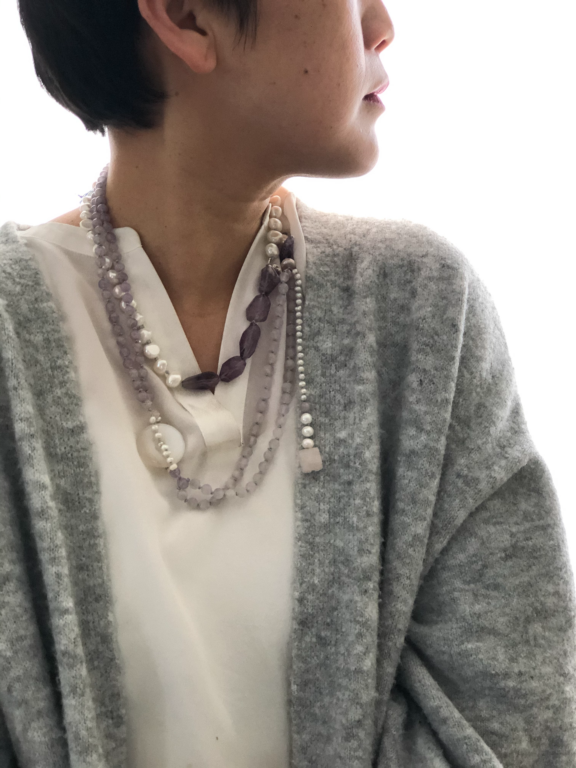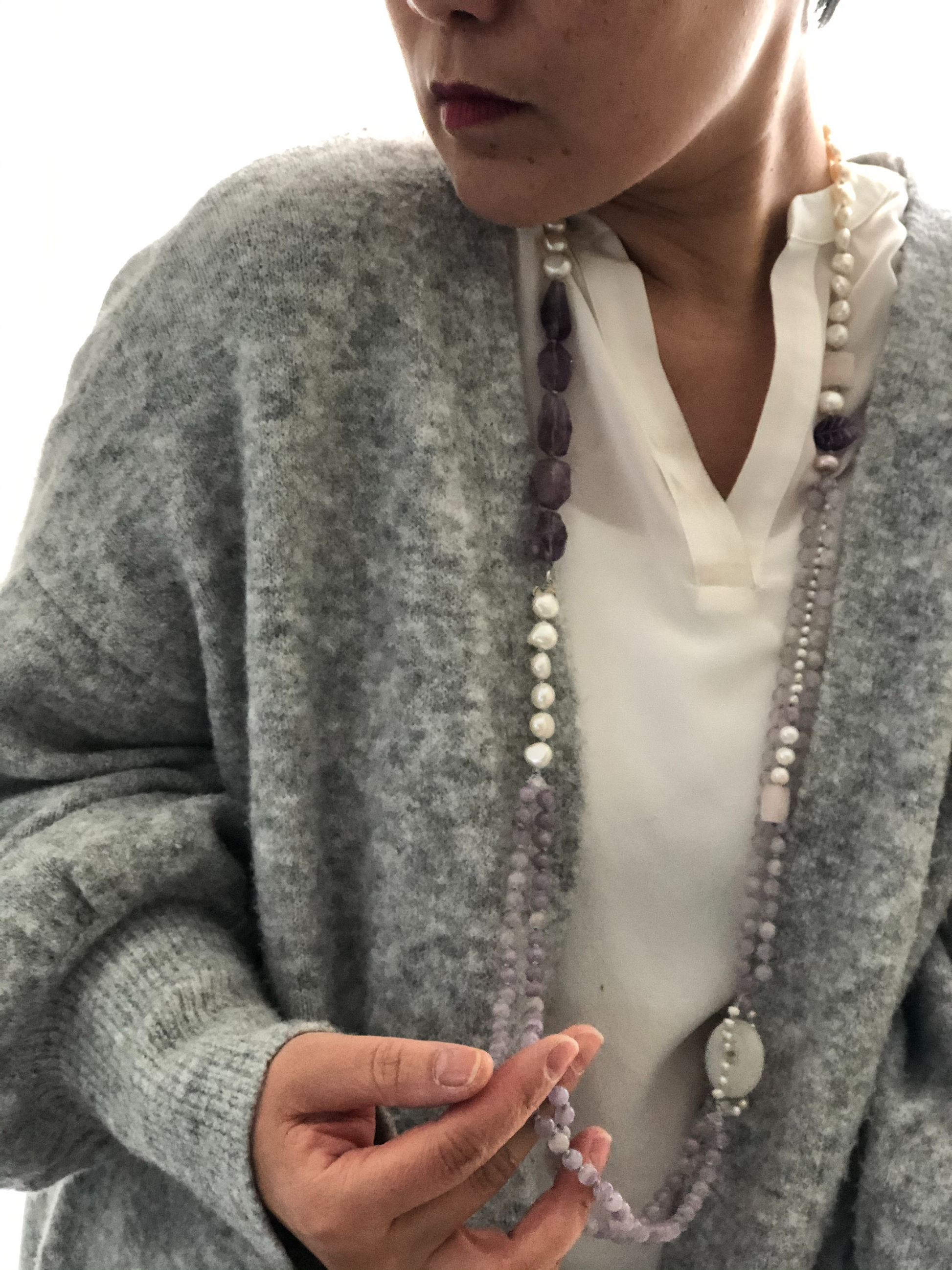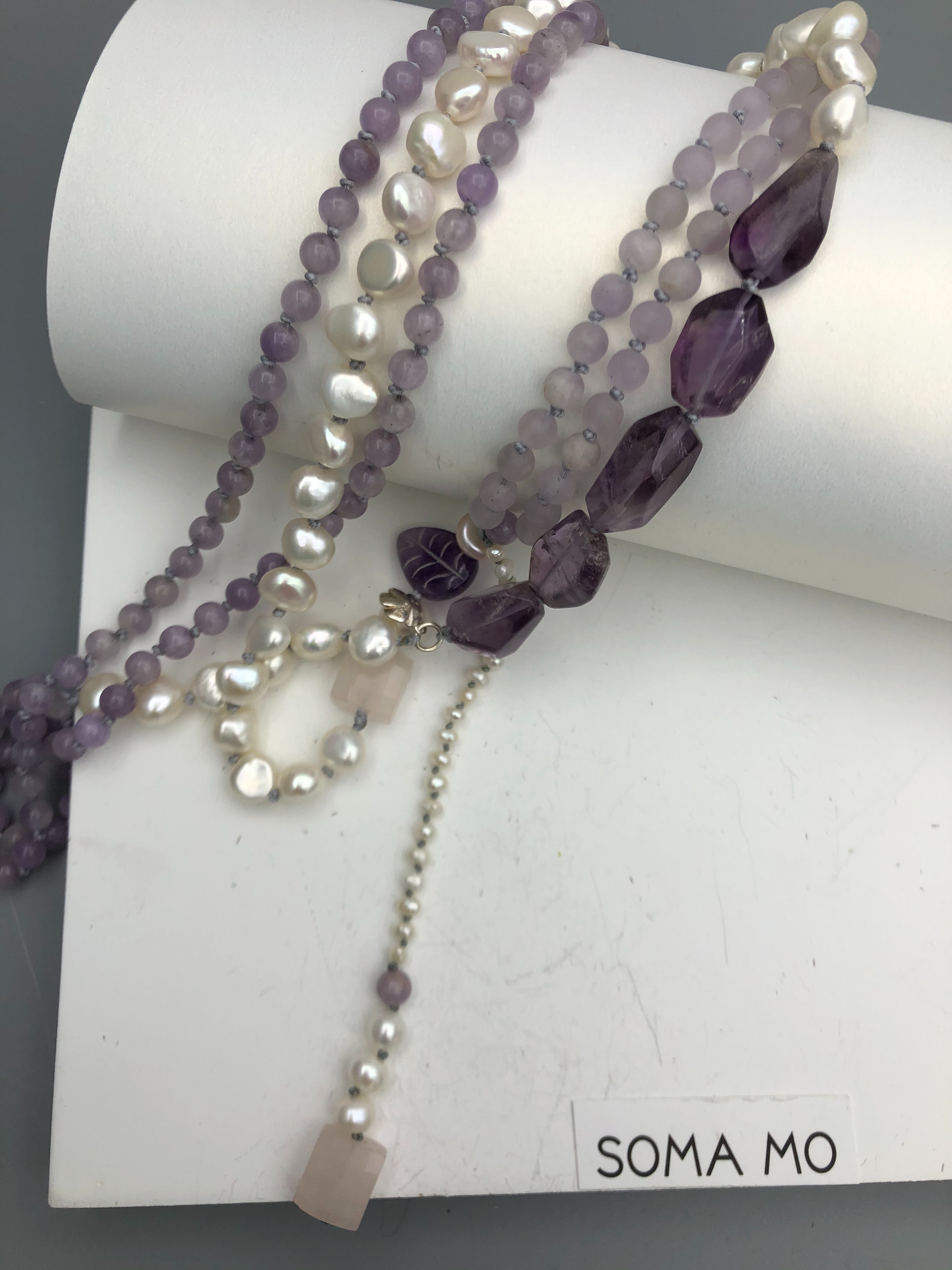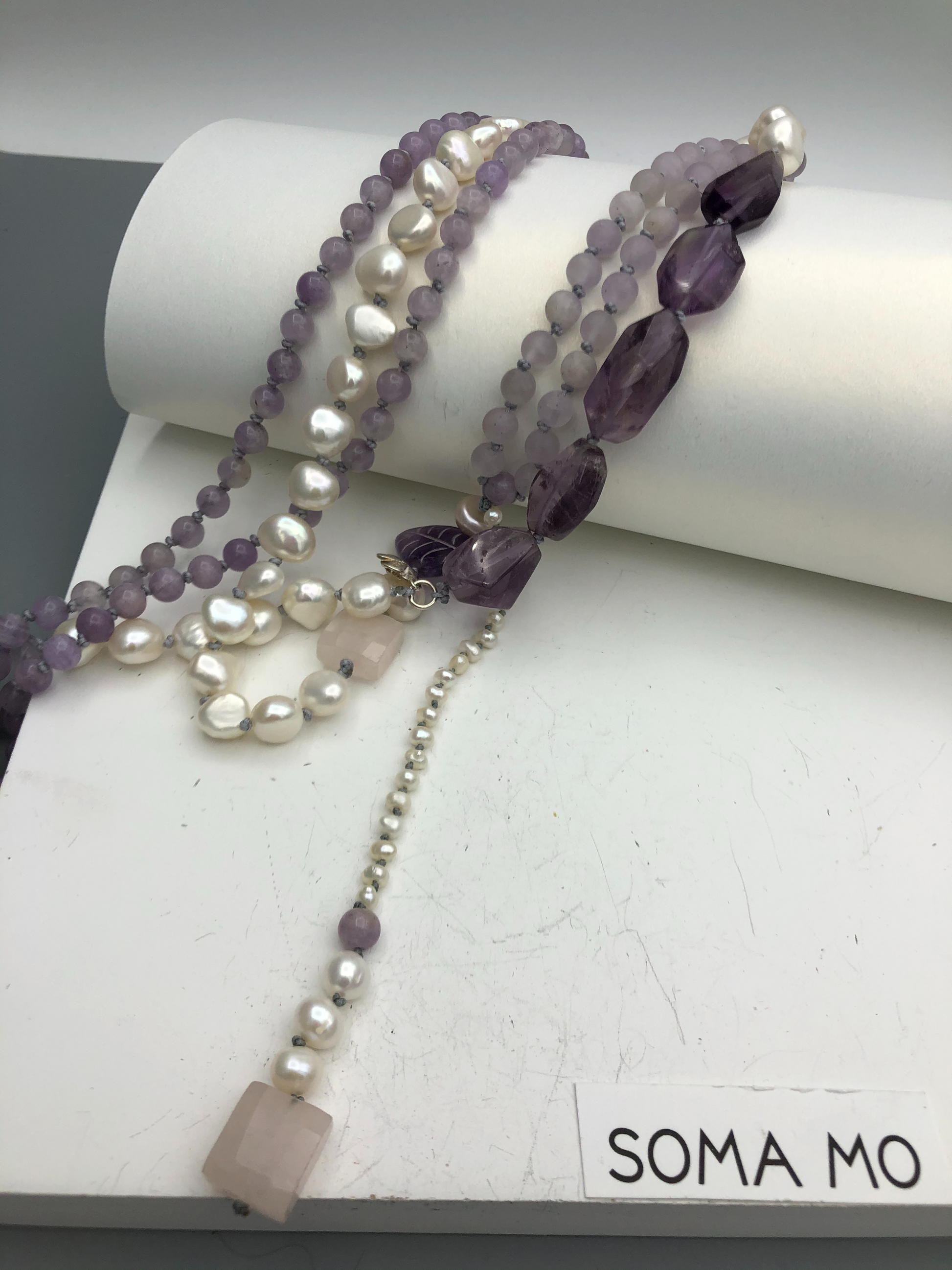 Materials : Amethyst, rose quartz, fresh water pearl, agate