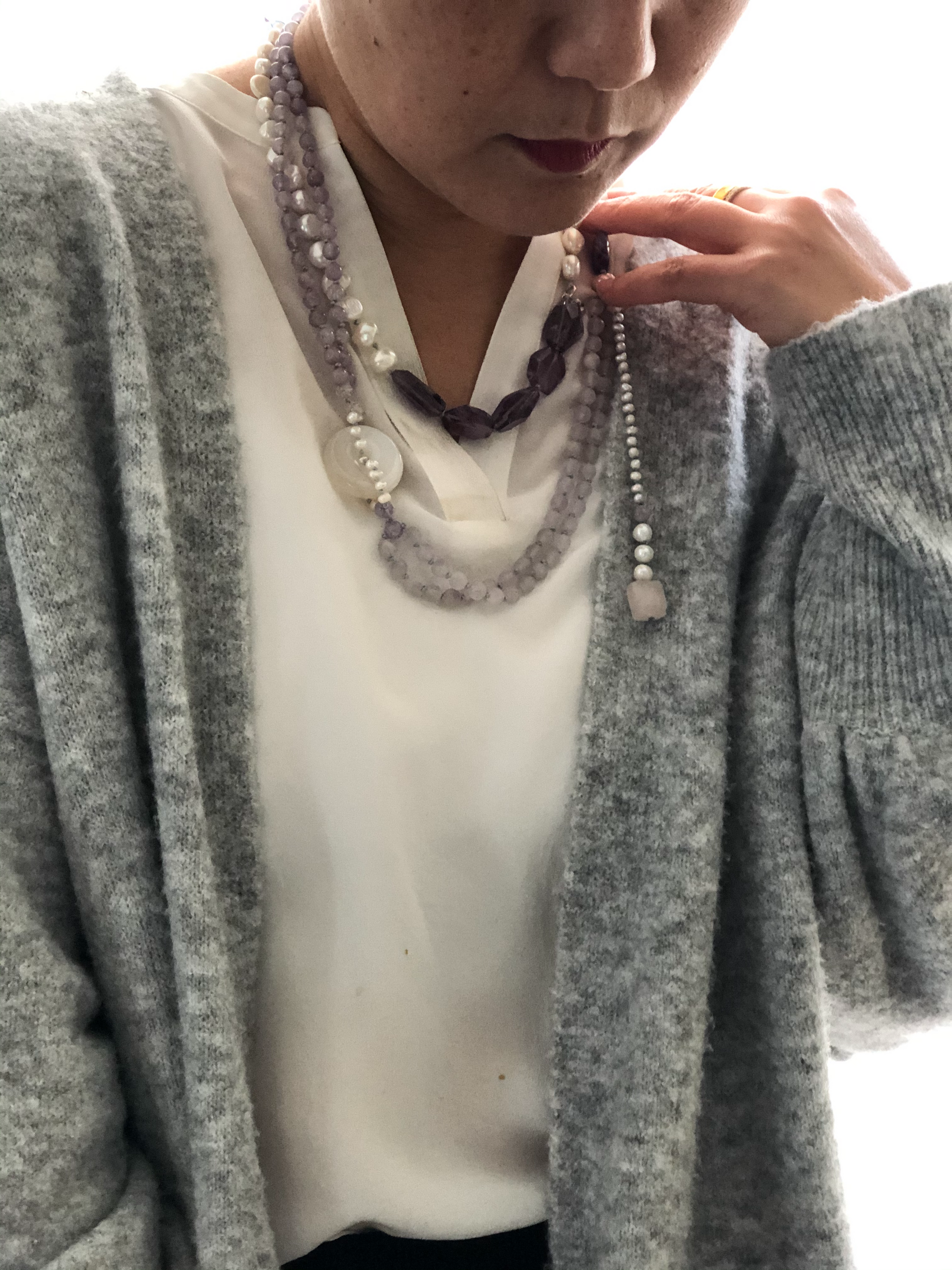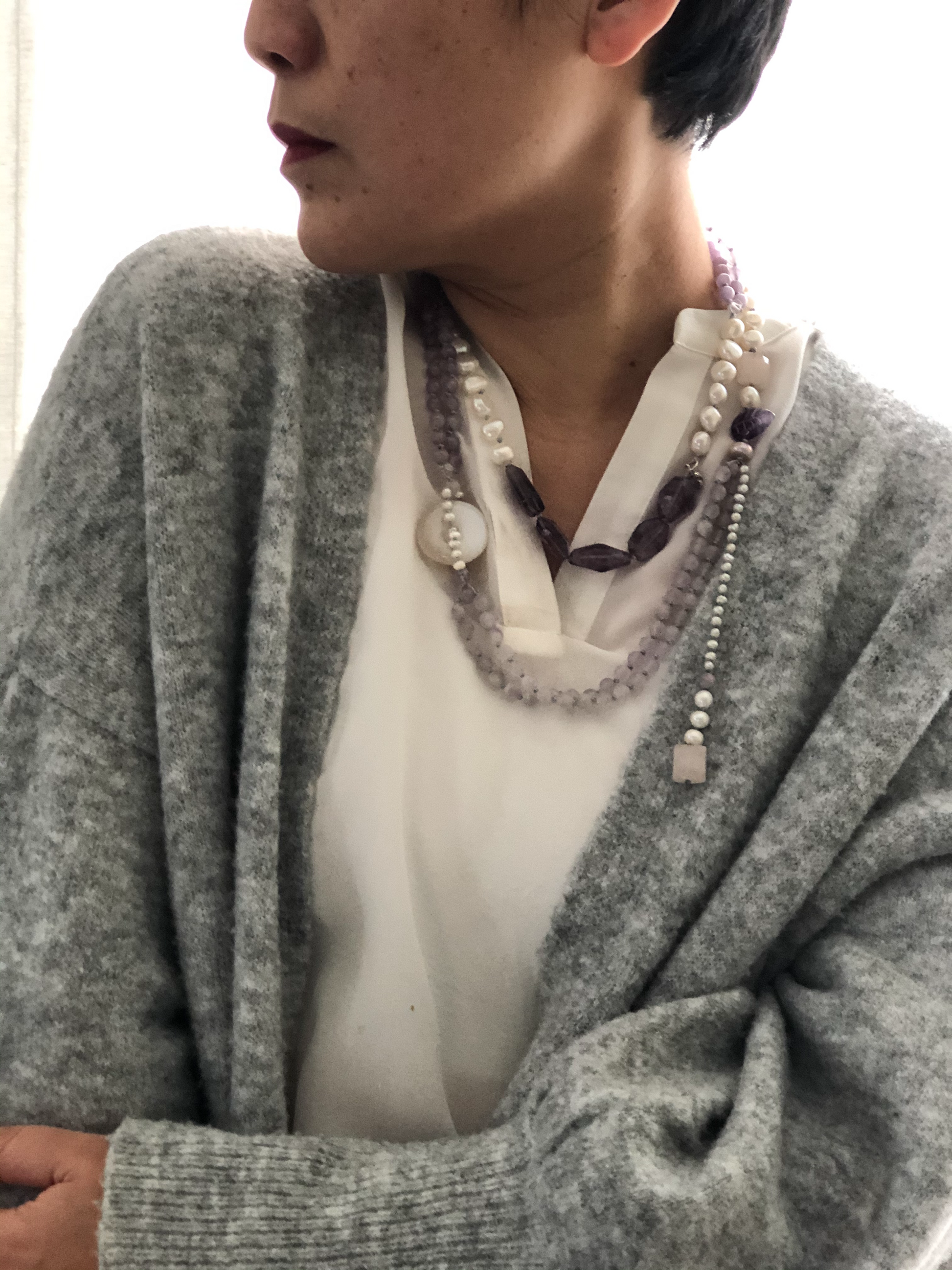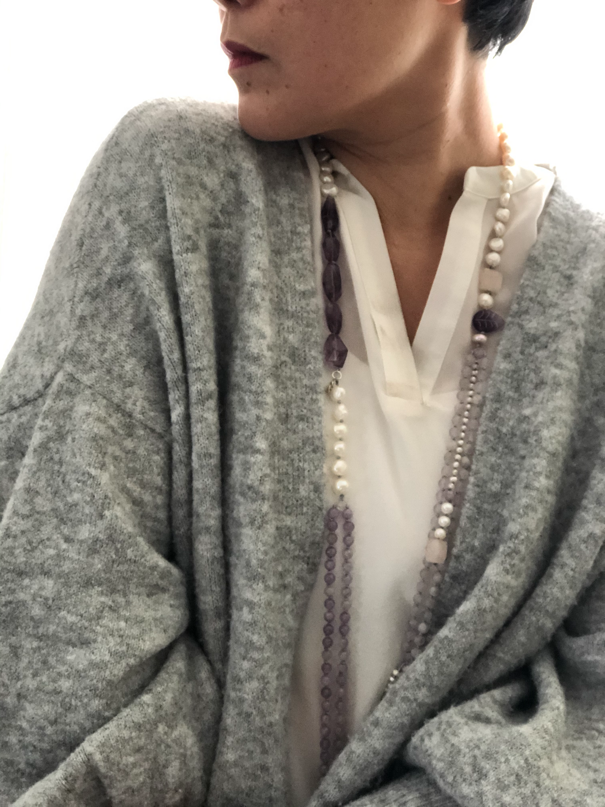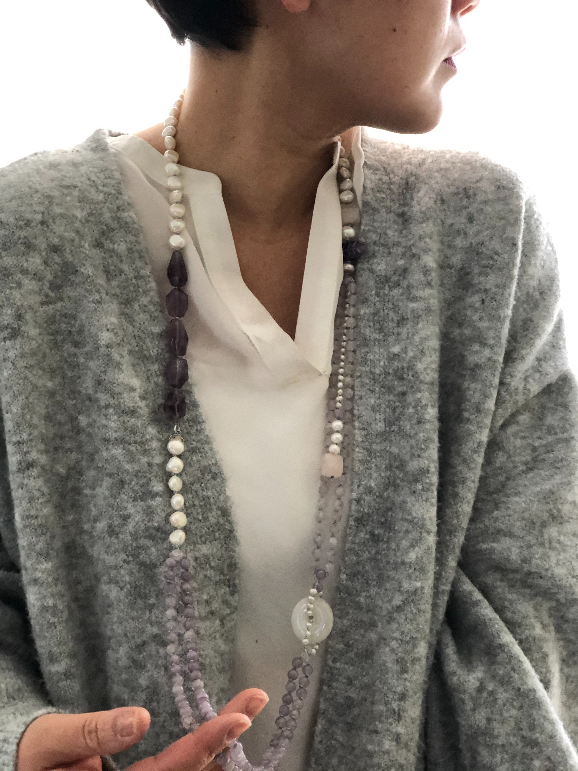 Materials : Amethyst, rose quartz, fresh water pearl, agate
