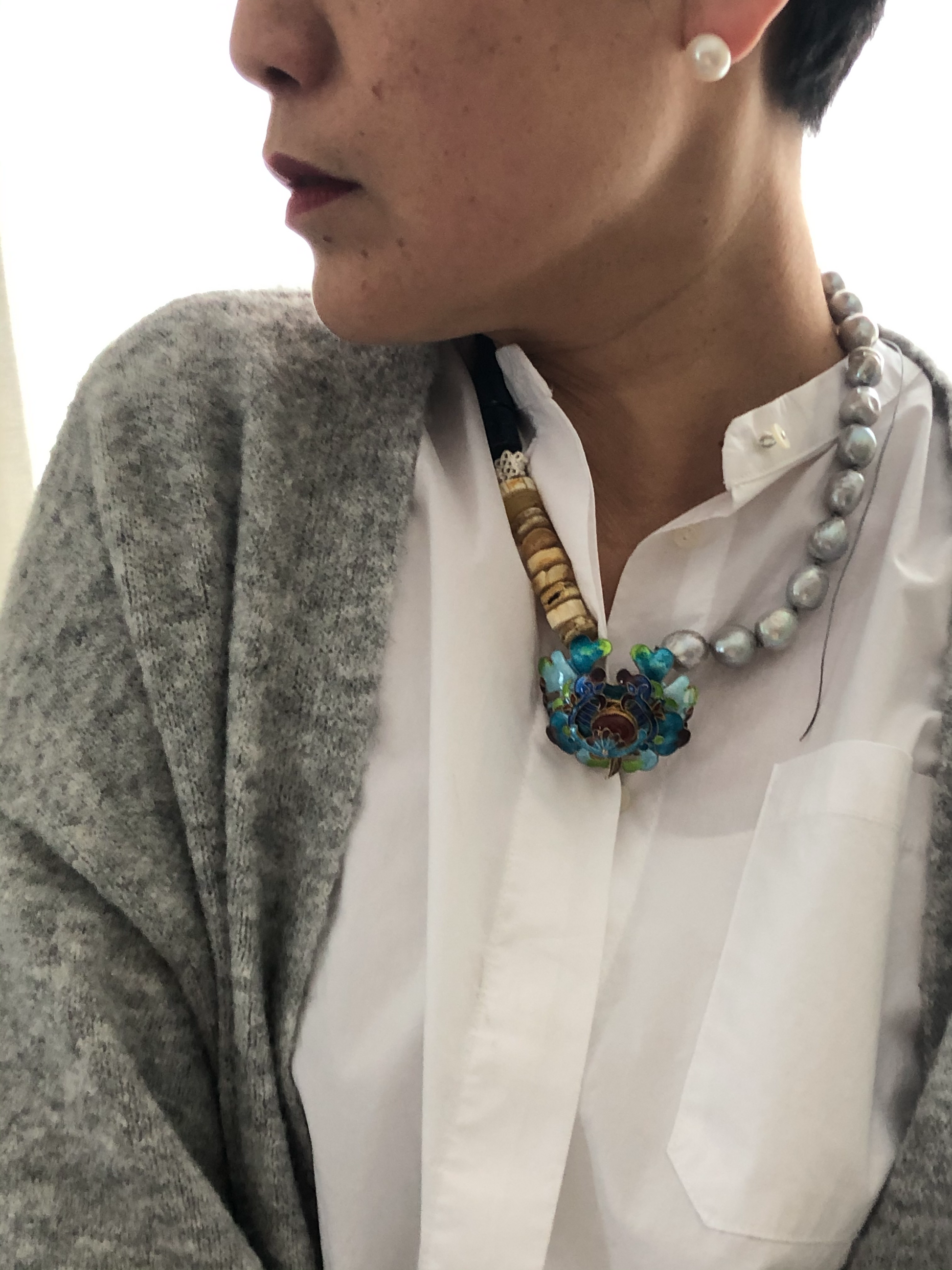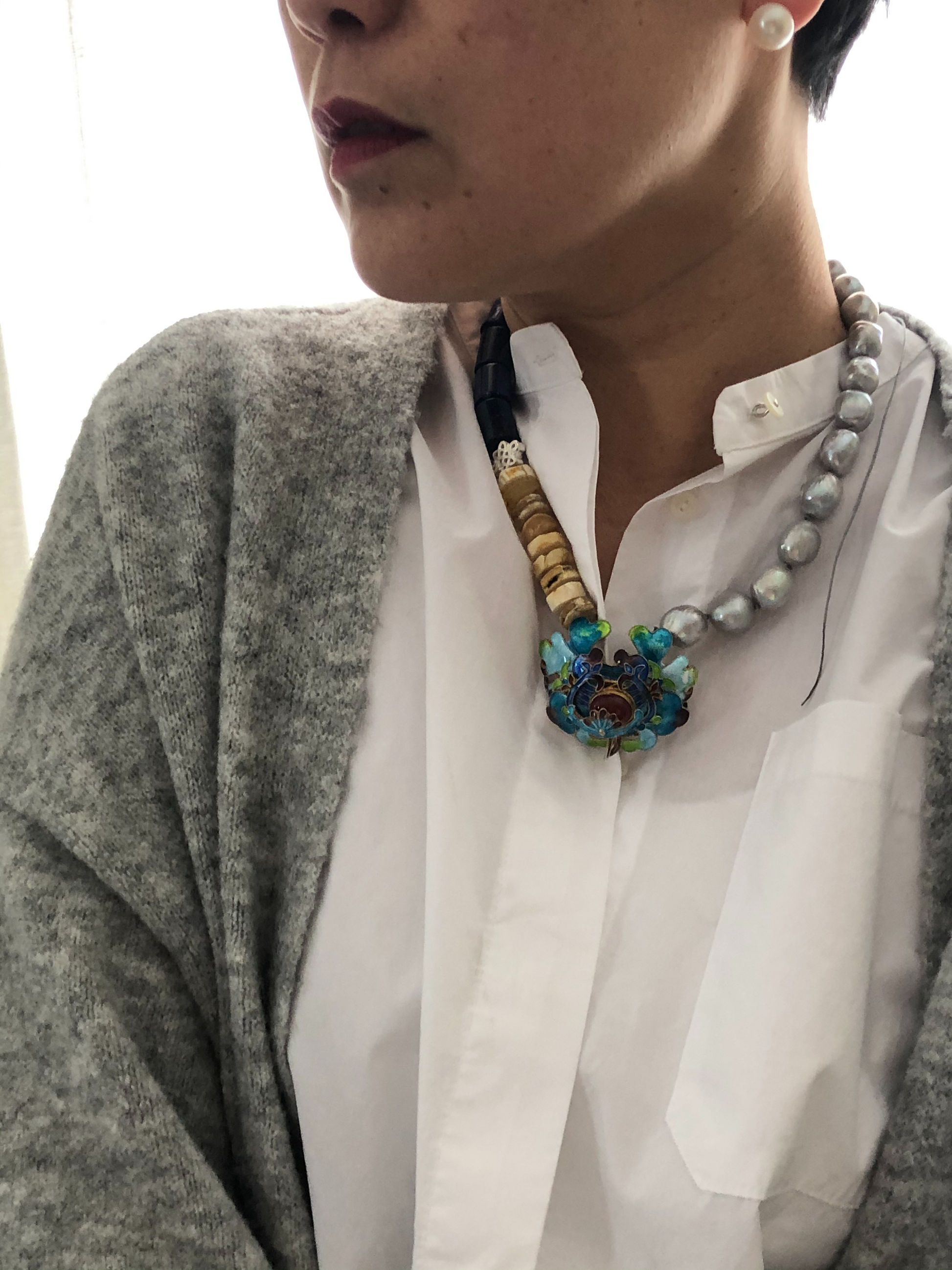 Antique silver enamal 3D pendent . Hand knotted between each beads, can be resized for special request.
