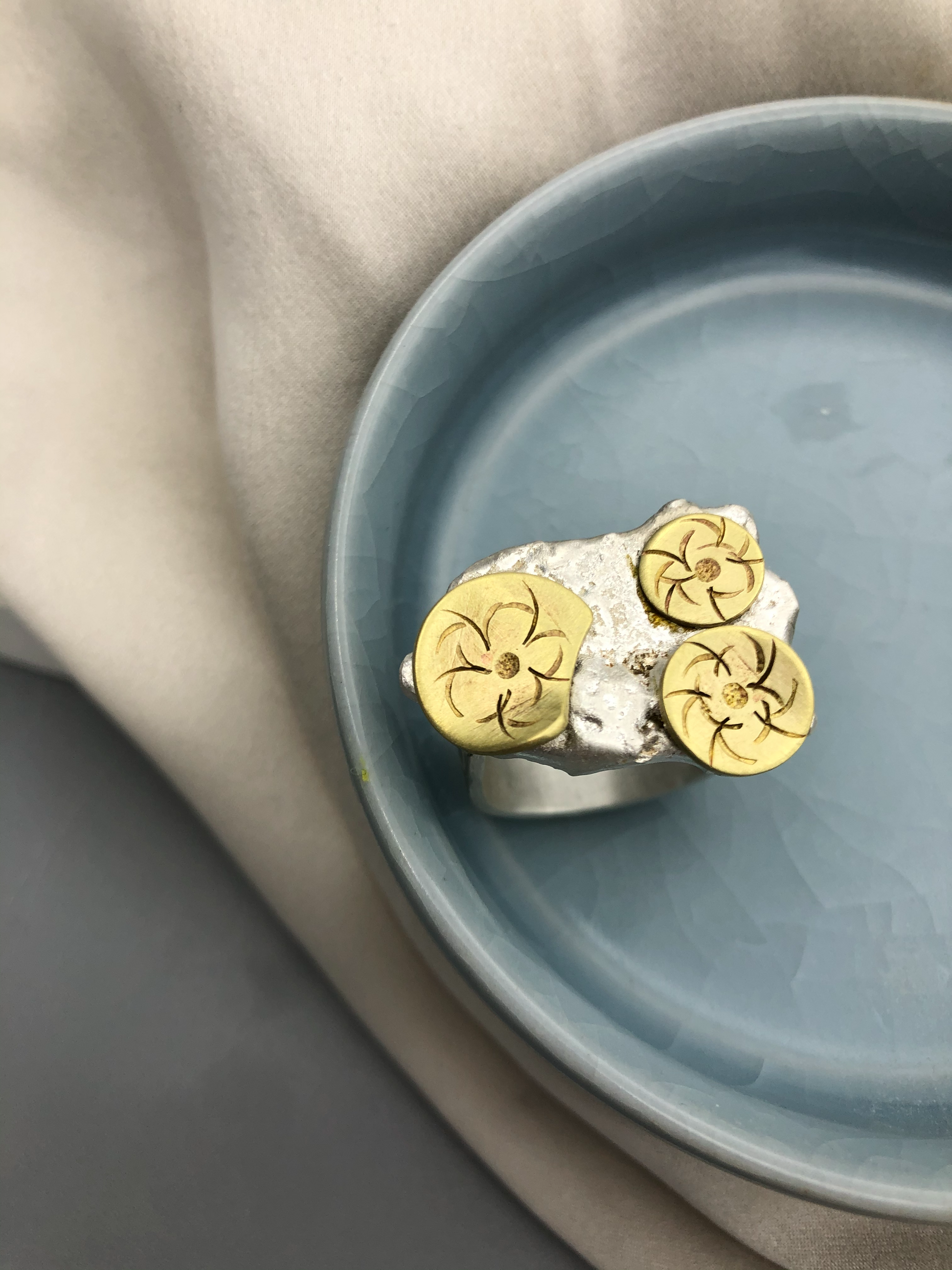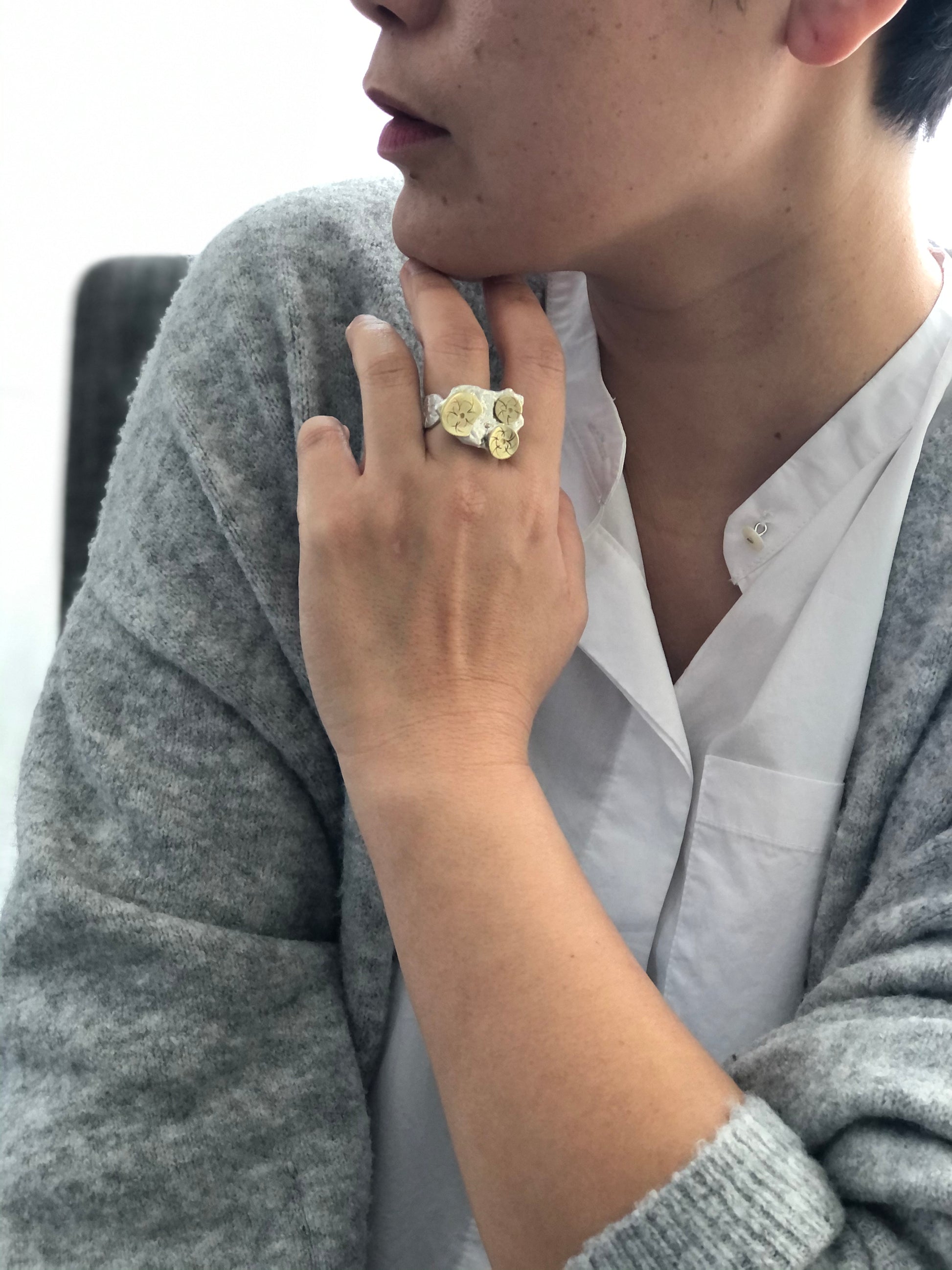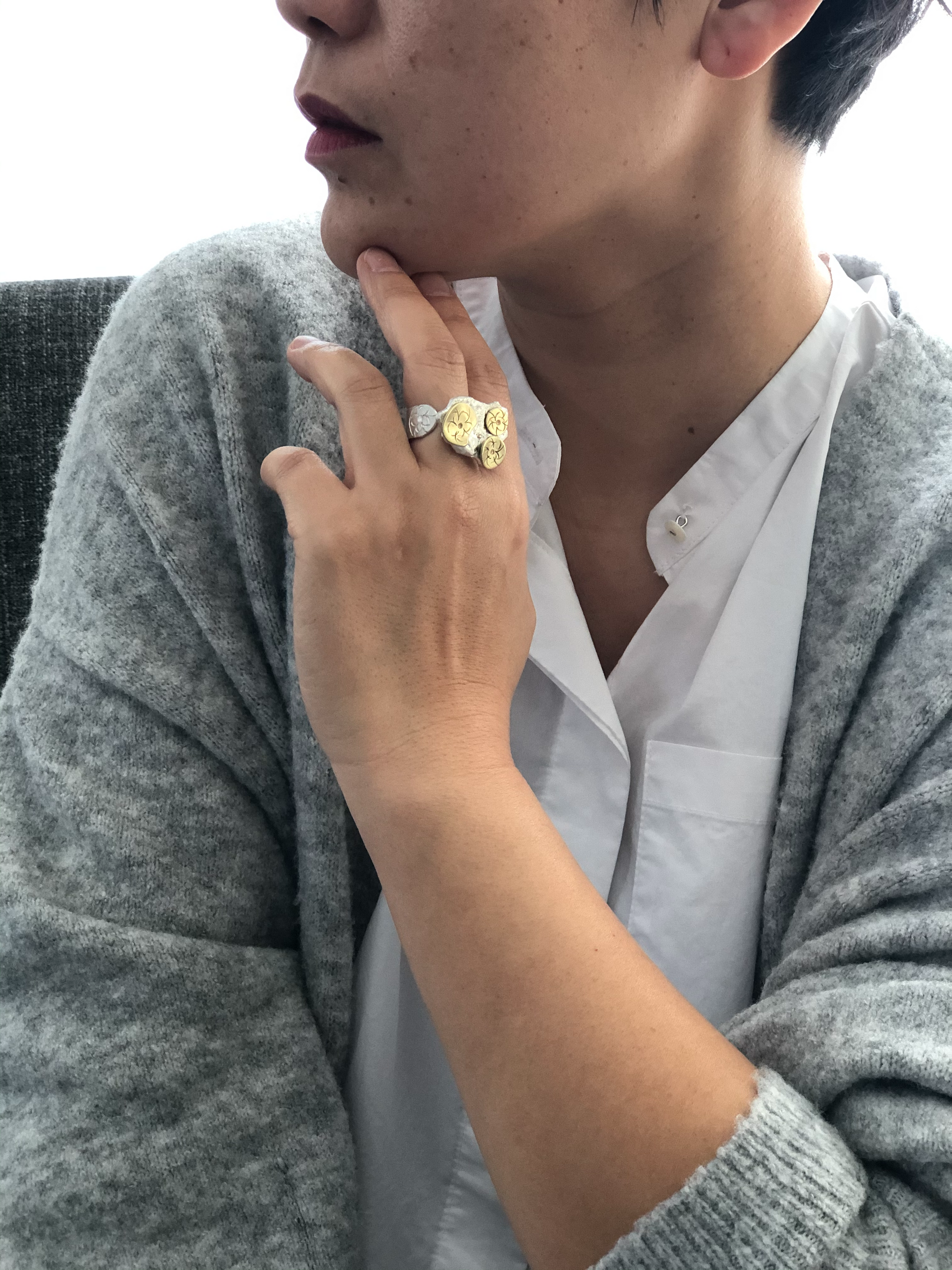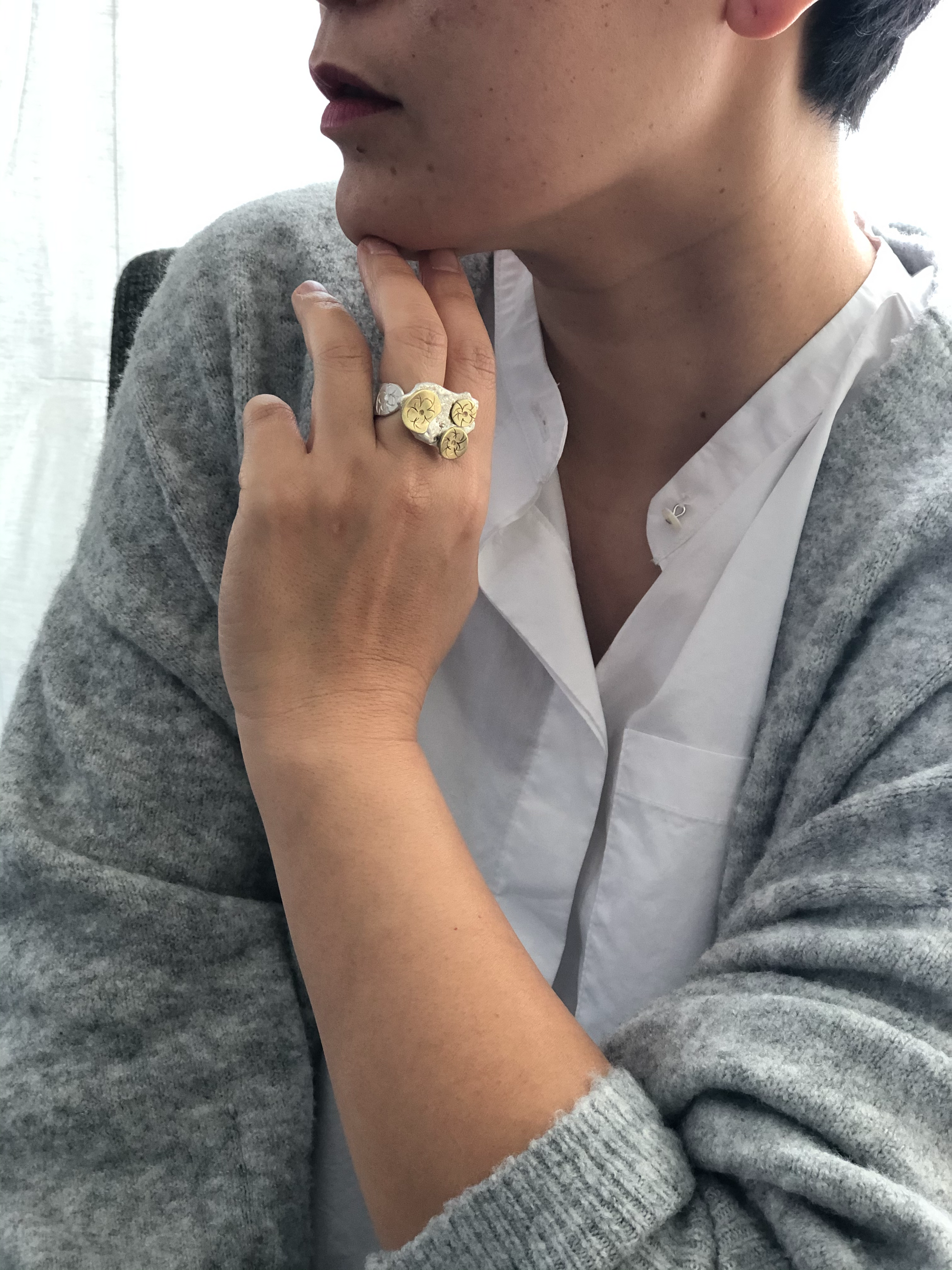 New collection that came from inspiration from silver scrapt. Each piece of silver melt is different and organic shape, and each piece is different designs.
