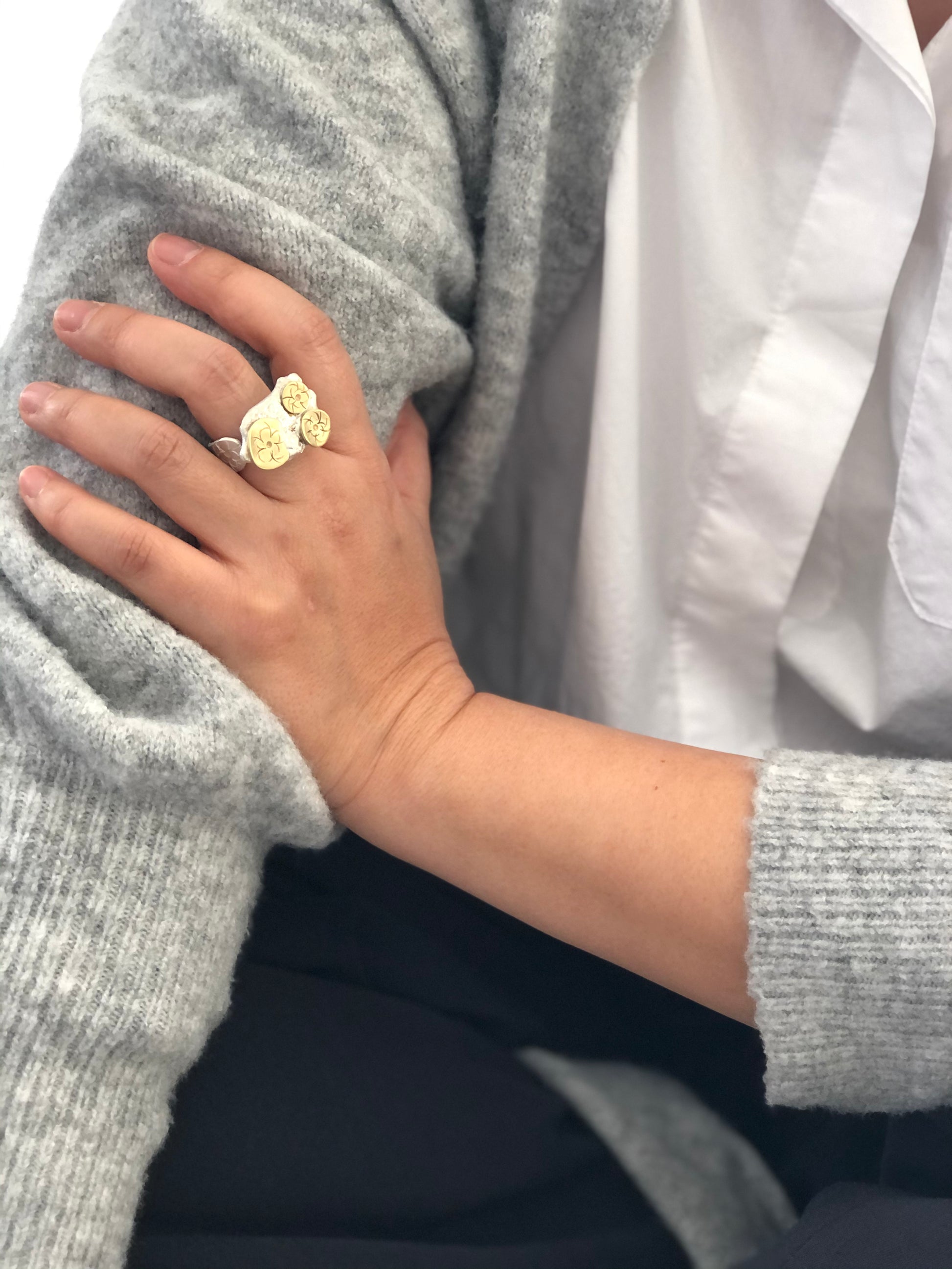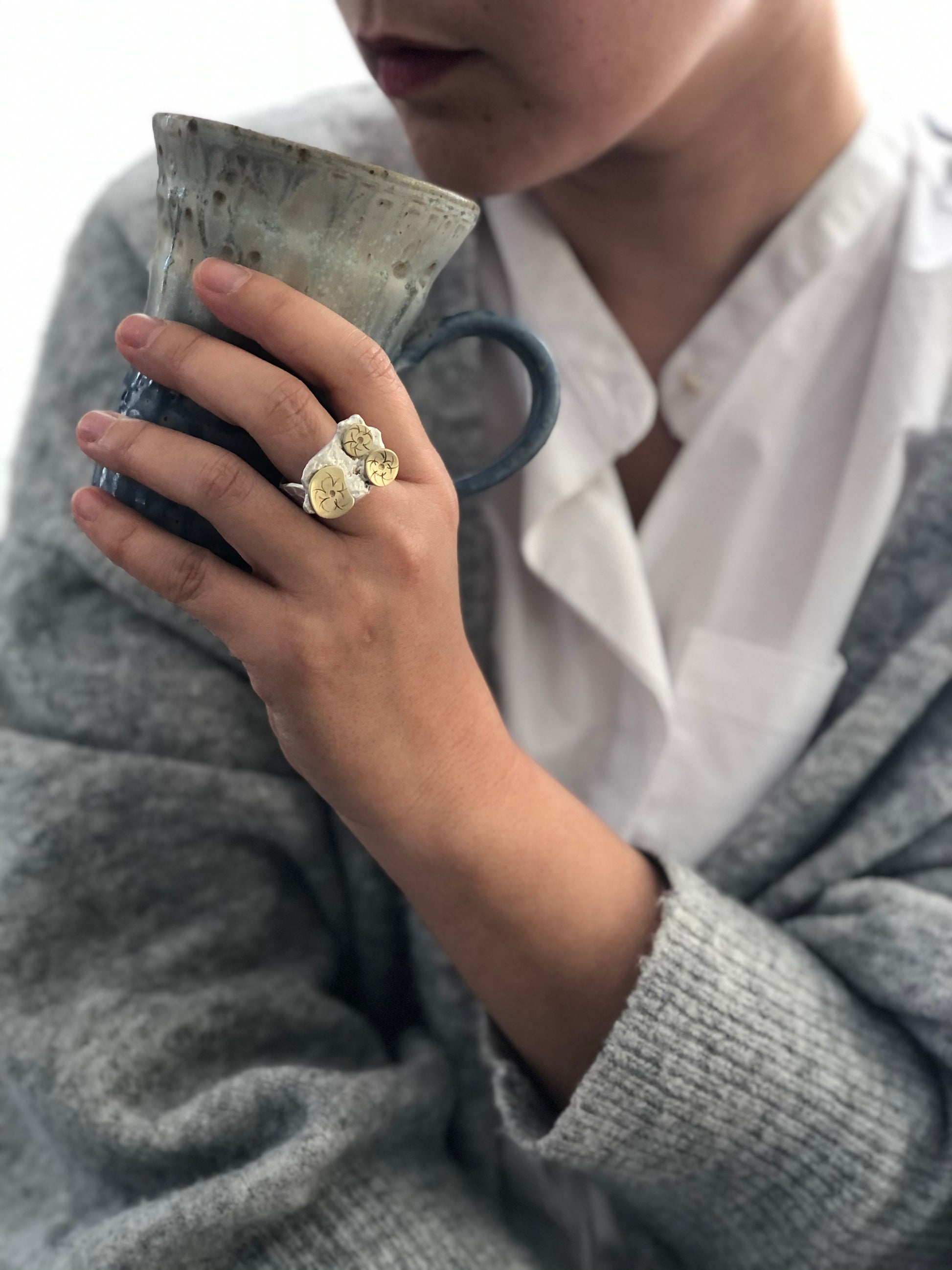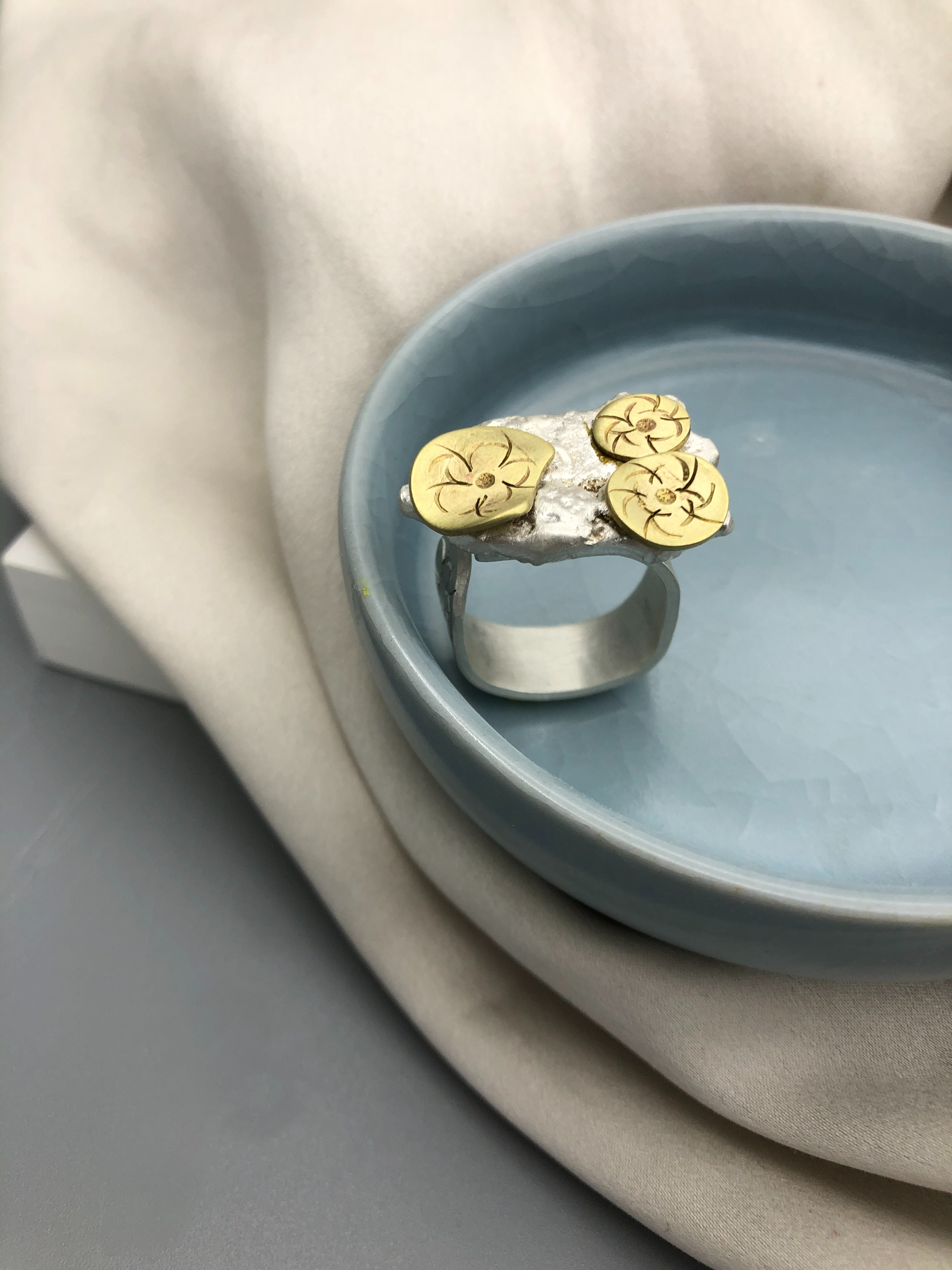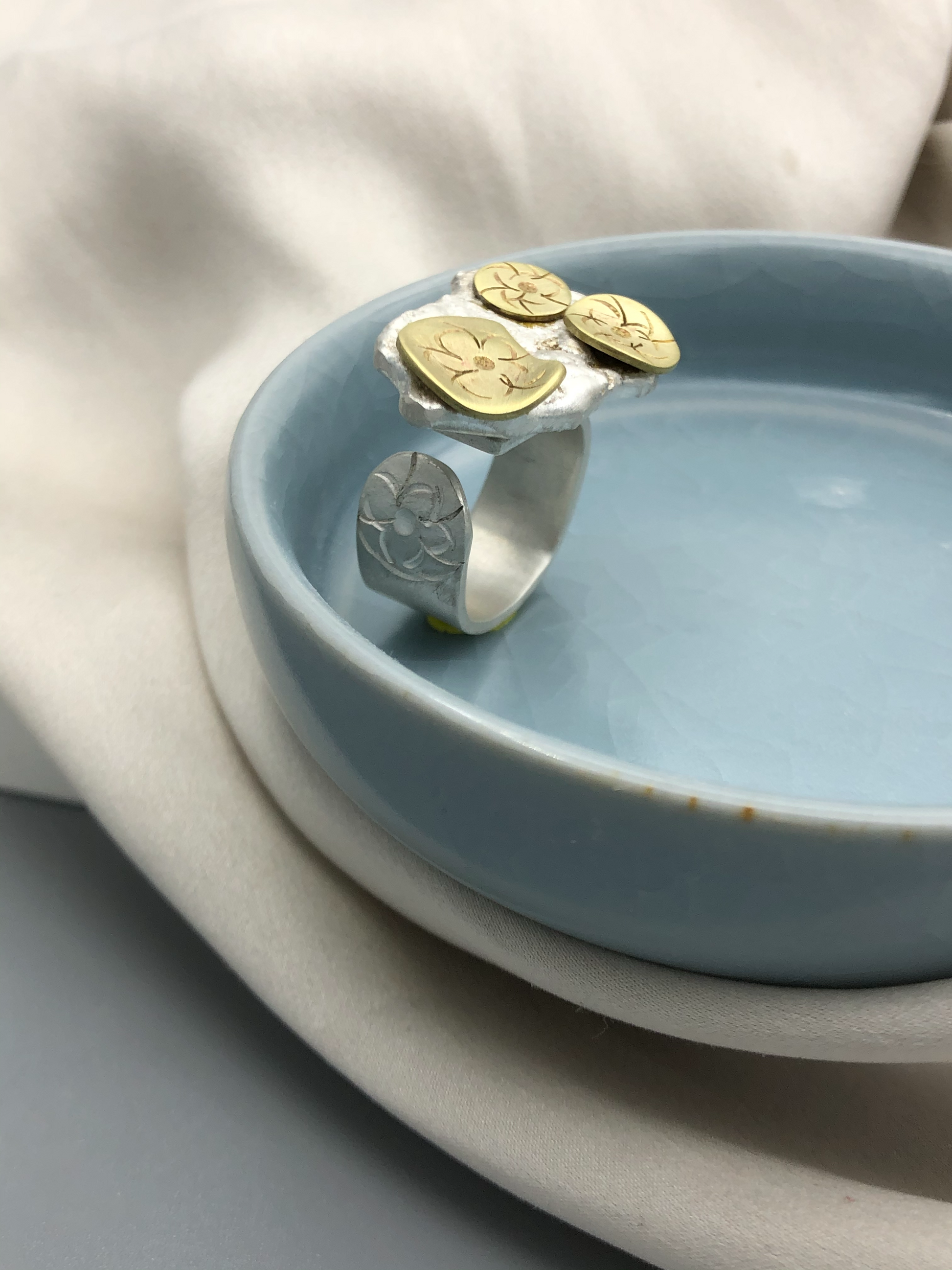 New collection that came from inspiration from silver scrapt. Each piece of silver melt is different and organic shape, and each piece is different designs.