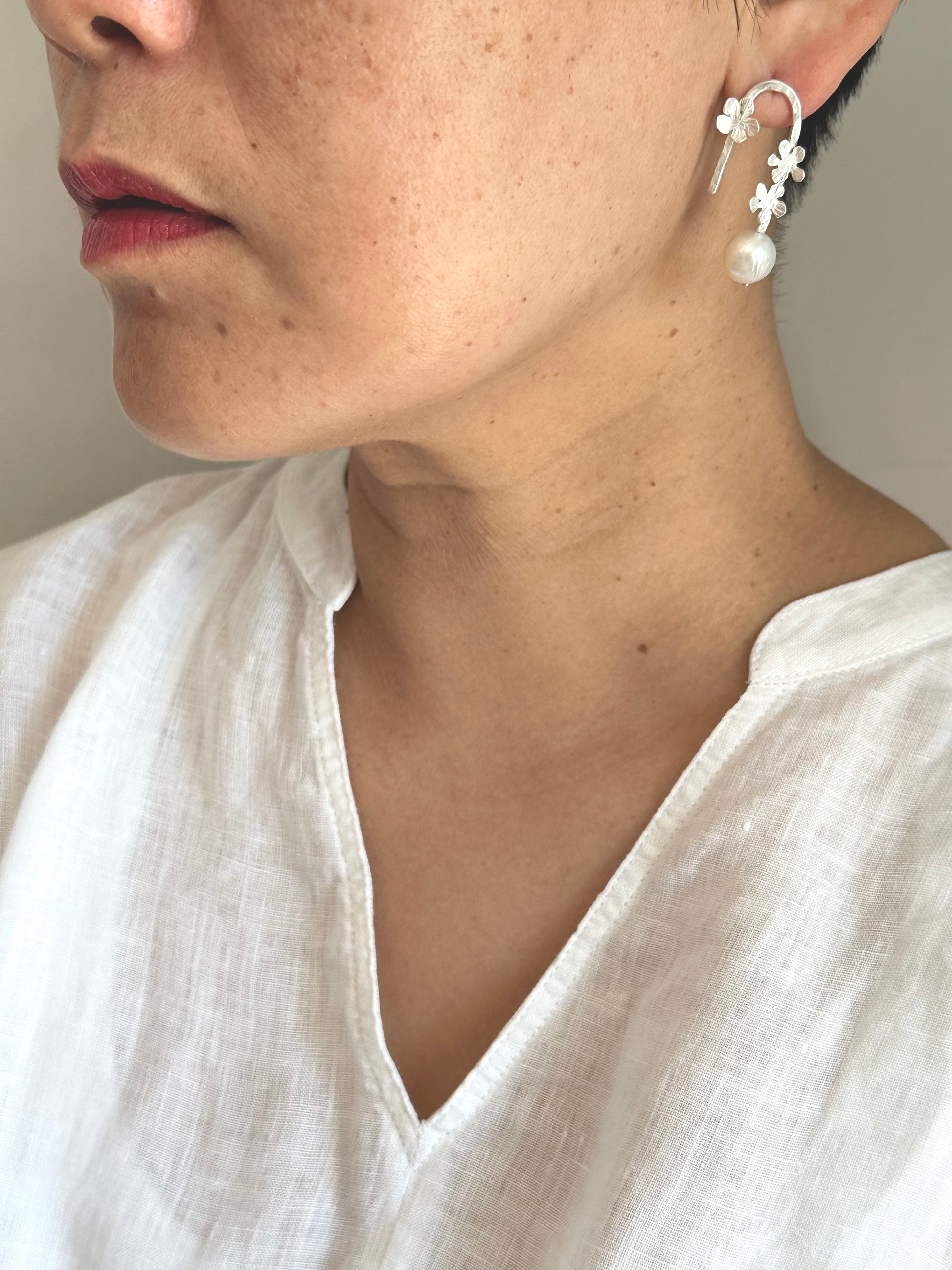Materials : Fine silver, sterling silver, fresh water pearl