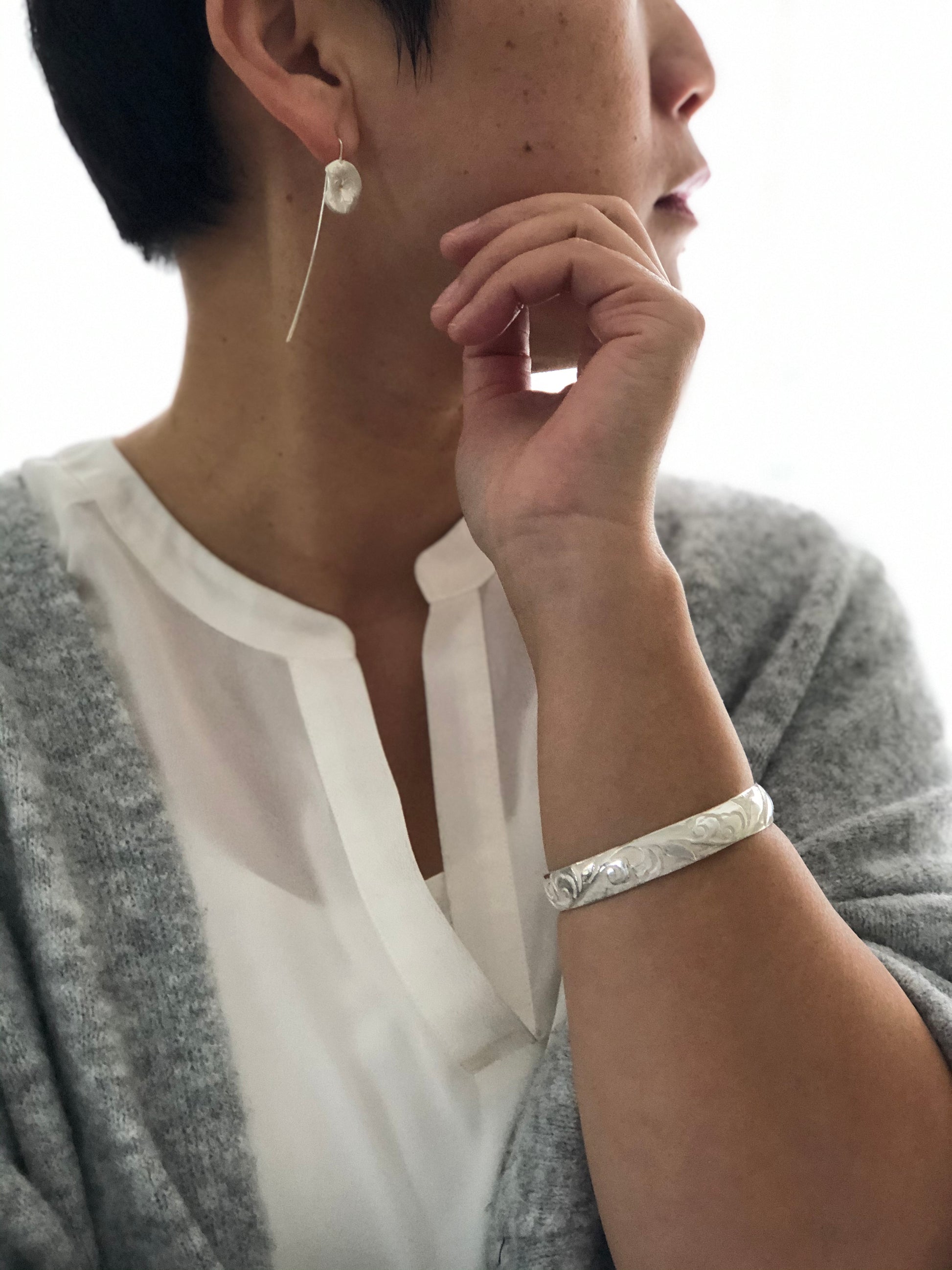 Free hand patterned and hammered on fine silver. Traditional Tibetan silver skill , only hand tools used.