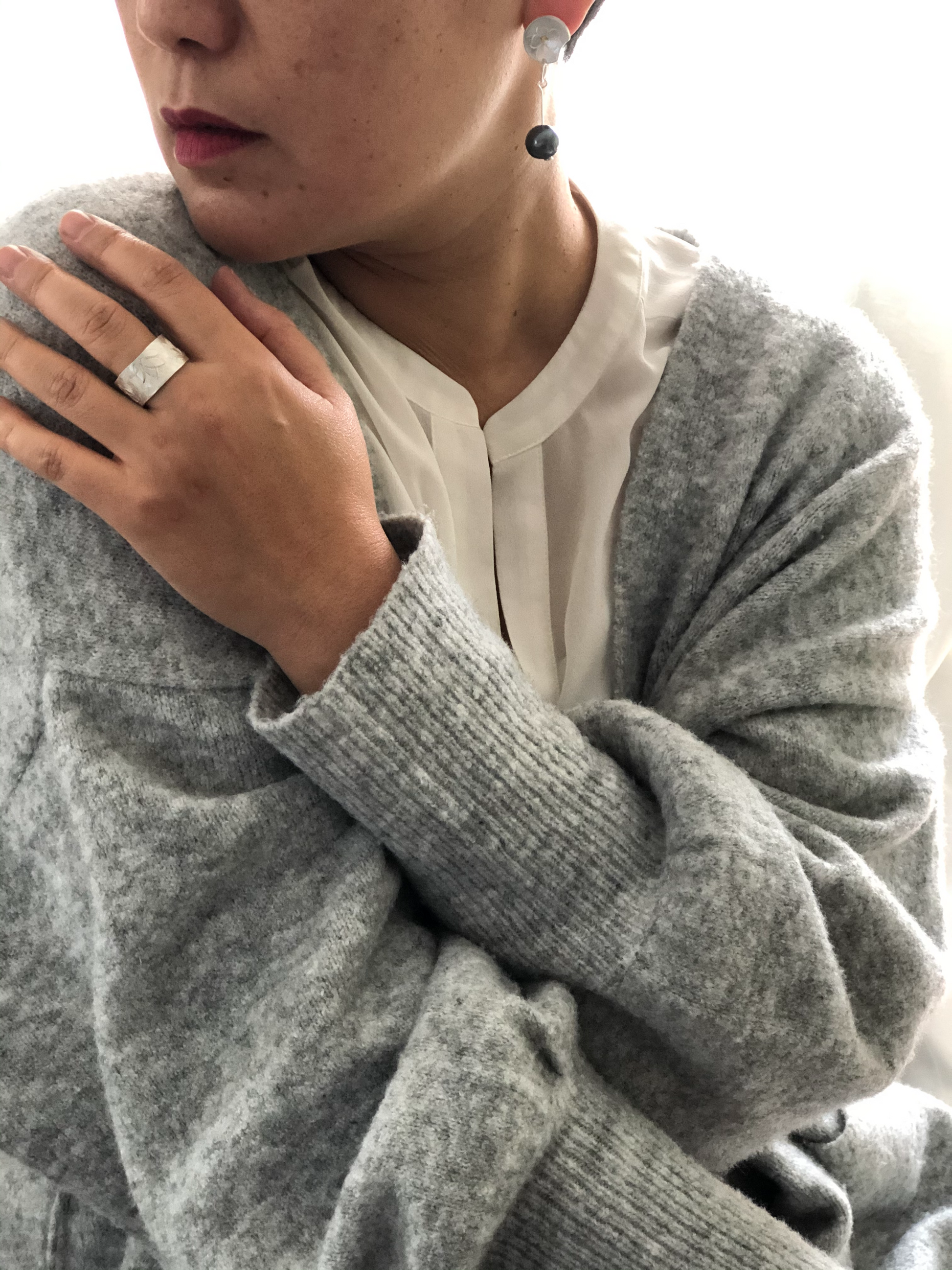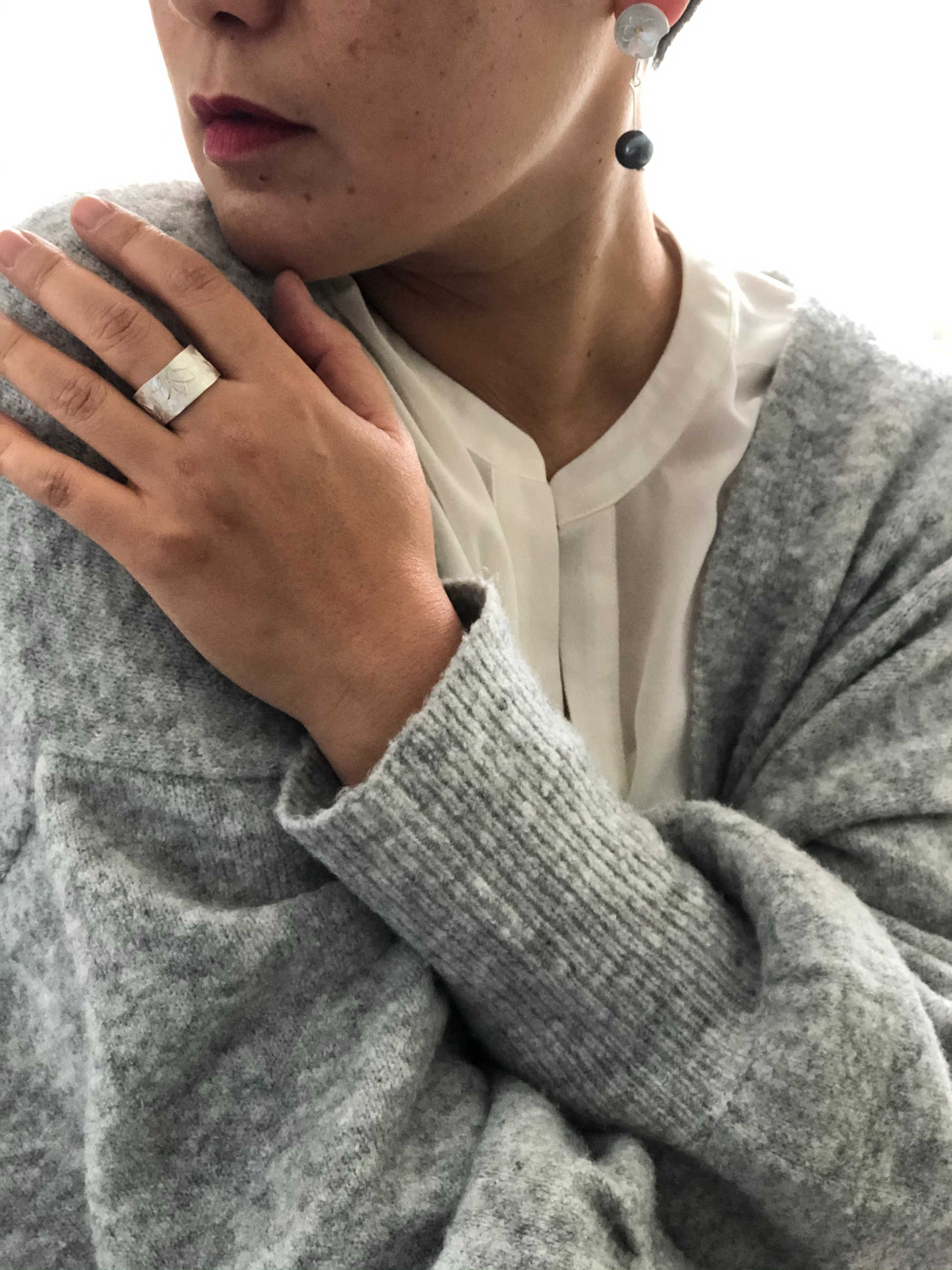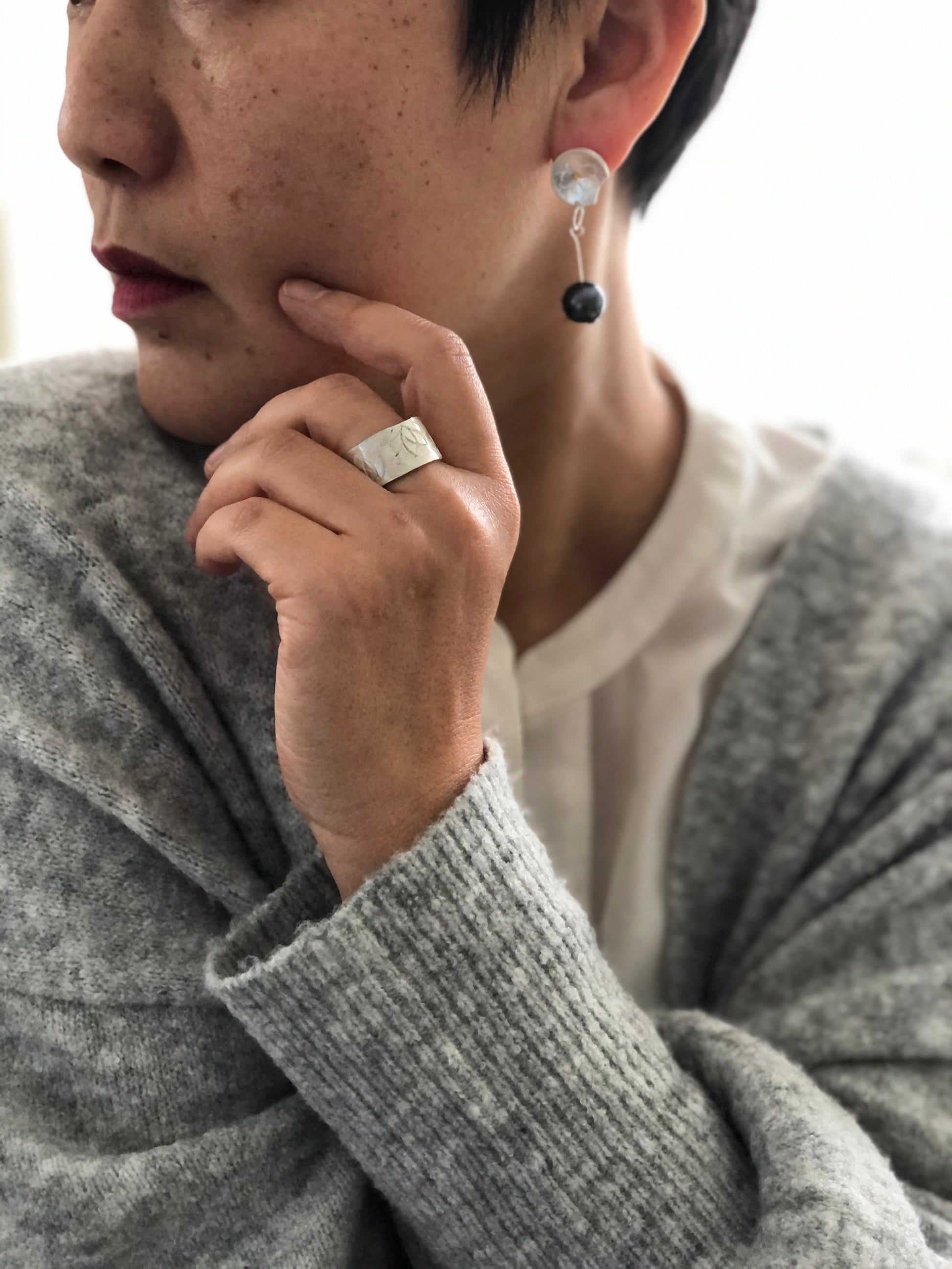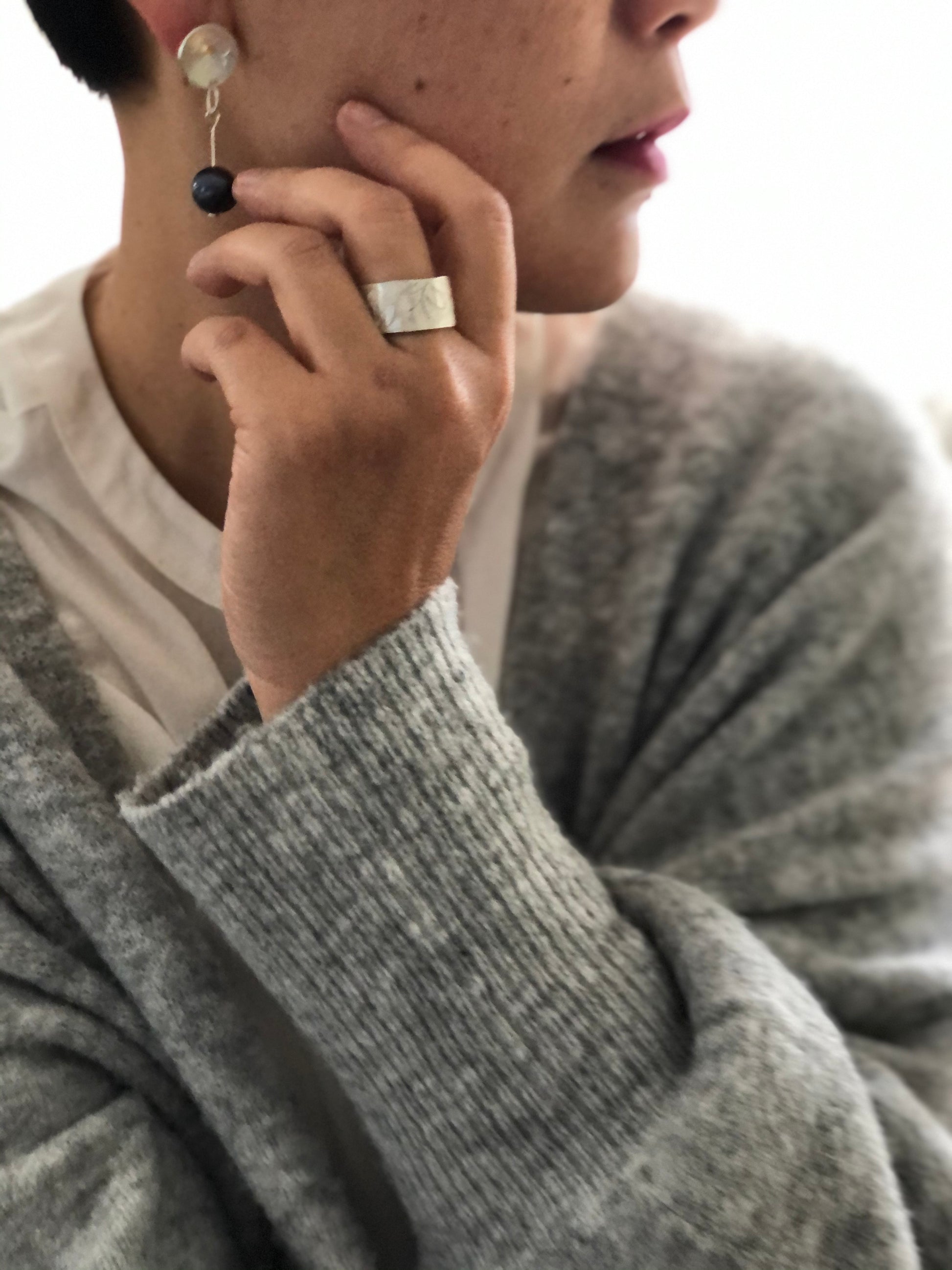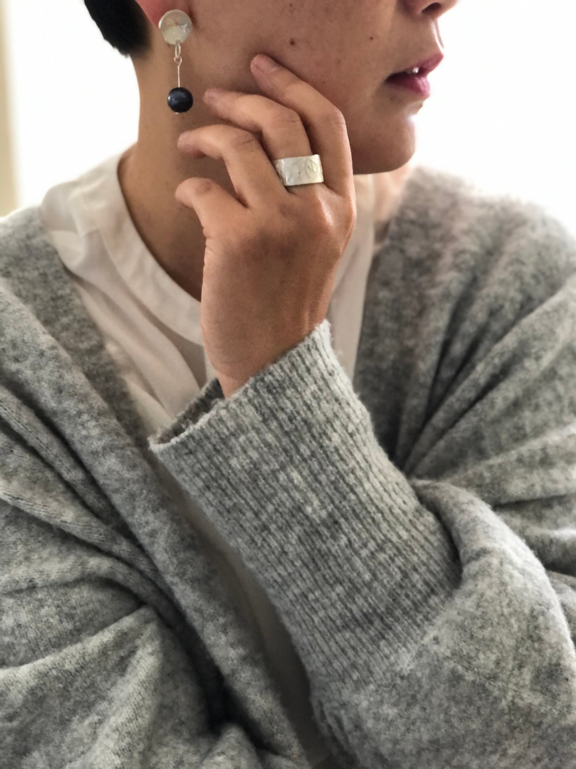 Free hand patterned and hammered on fine silver.