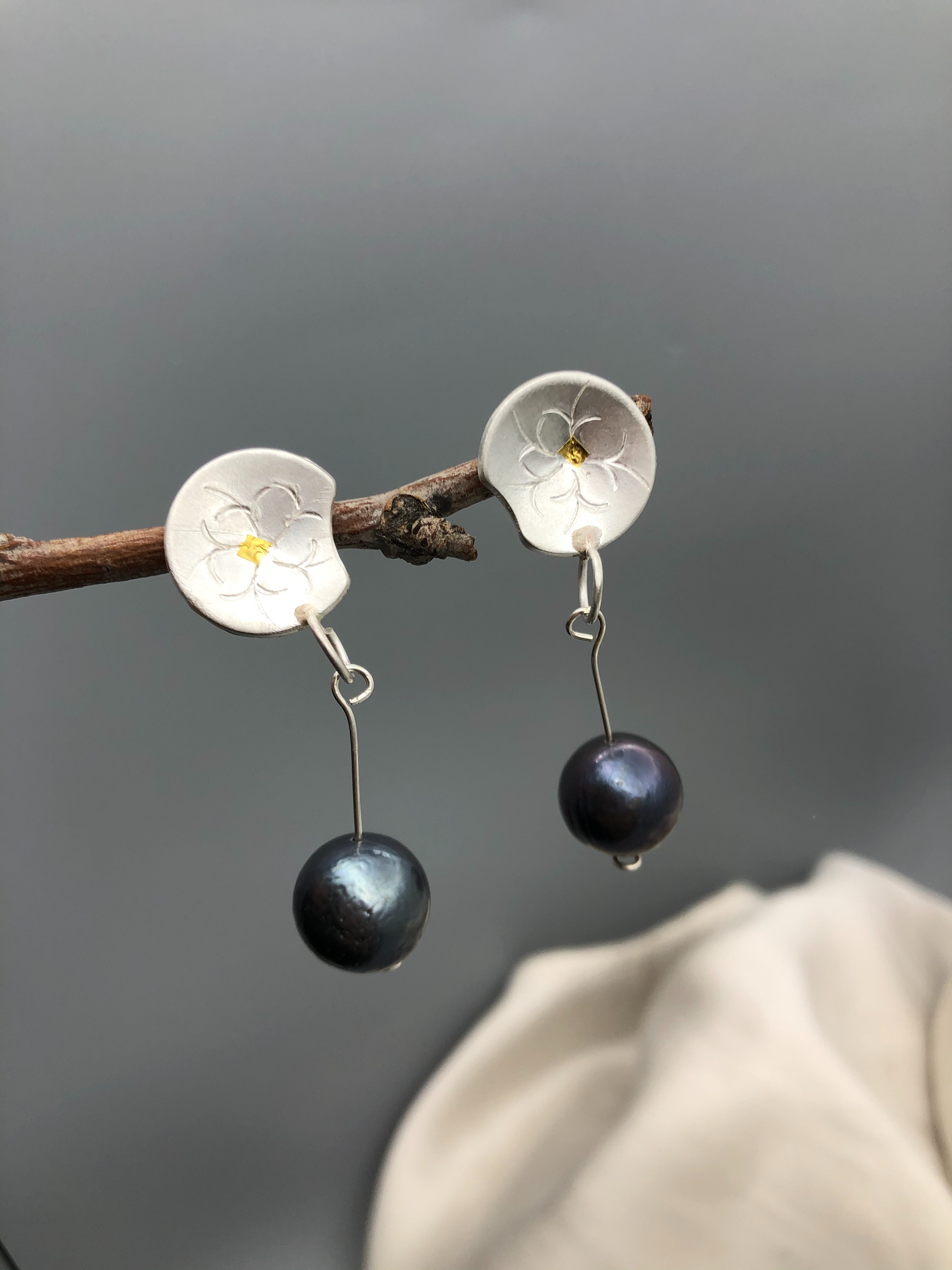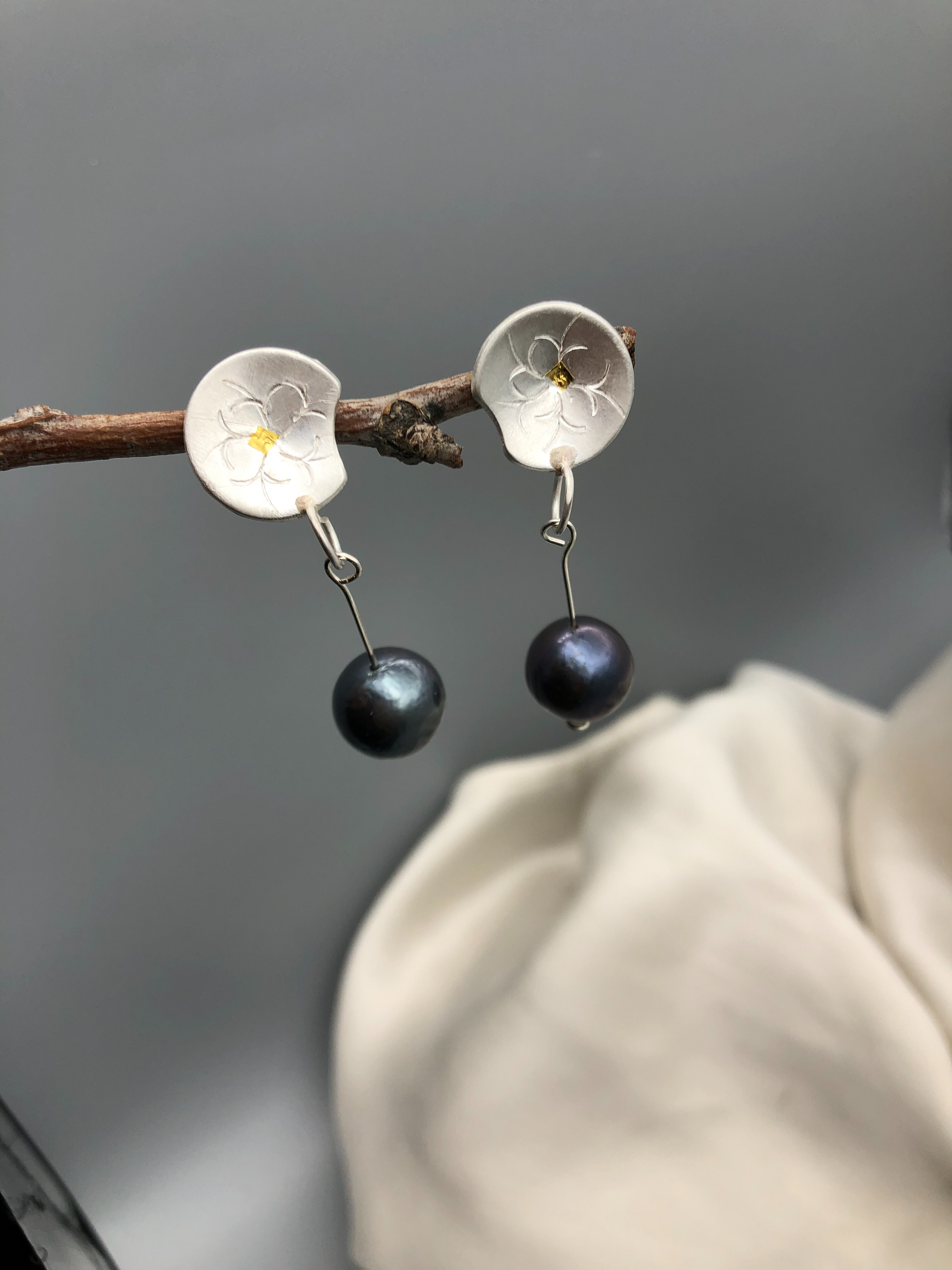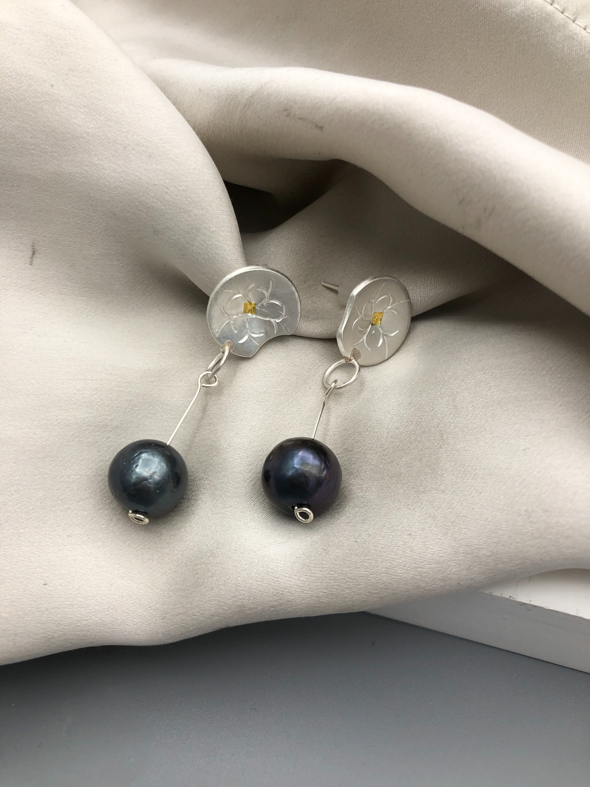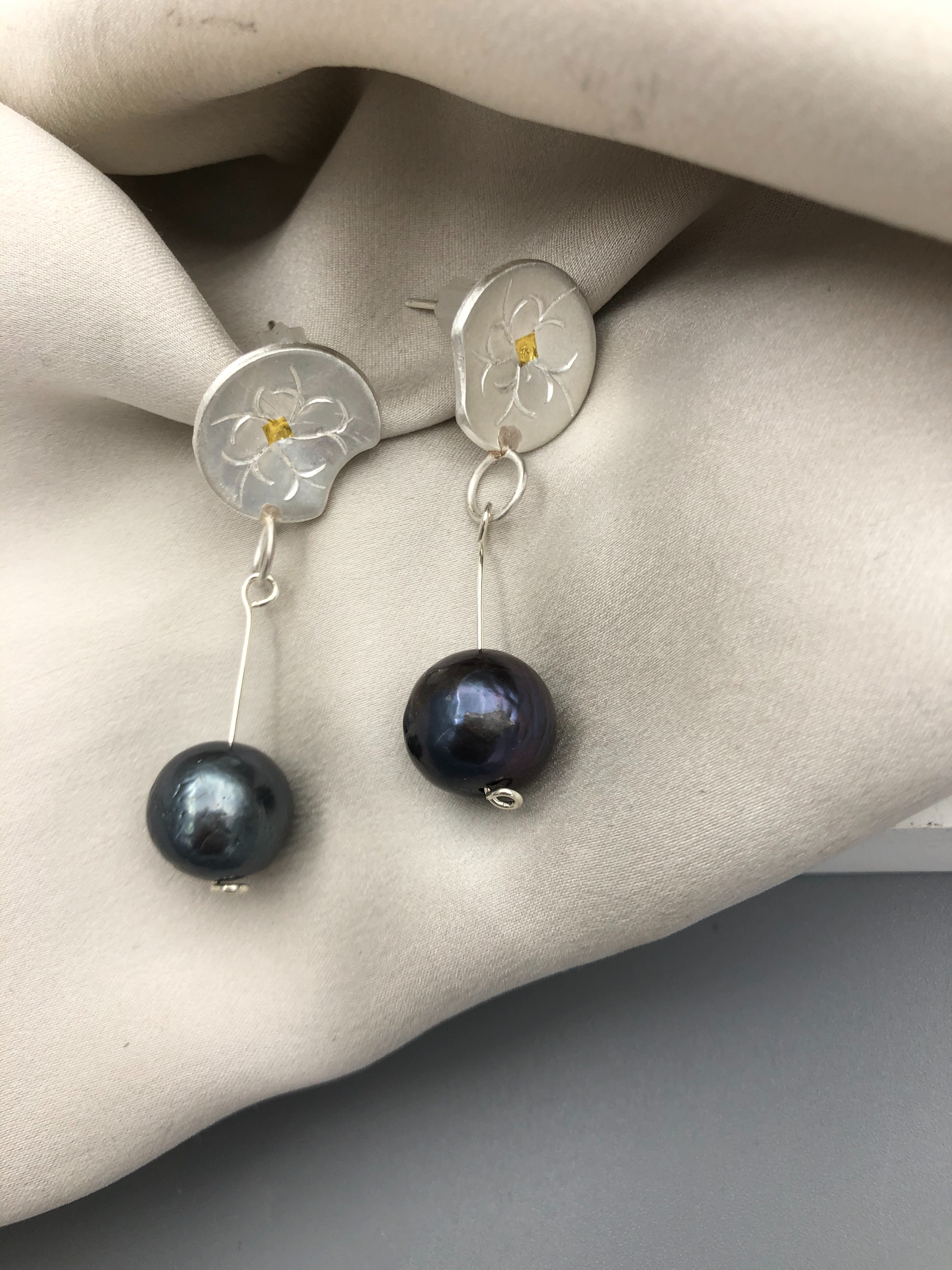 Materials :Fine silver, fine gold ( kumboo), fresh water pearl