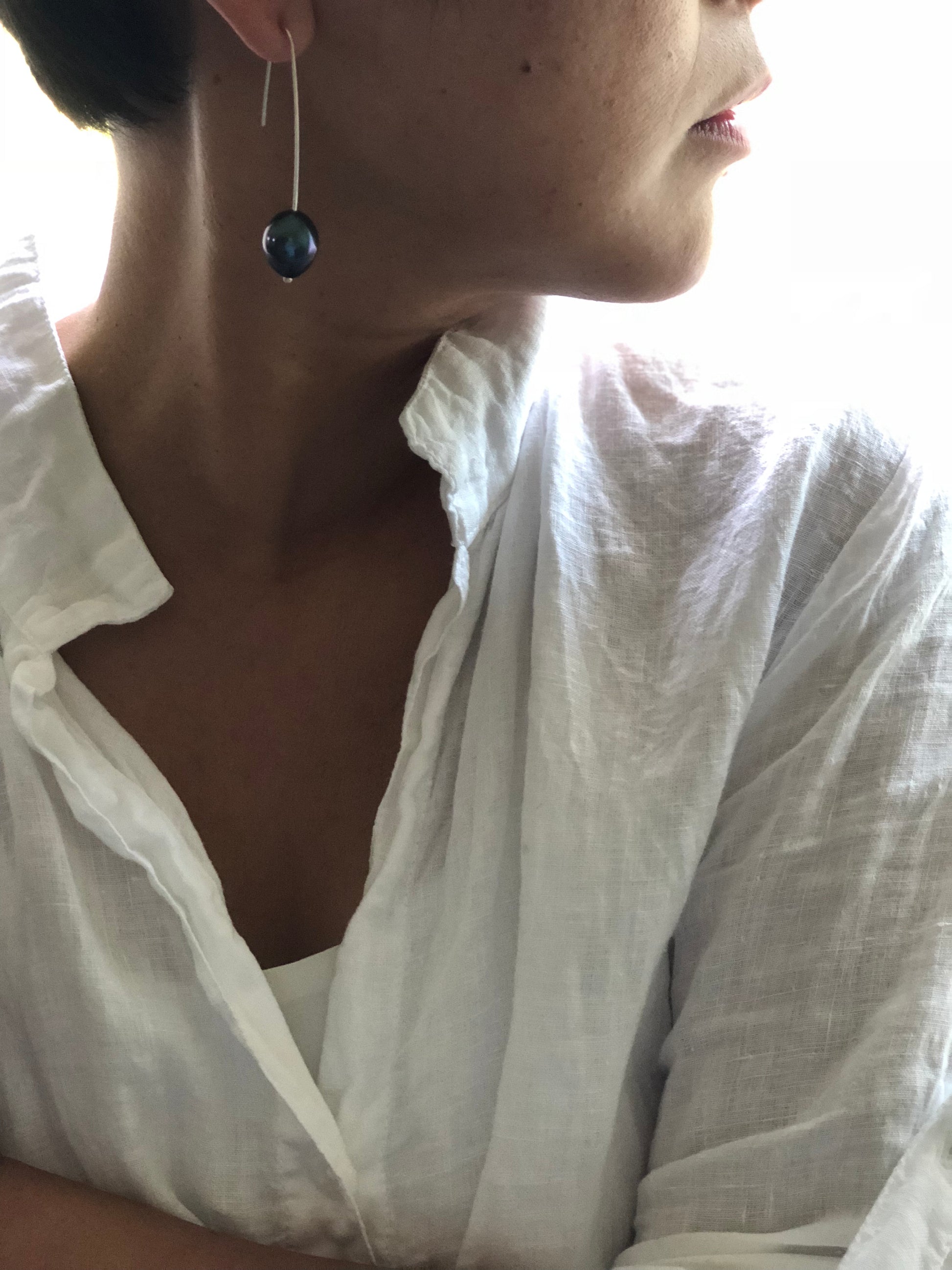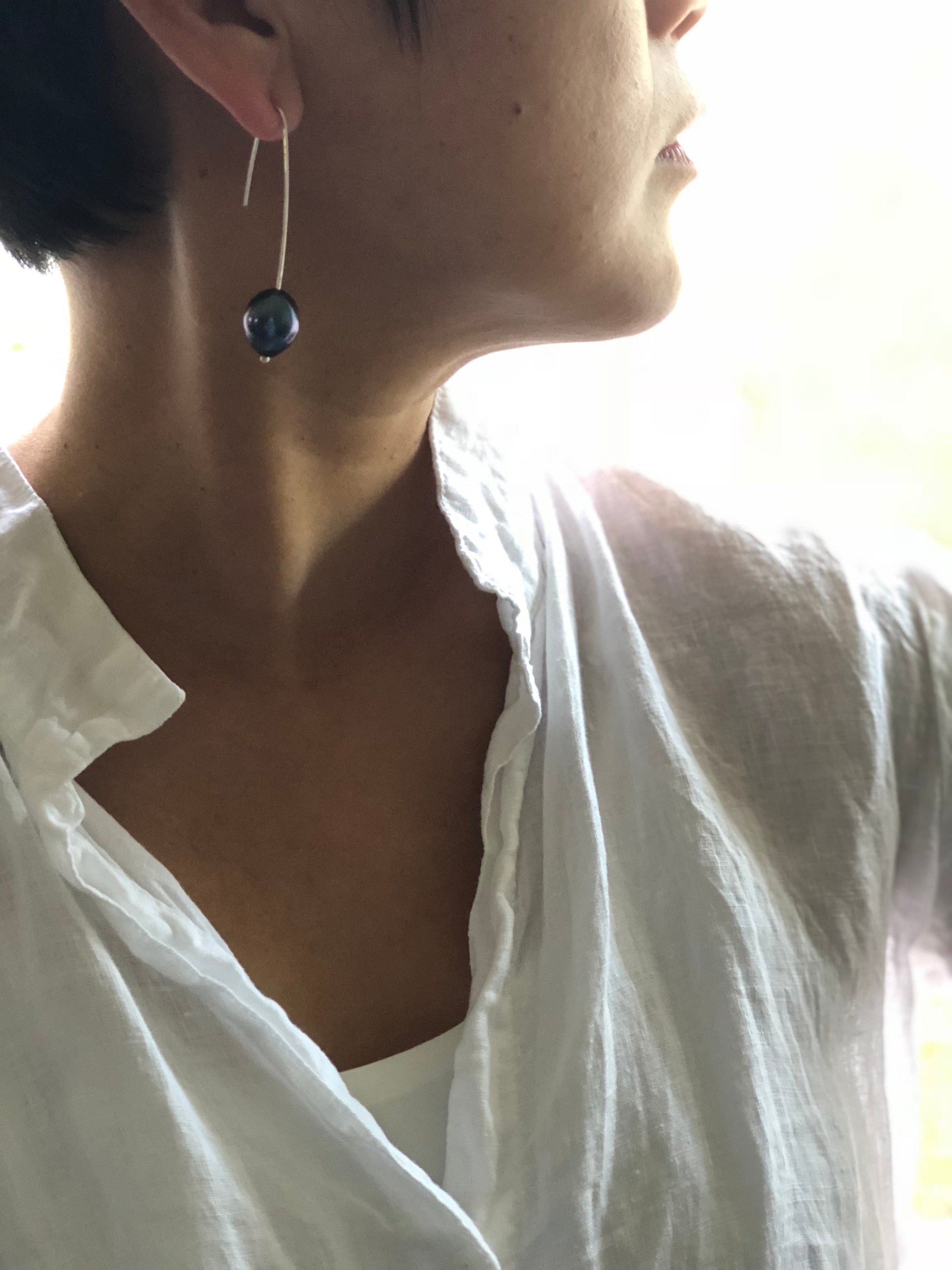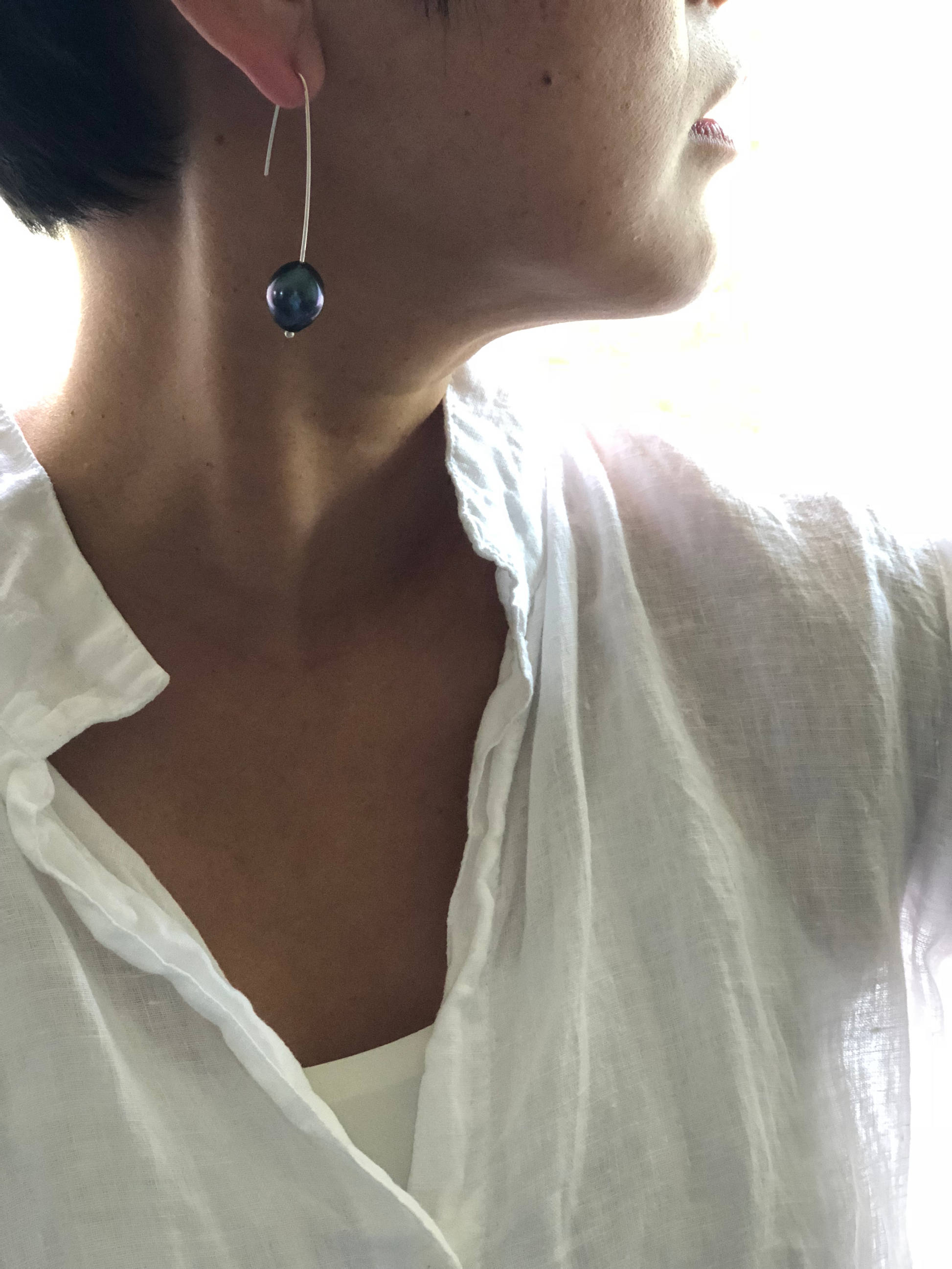 Materials : Black baroque pearl , sterling silver